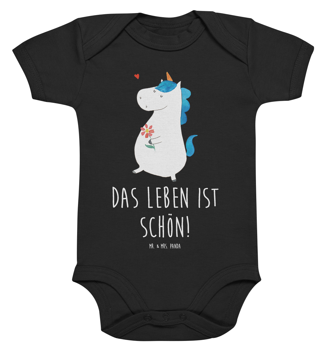 Organic Baby Body Einhorn Spaziergang - 1. - 3. Monat - mit Spruch - Schwarz