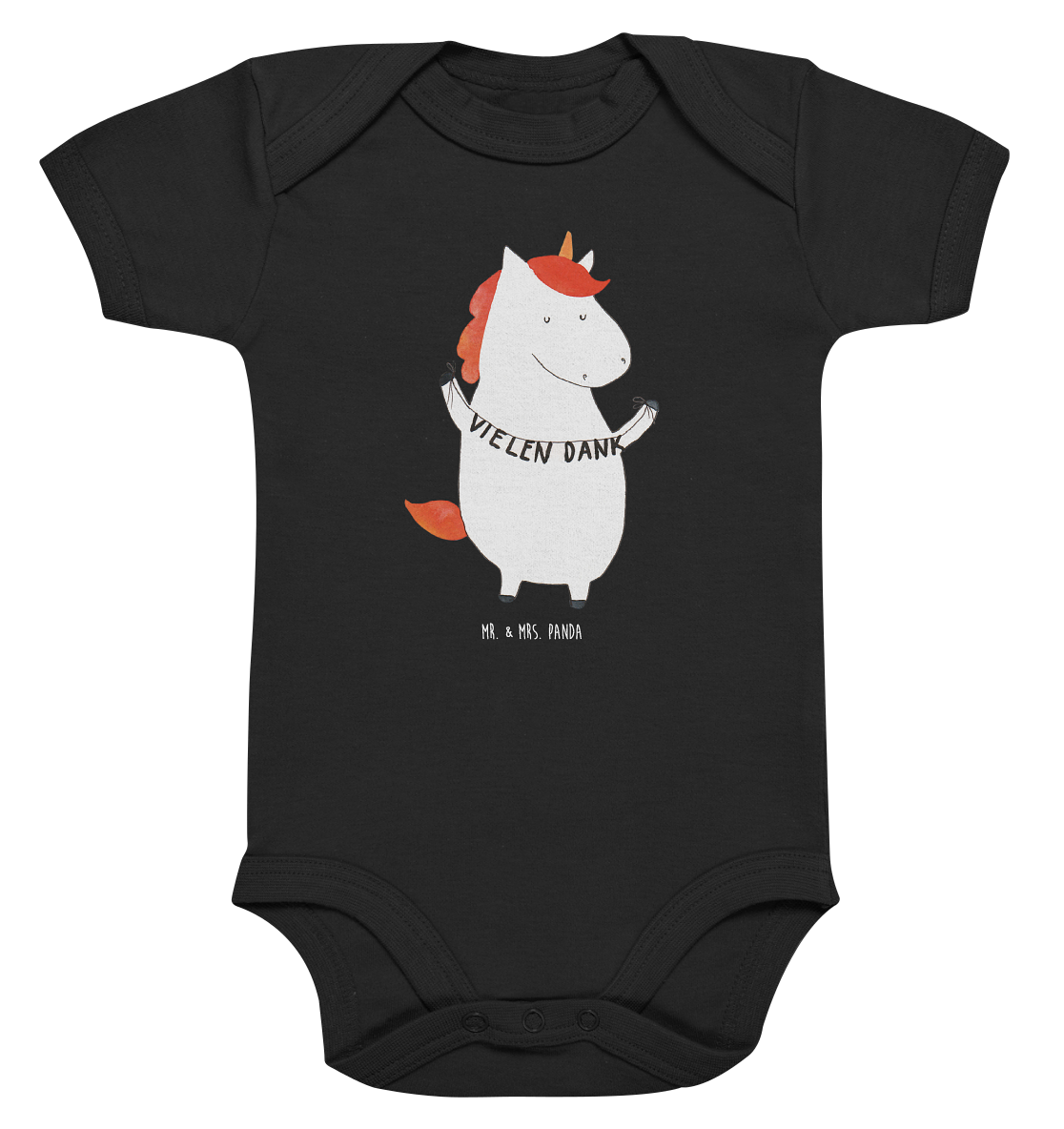 Organic Baby Body Einhorn Vielen Dank - 1. - 3. Monat - mit Spruch - Schwarz