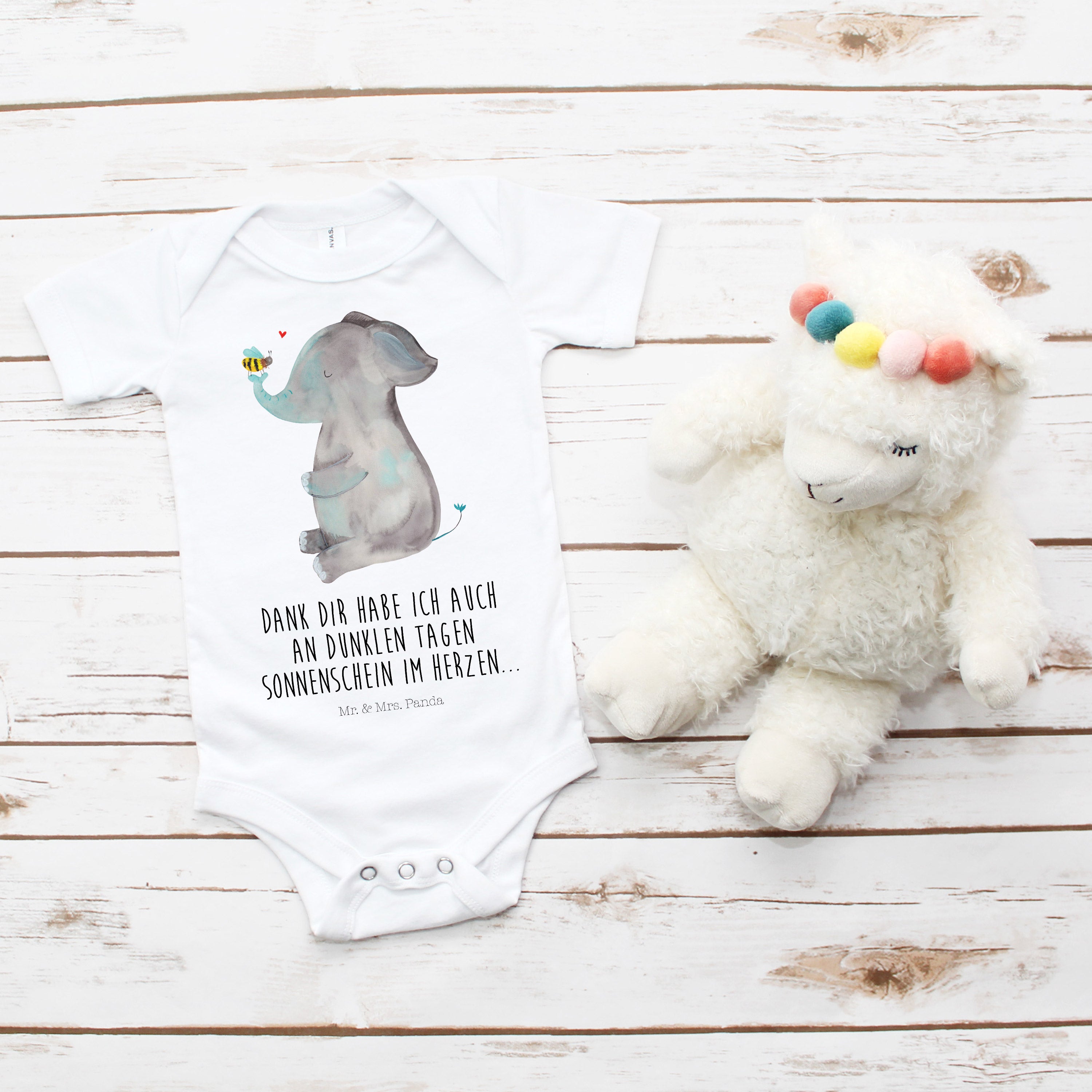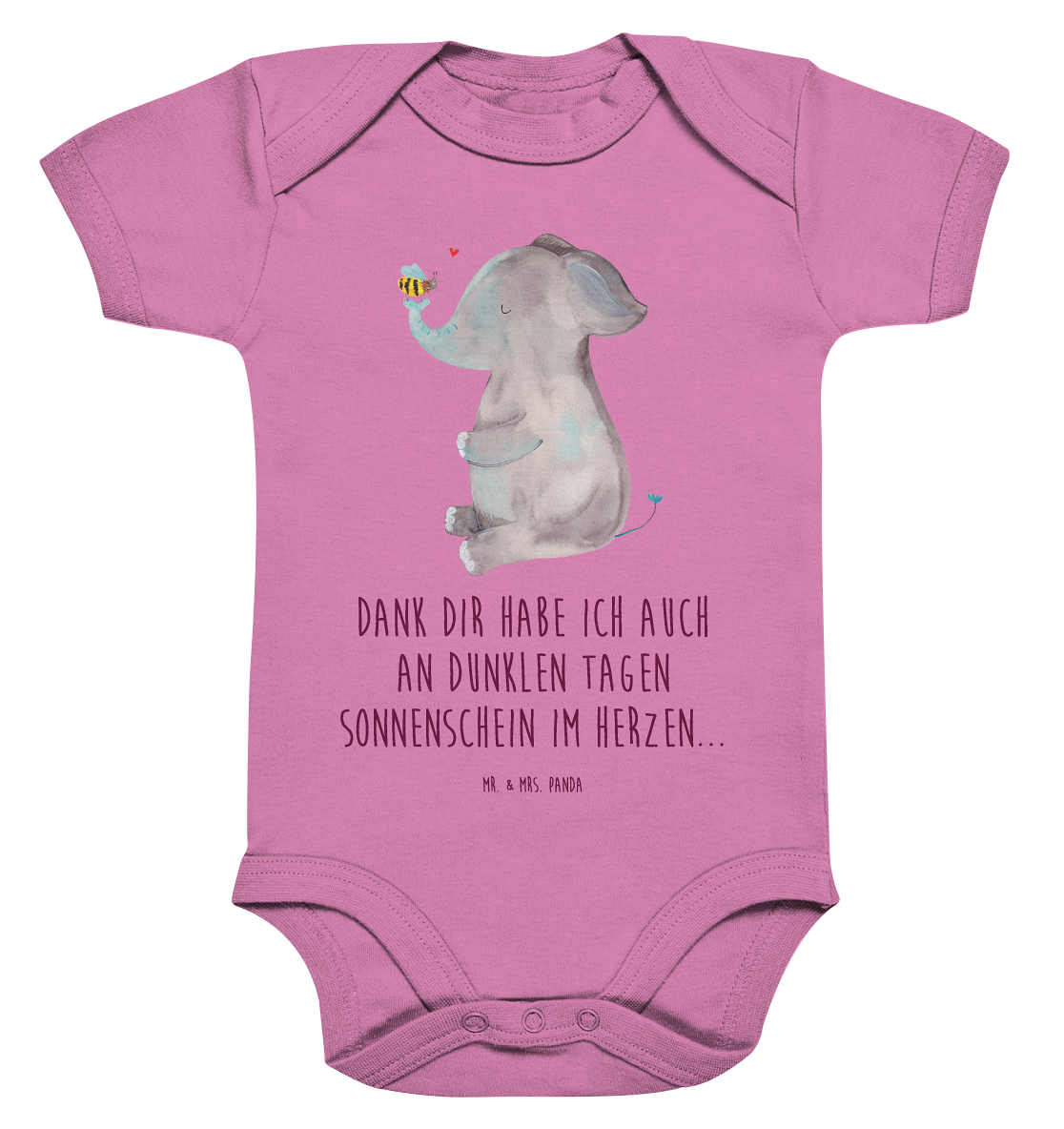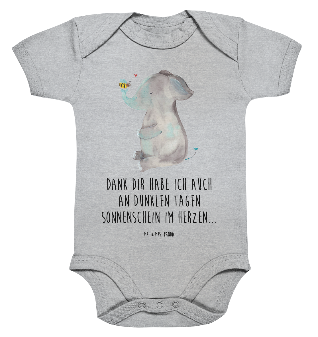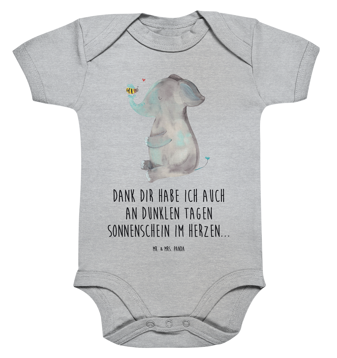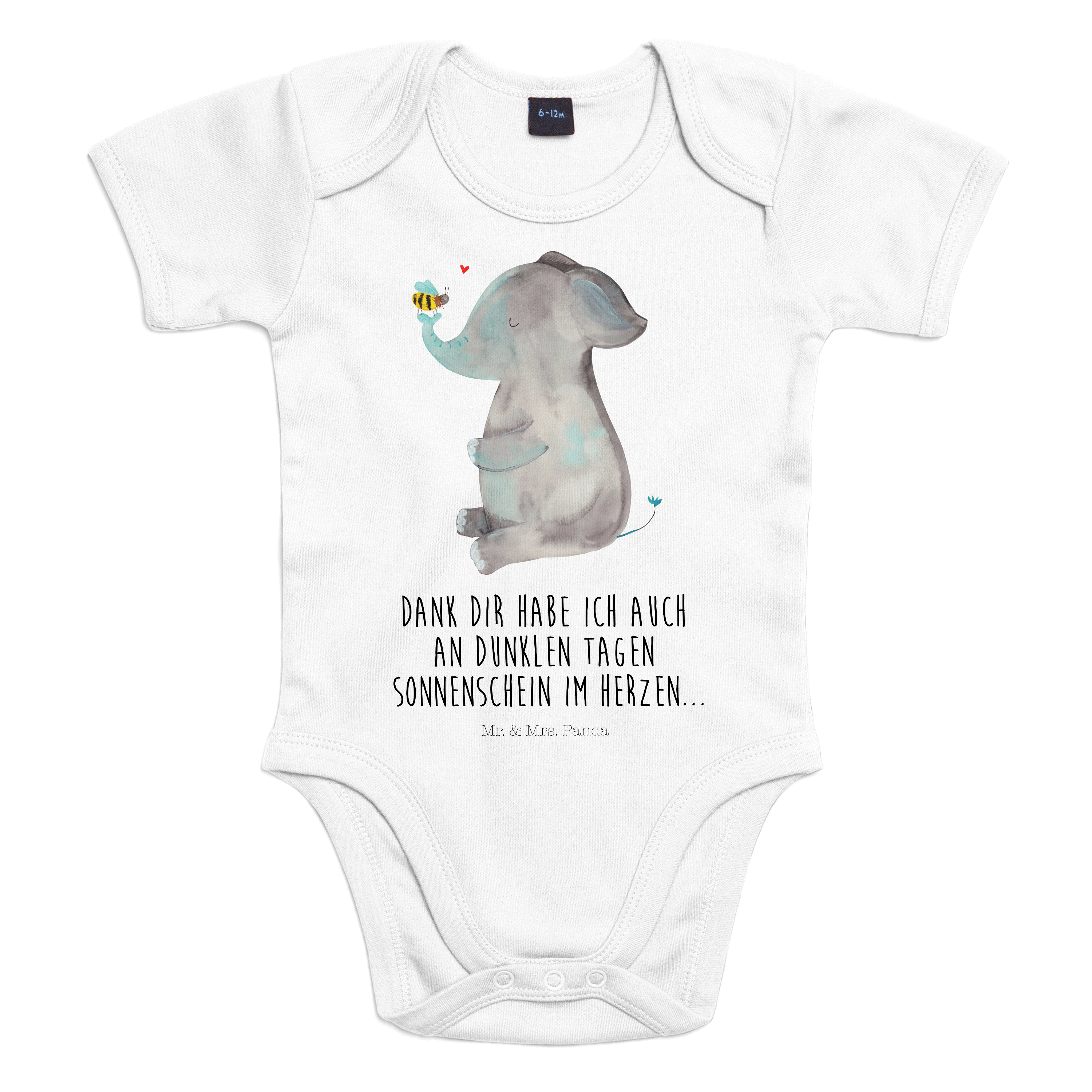 Organic Baby Body Elefant & Biene - 1. - 3. Monat - mit Spruch - Schwarz