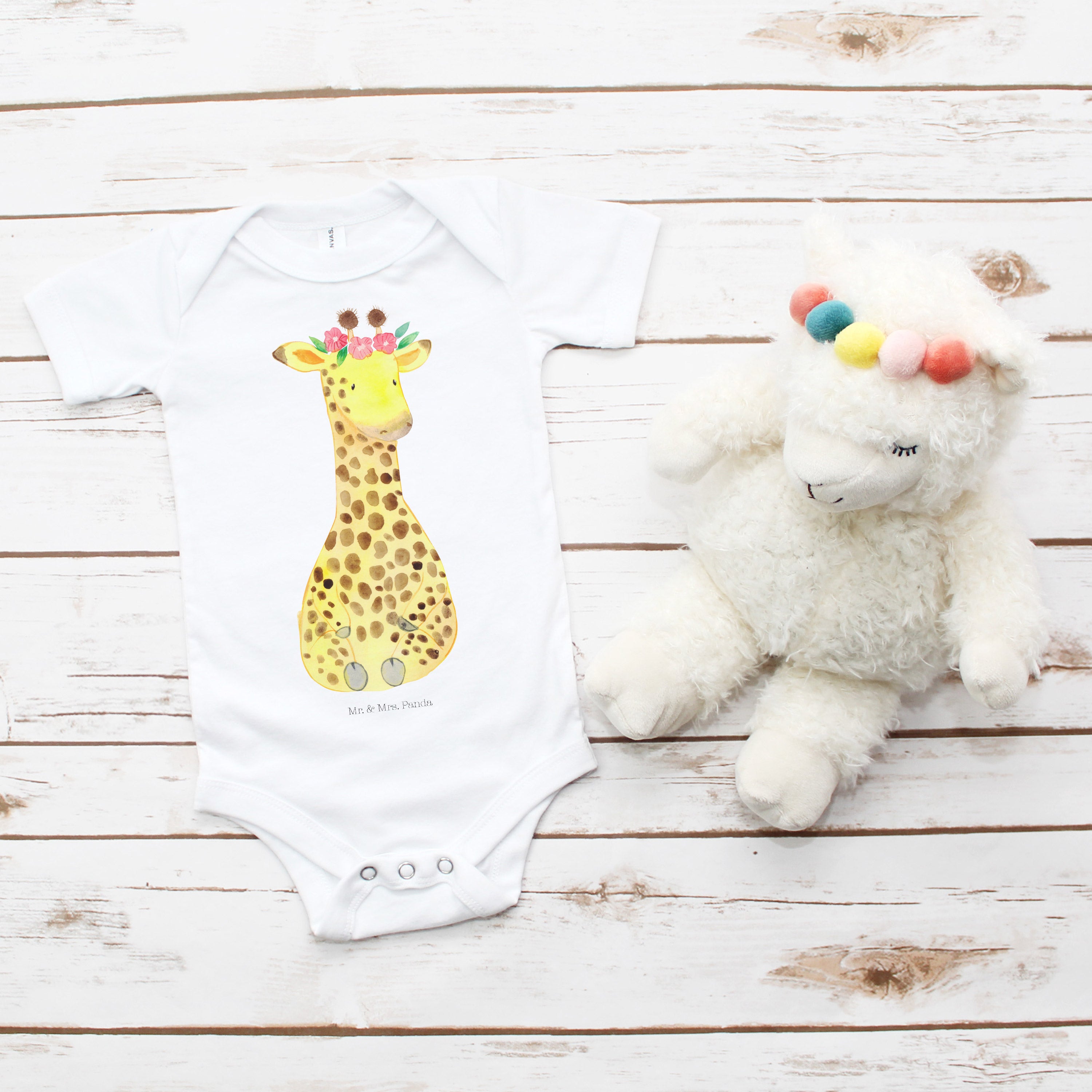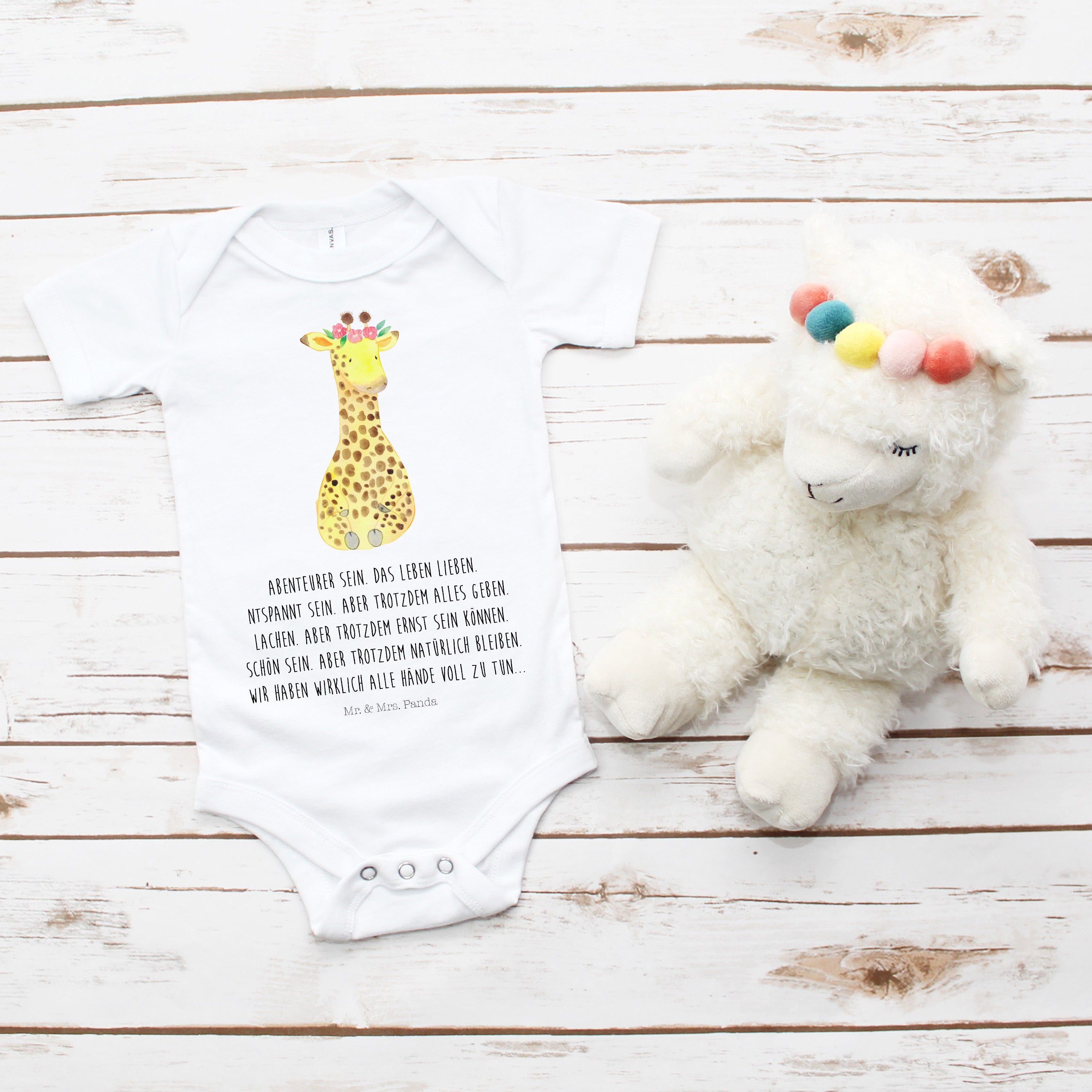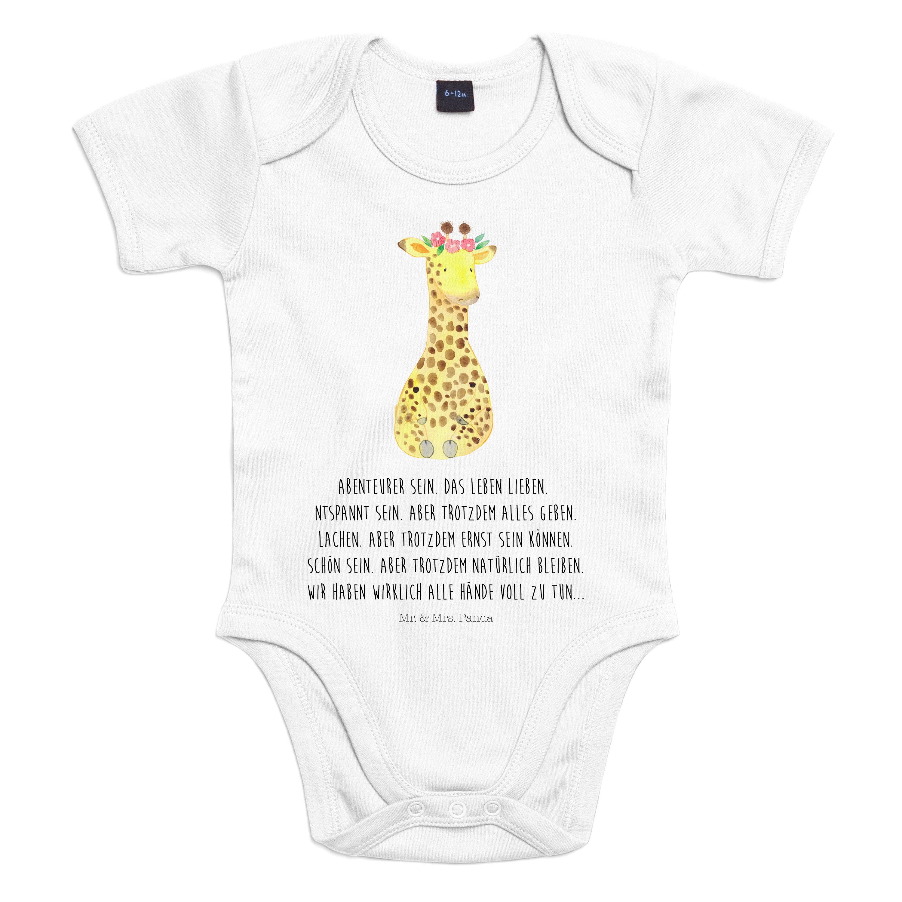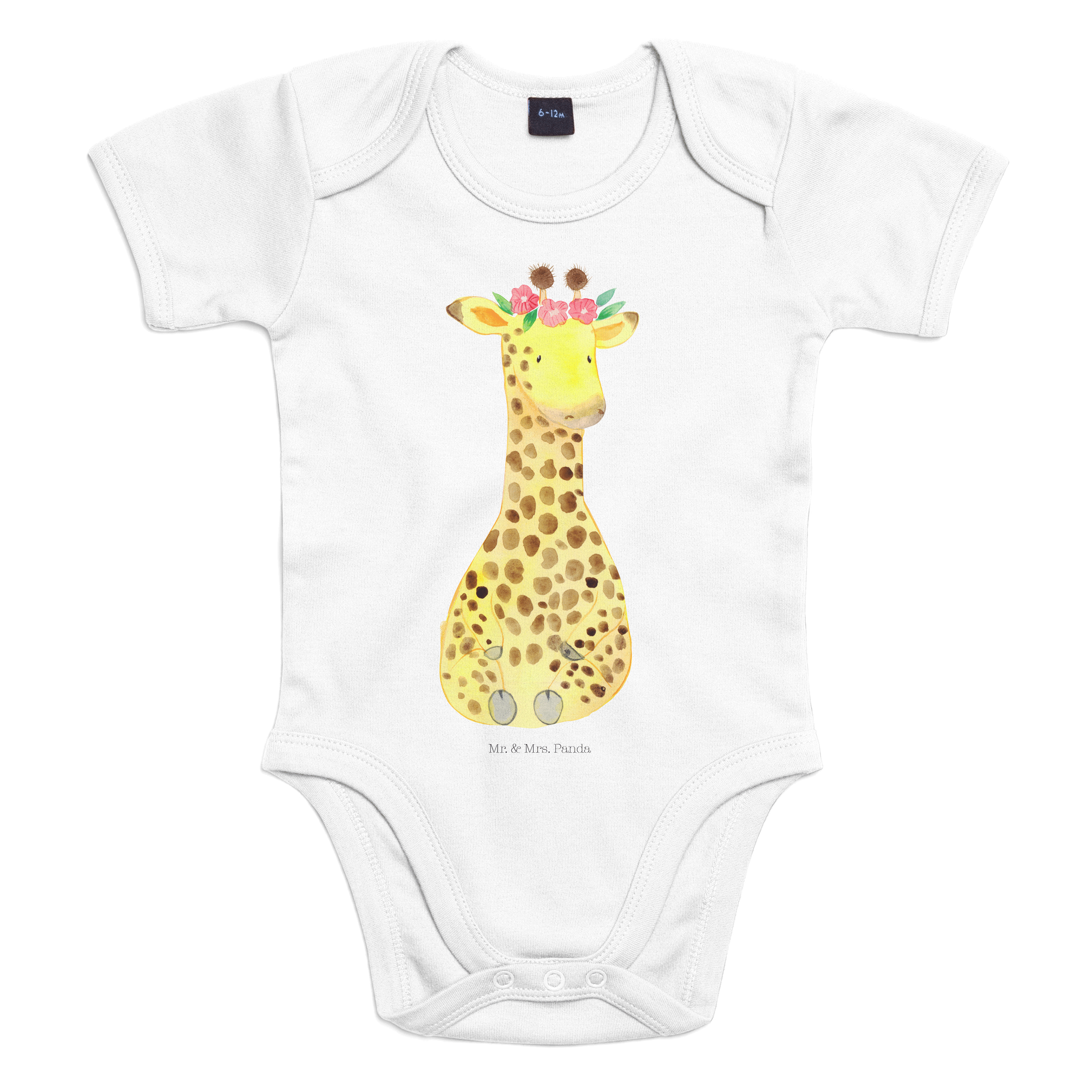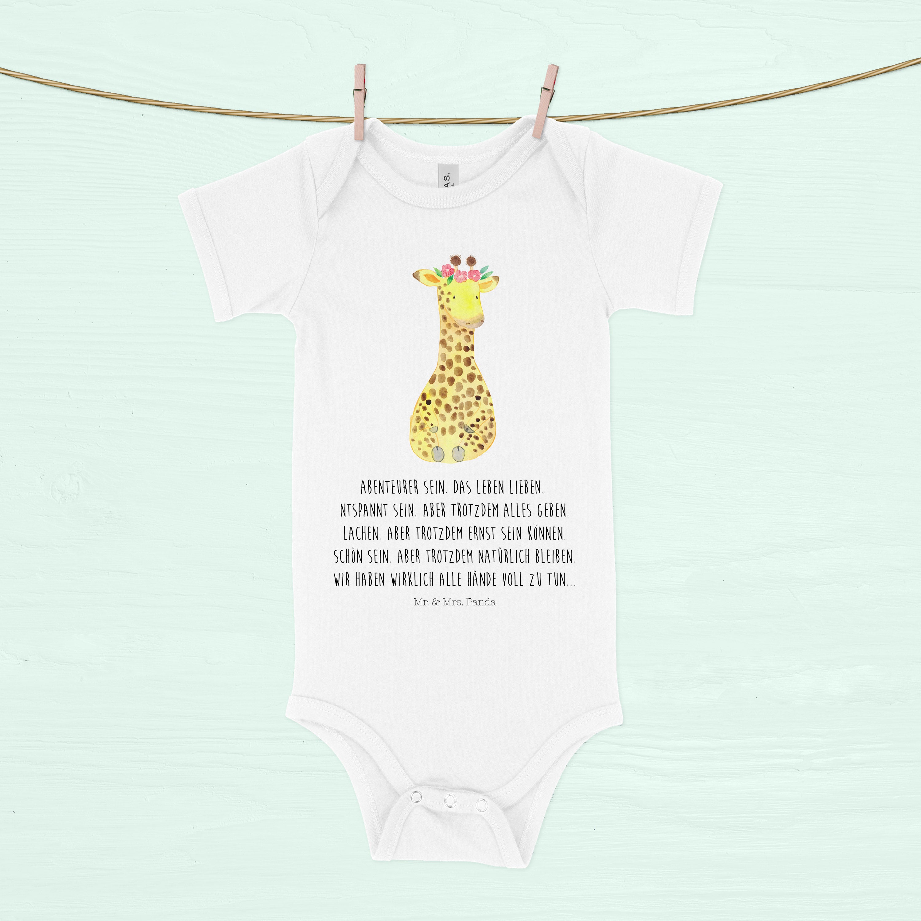 Organic Baby Body Giraffe Blumenkranz Babykleidung, Babystrampler, Strampler, Wickelbody, Baby Erstausstattung, Junge, Mädchen, Afrika, Wildtiere, Giraffe, Blumenkranz, Abenteurer, Selbstliebe, Freundin