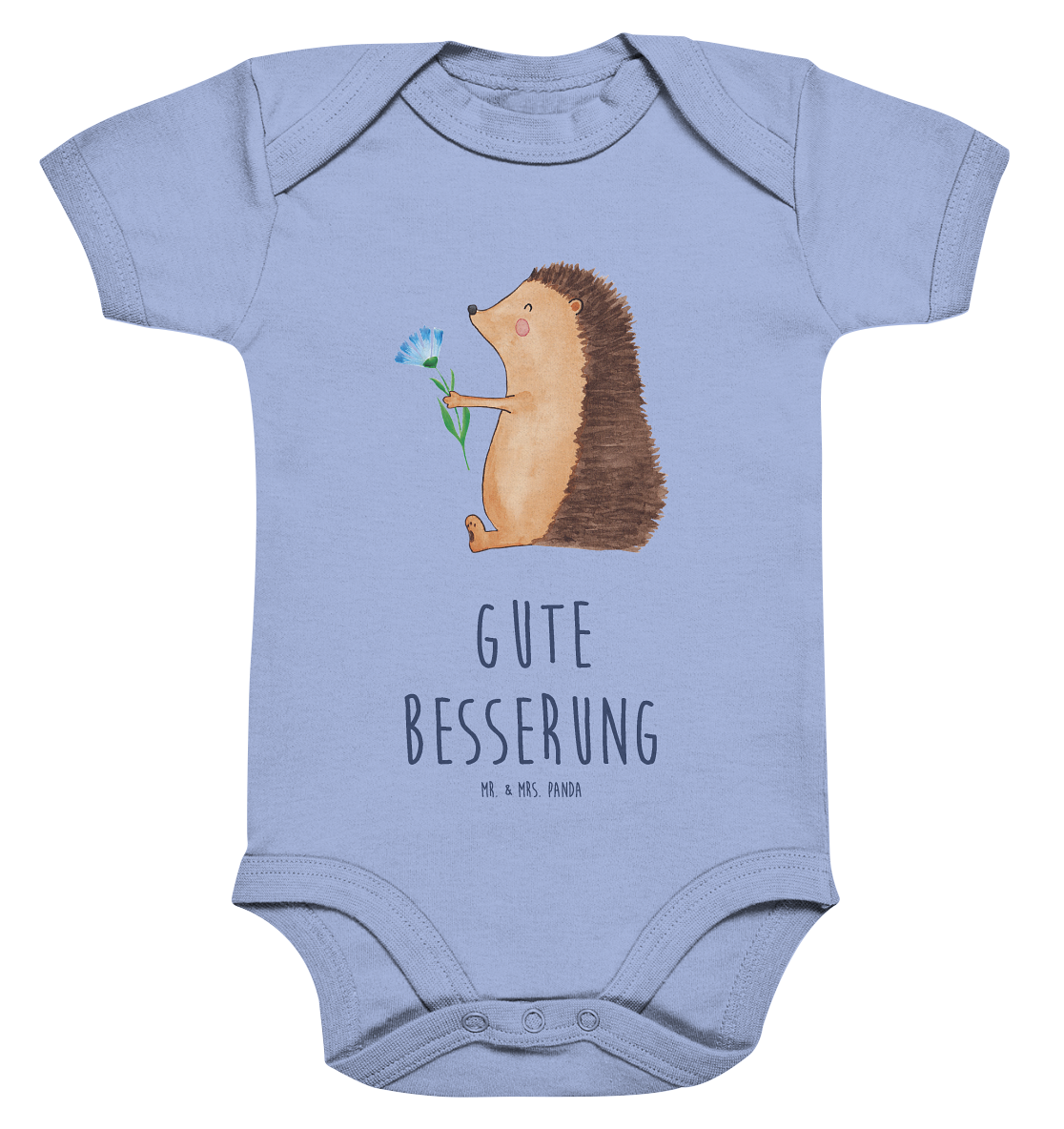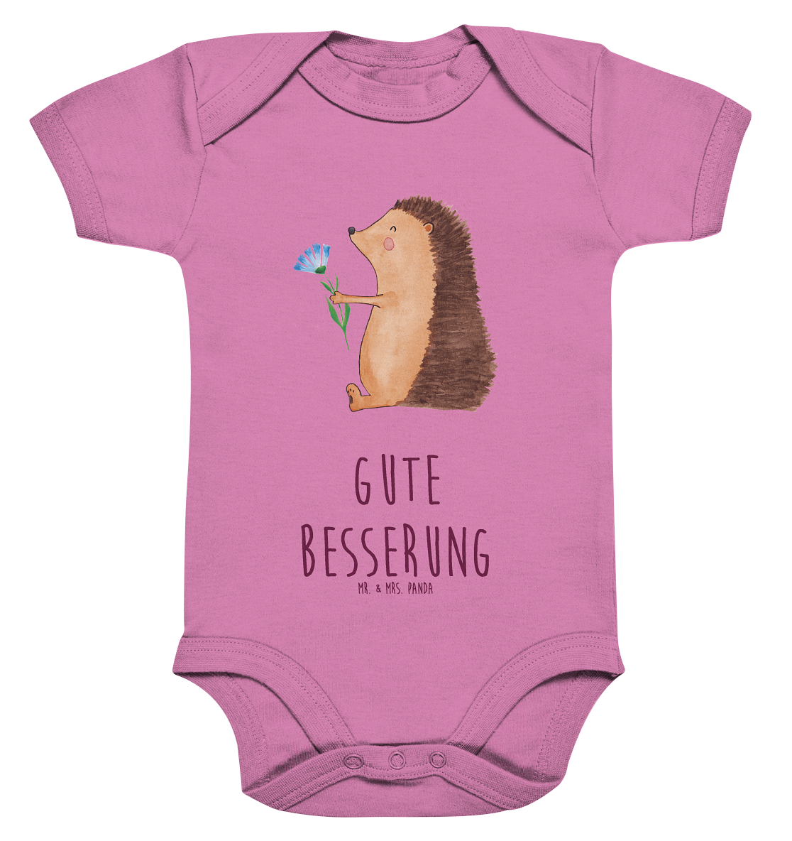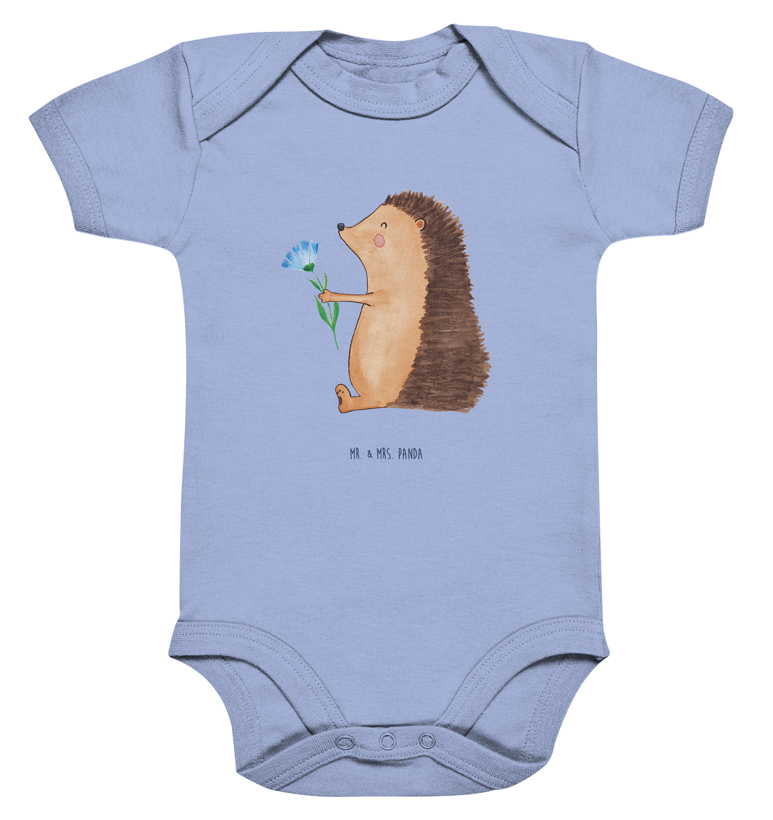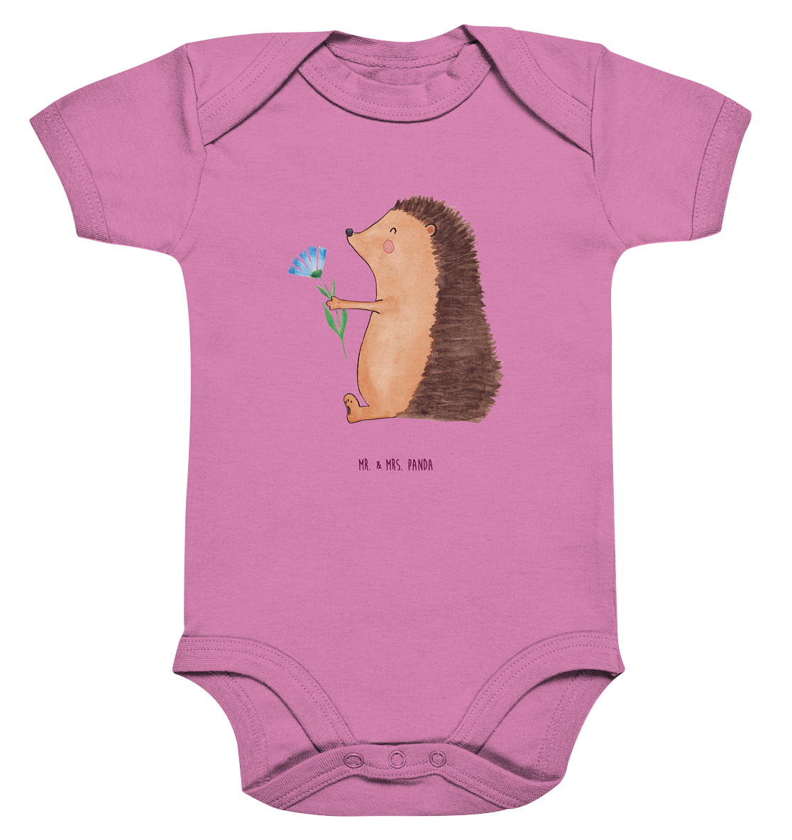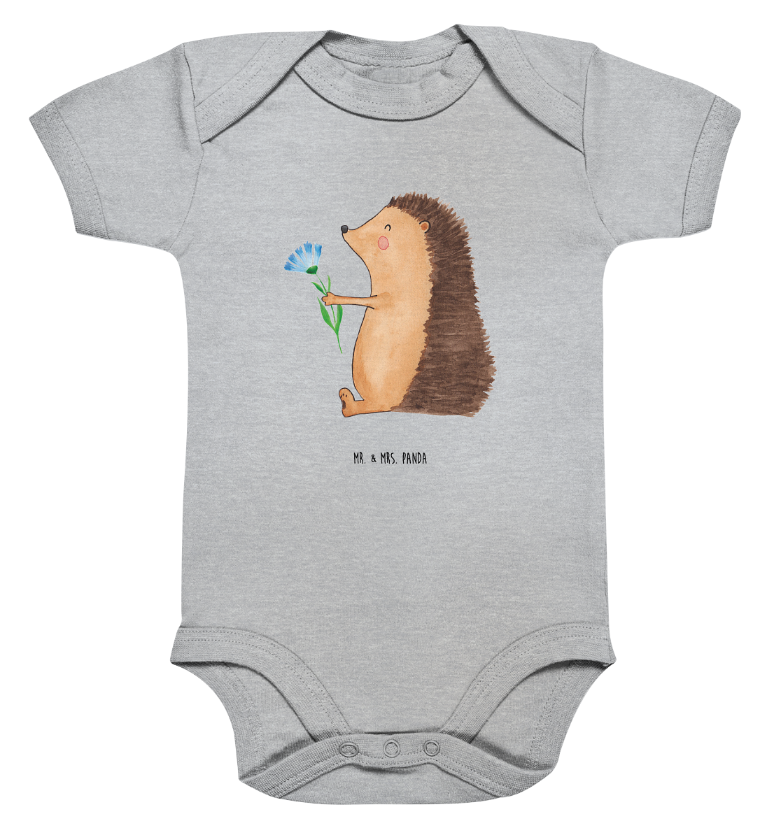 Organic Baby Body Igel mit Blume - 1. - 3. Monat - mit Spruch - Schwarz