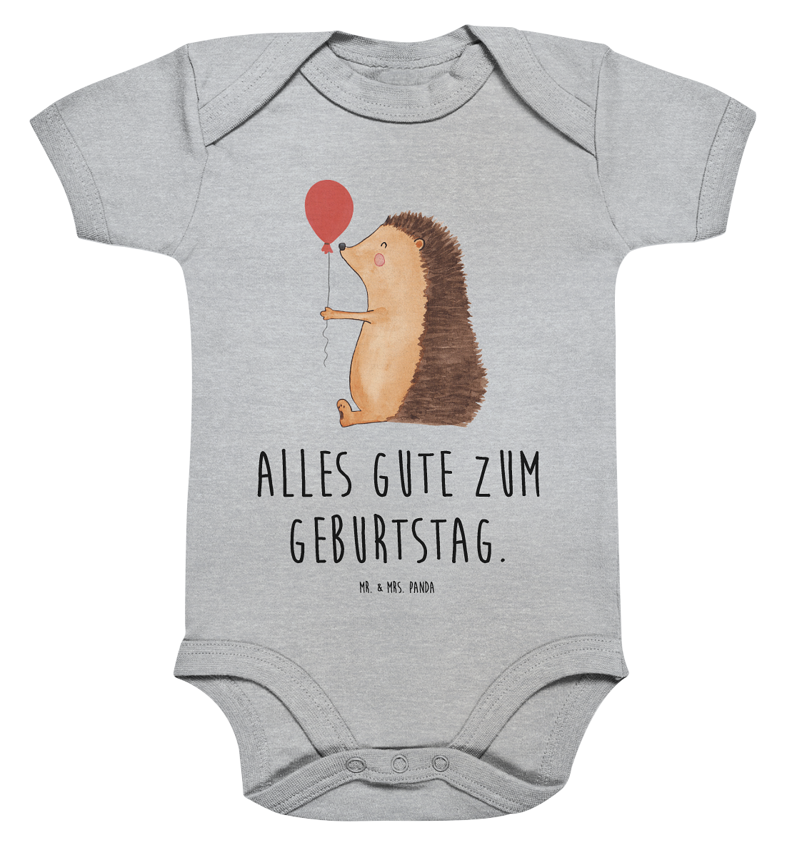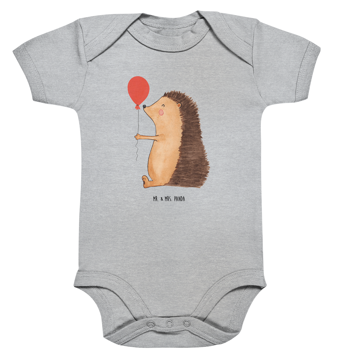 Organic Baby Body Igel mit Luftballon - 1. - 3. Monat - mit Spruch - Heather Grey
