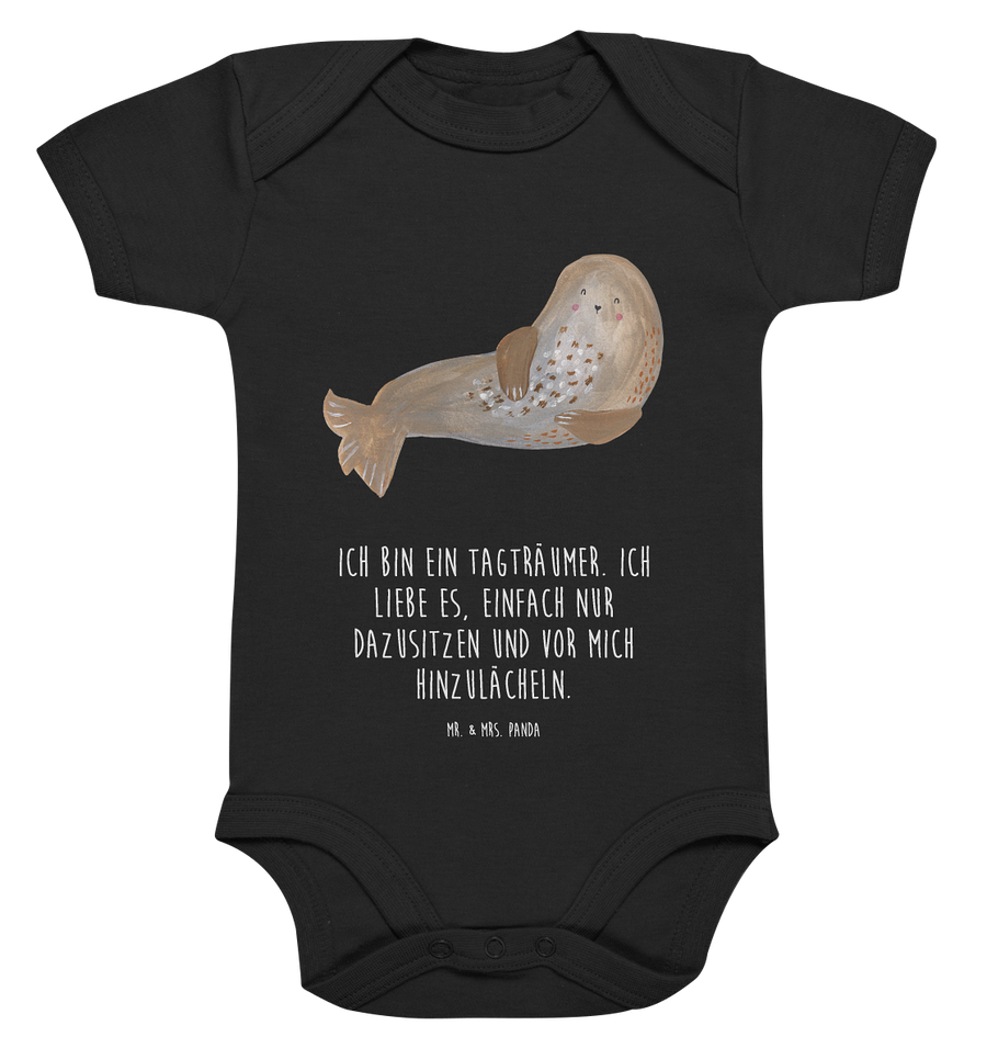 Organic Baby Body Robbe lachend - 1. - 3. Monat - mit Spruch - Schwarz