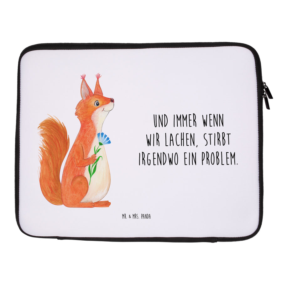 20 x 28 Notebook Tasche Eichhörnchen Blume - mit Spruch - Weiß