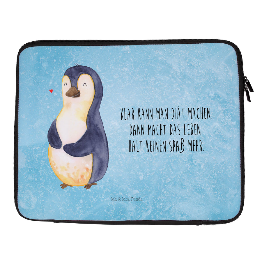 33 x 42 Notebook Tasche Pinguin Diät - mit Spruch - Eisblau