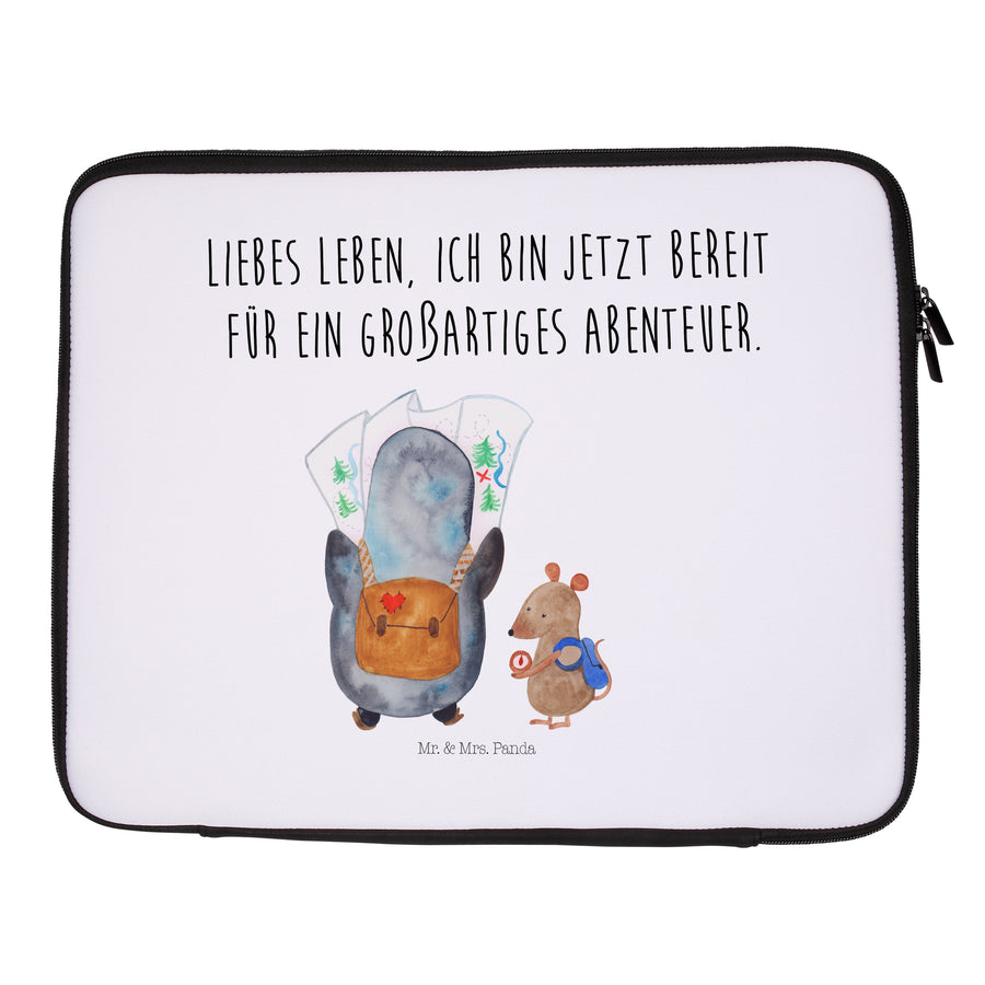 27 x 36 Notebook Tasche Pinguin & Maus Wanderer - mit Spruch - Weiß
