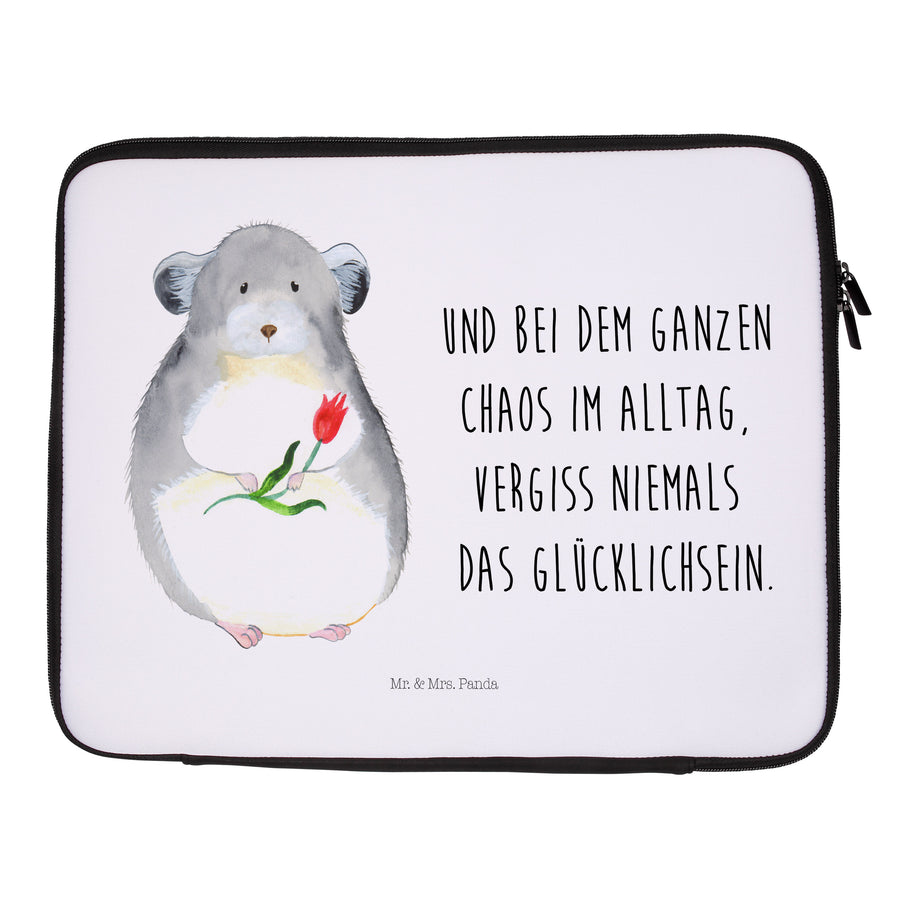 33 x 42 Notebook Tasche Chinchilla mit Blume - mit Spruch - Weiß