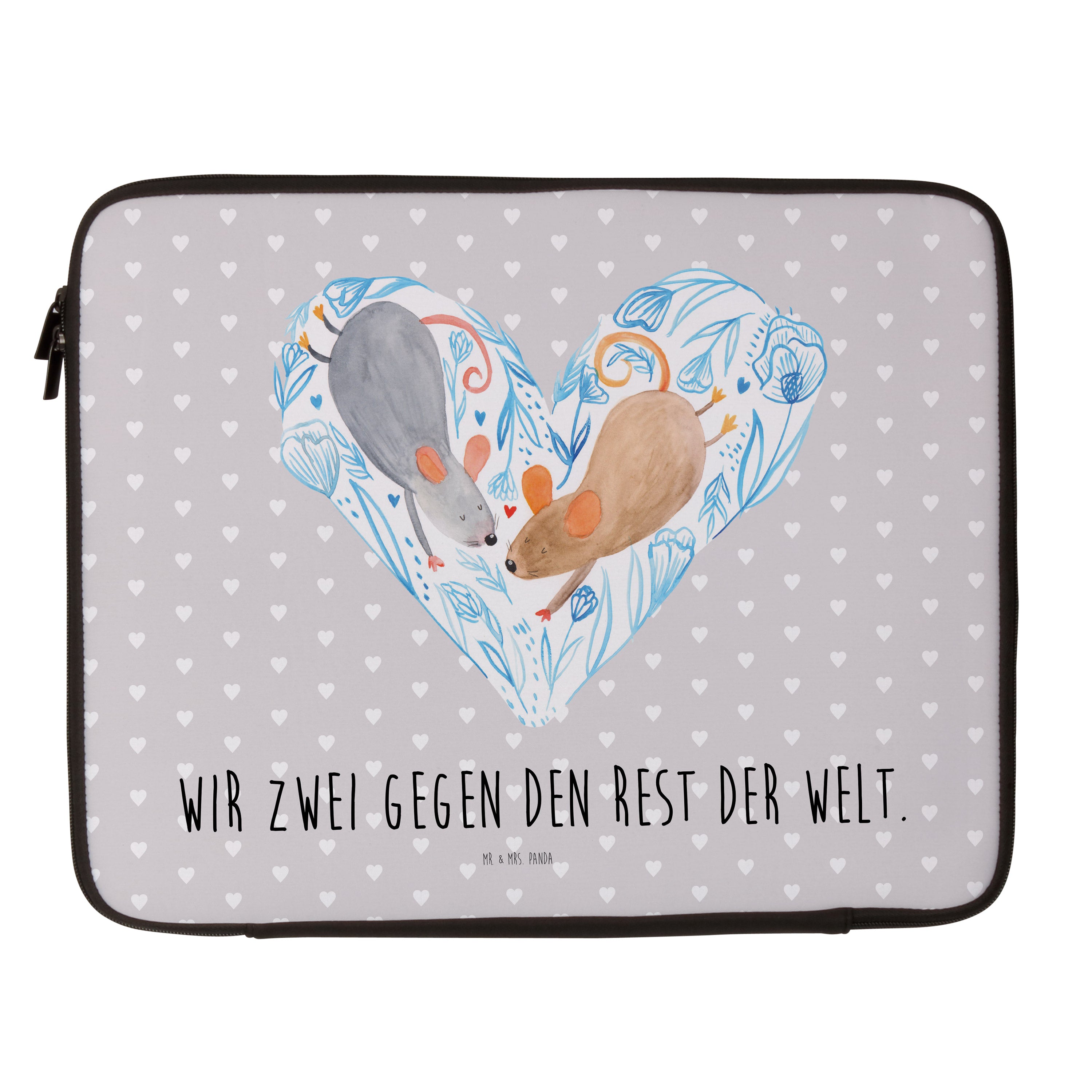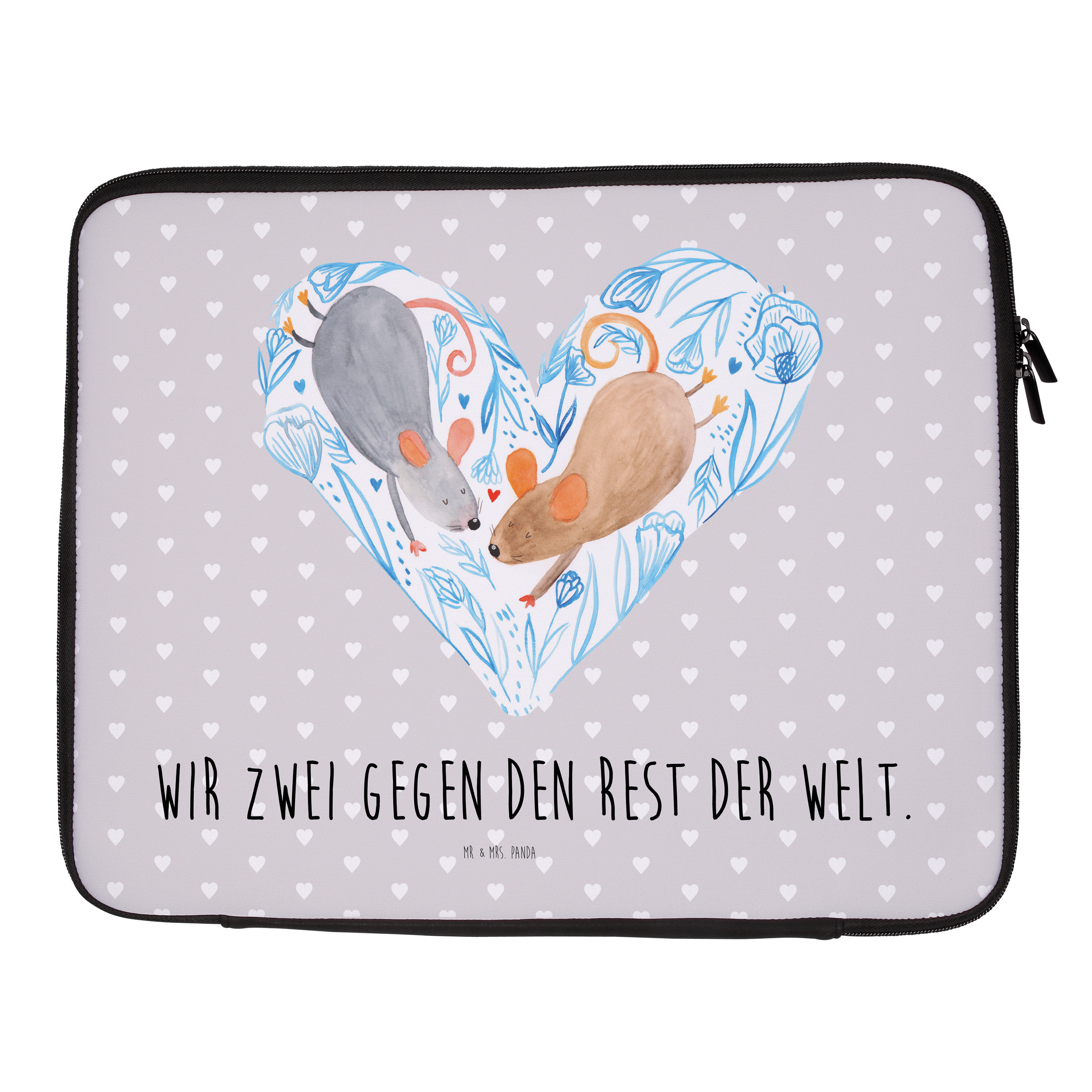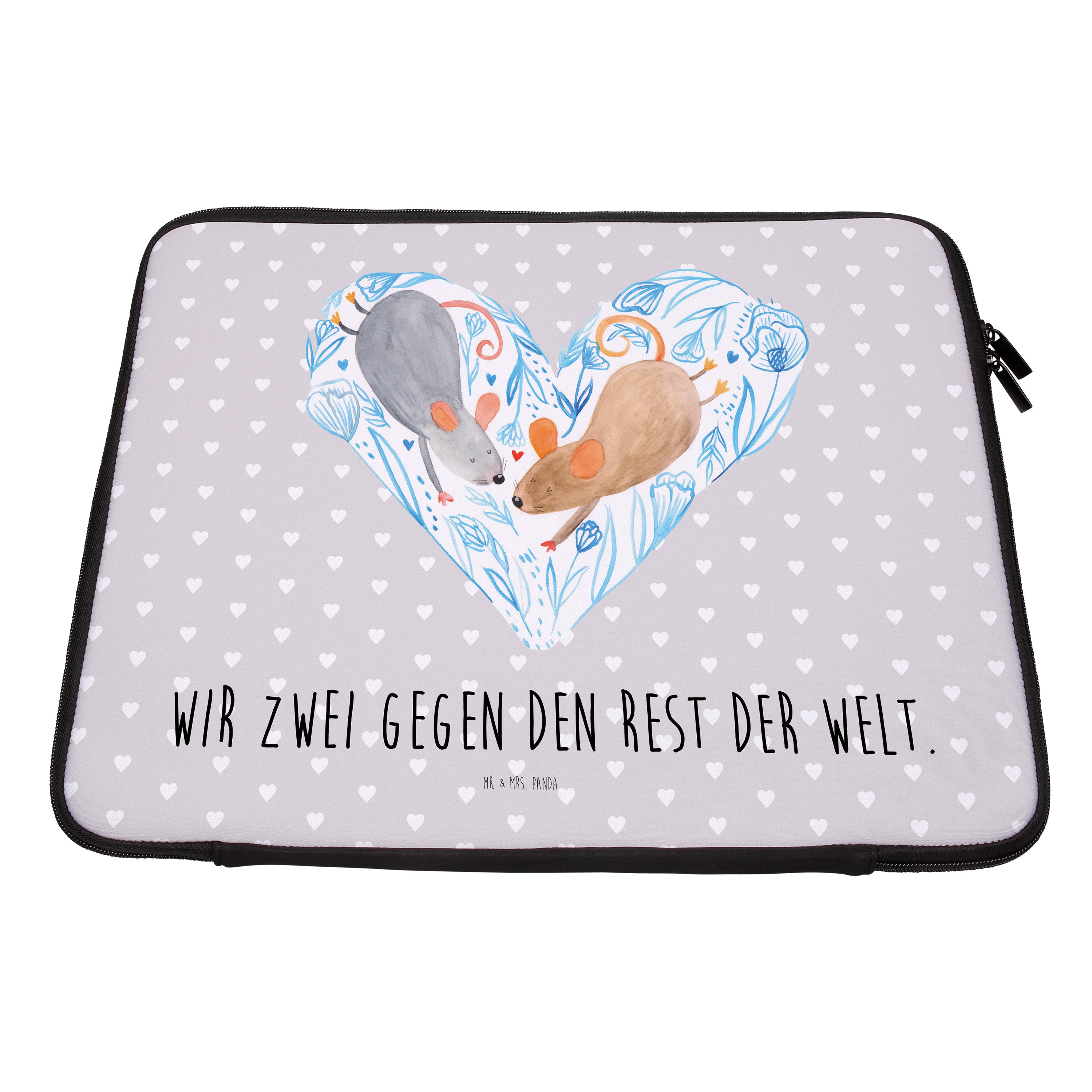 Notebook Tasche Mäuse Herz - Grau Pastell - mit Spruch - 27 x 36 Notebook Tasche