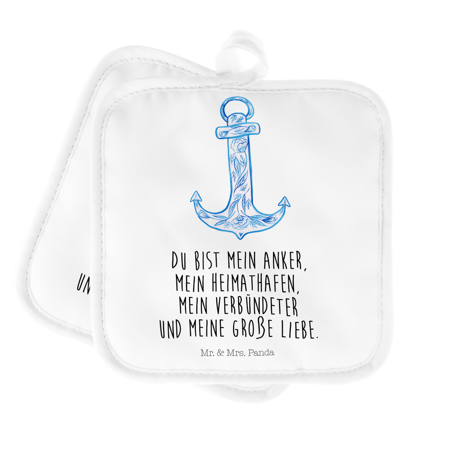 2er Set Topflappen Anker Blau - mit Spruch - Weiß