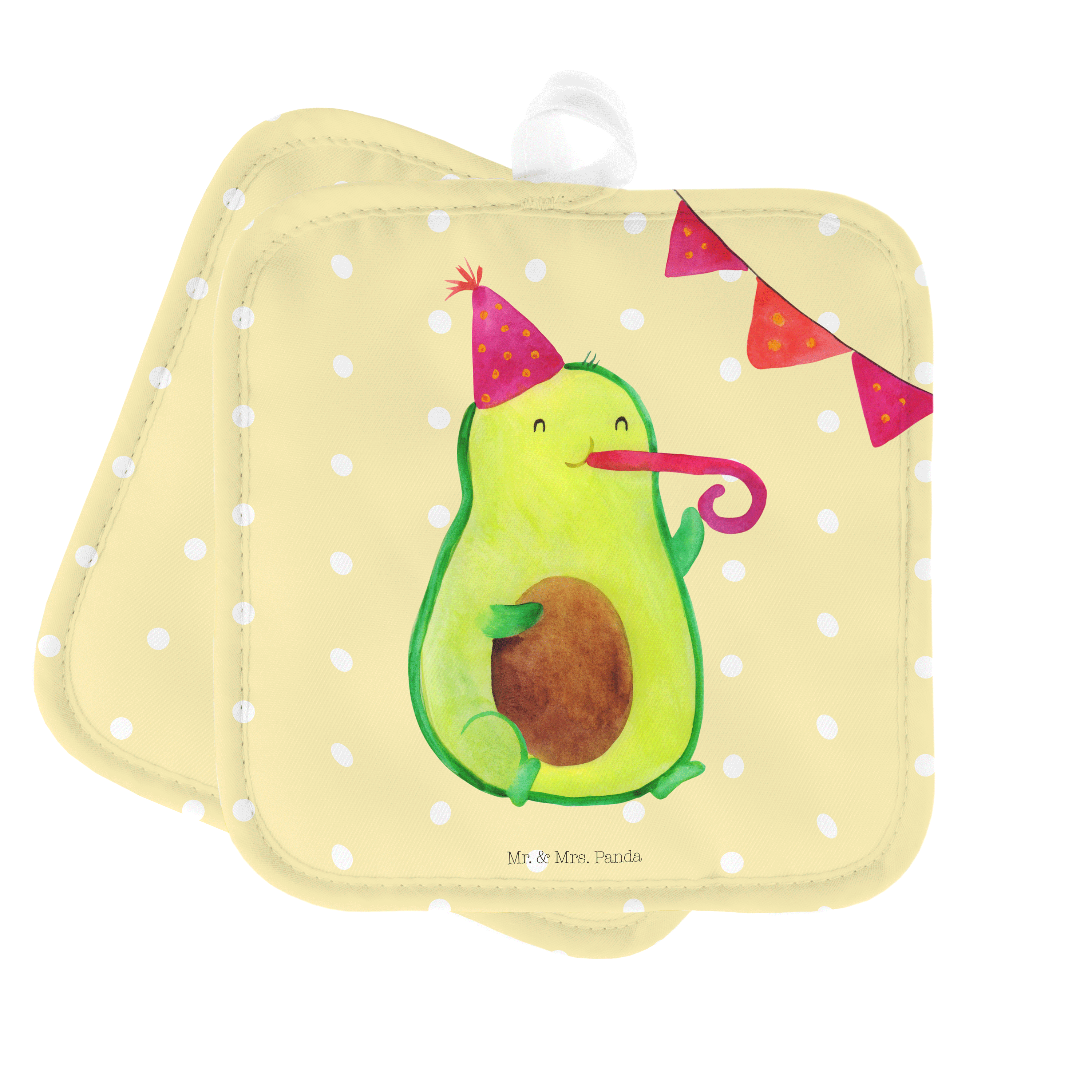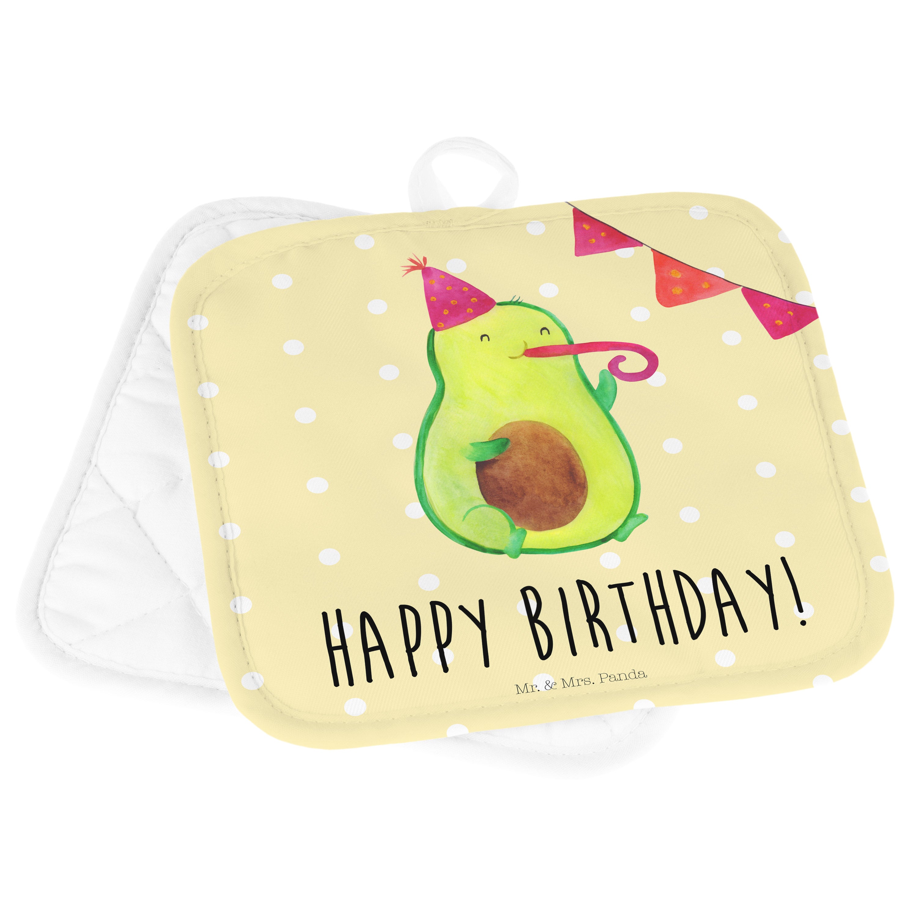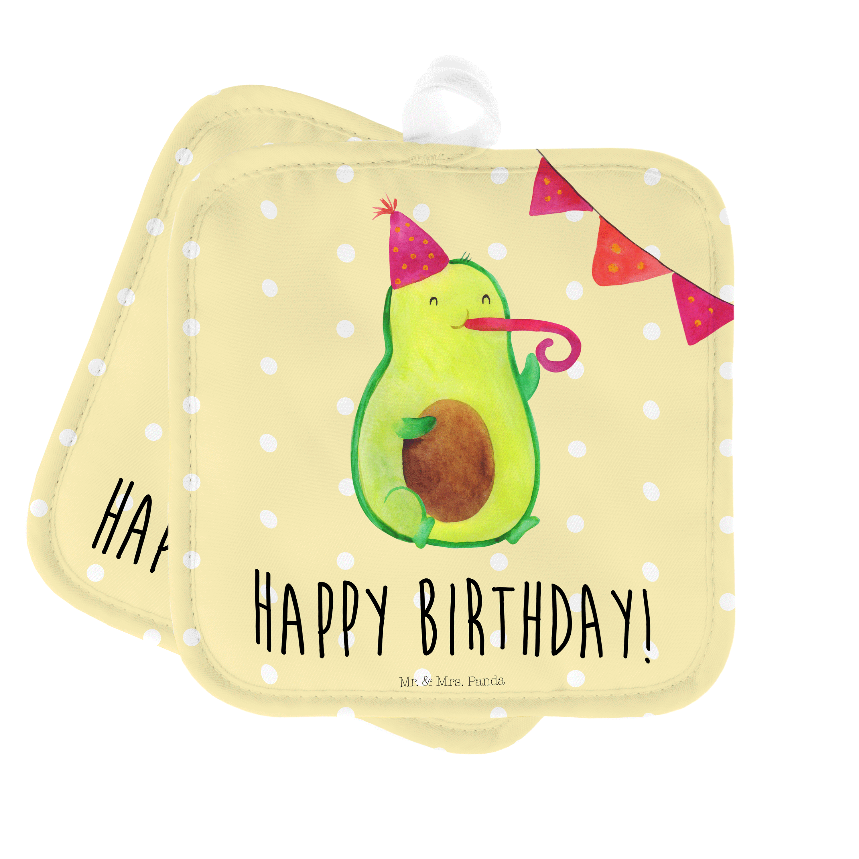 2er Set Topflappen Avocado Birthday - mit Spruch - Gelb Pastell