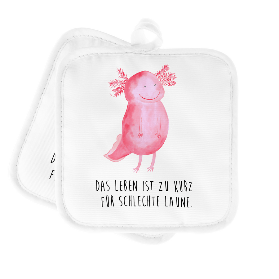 2er Set Topflappen Axolotl glücklich - mit Spruch - Weiß