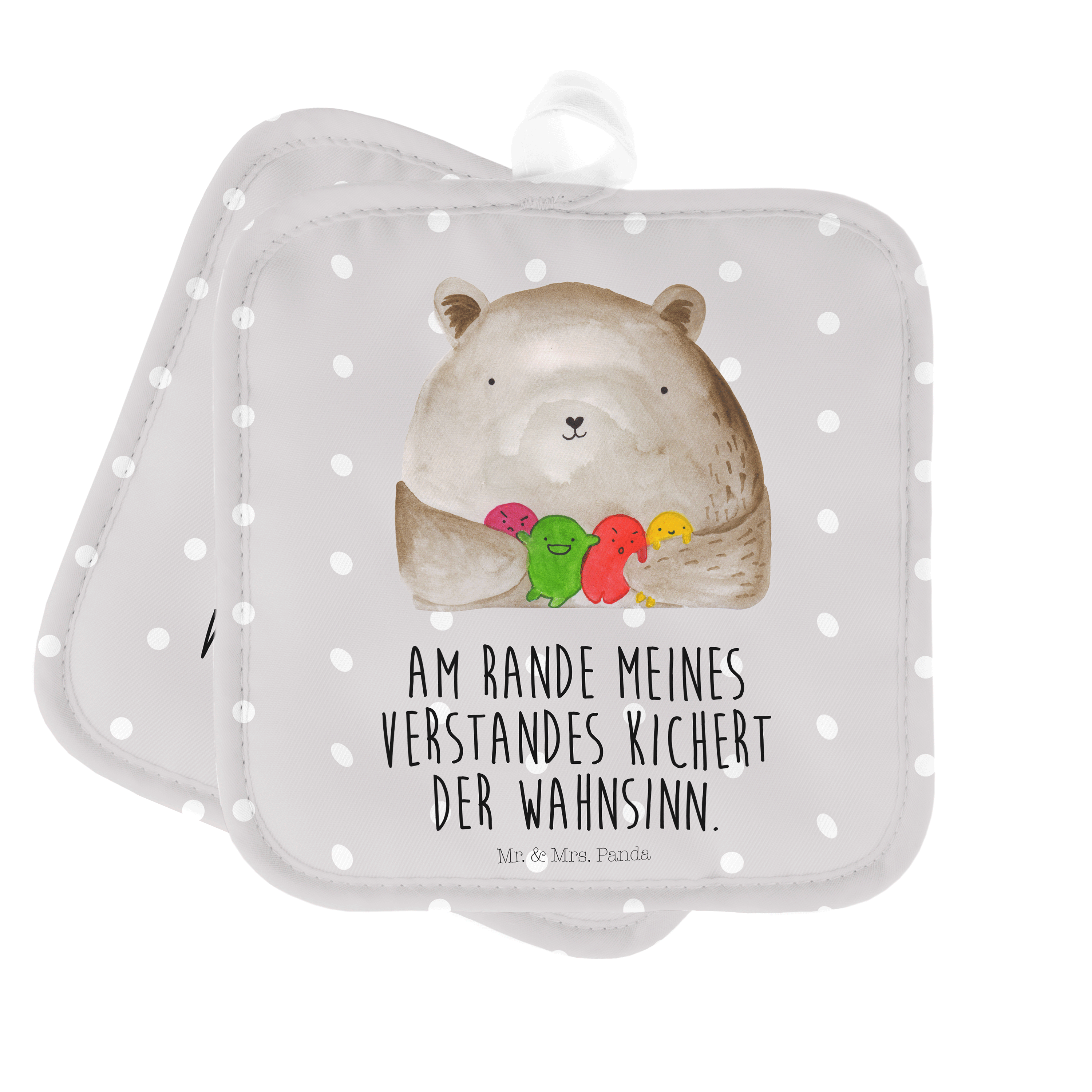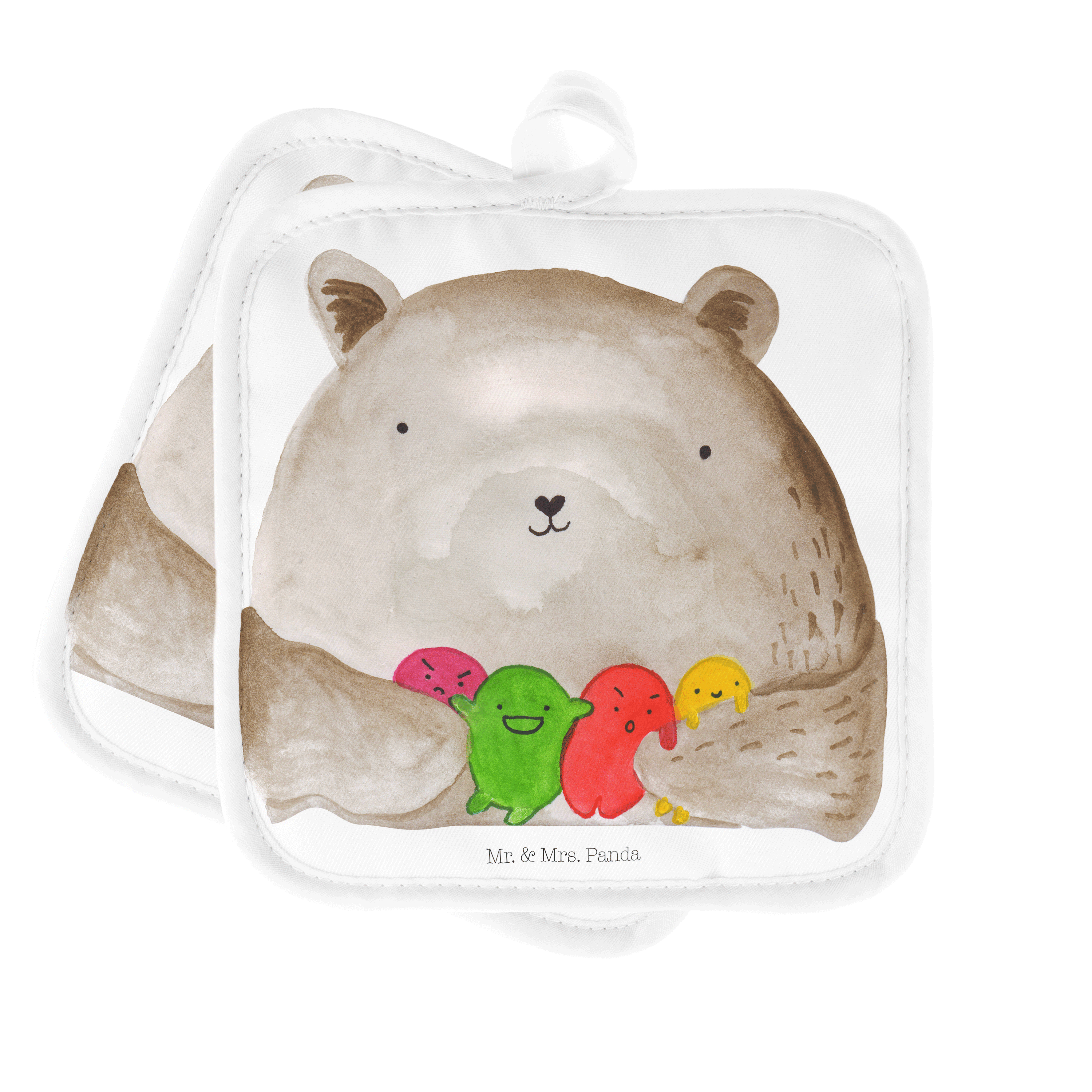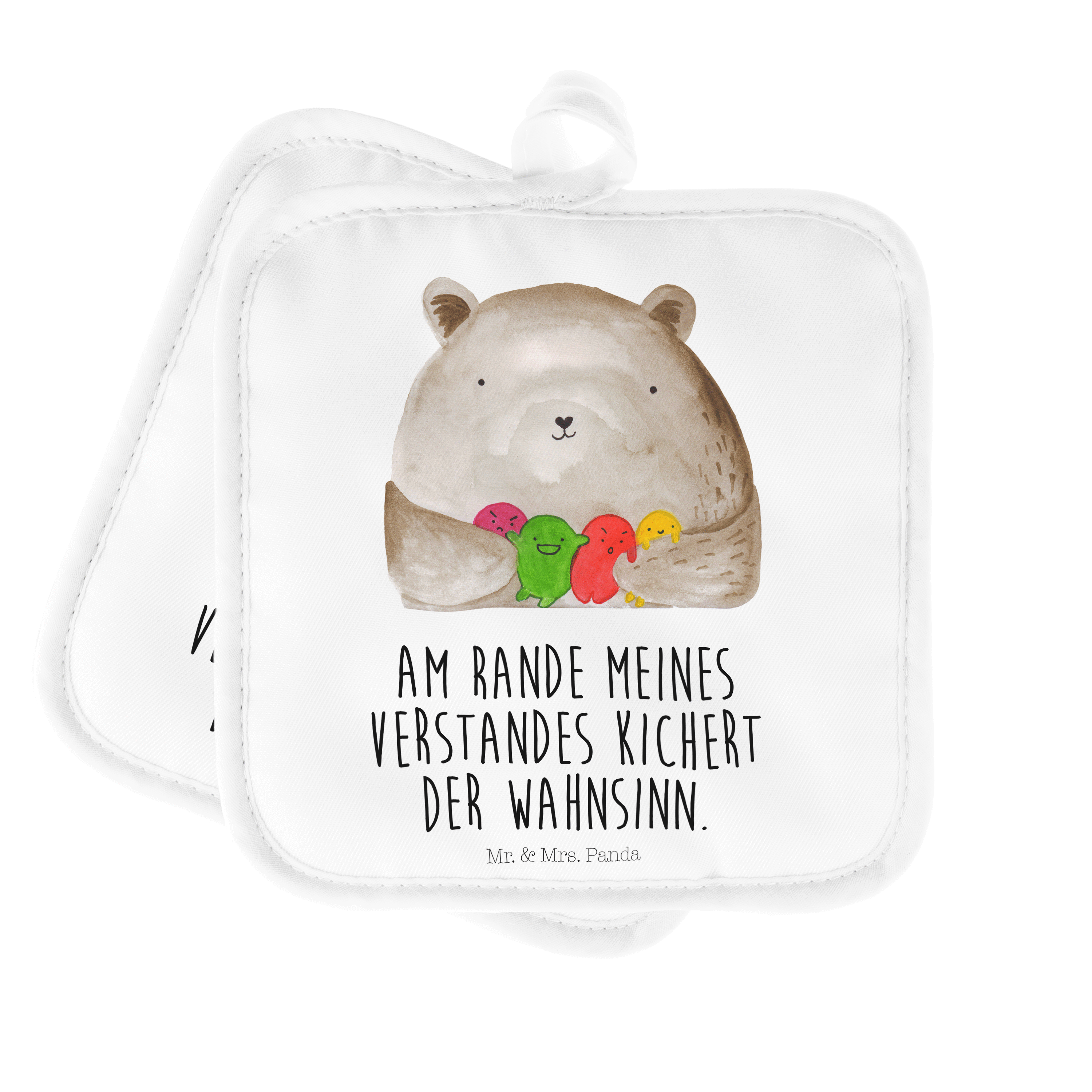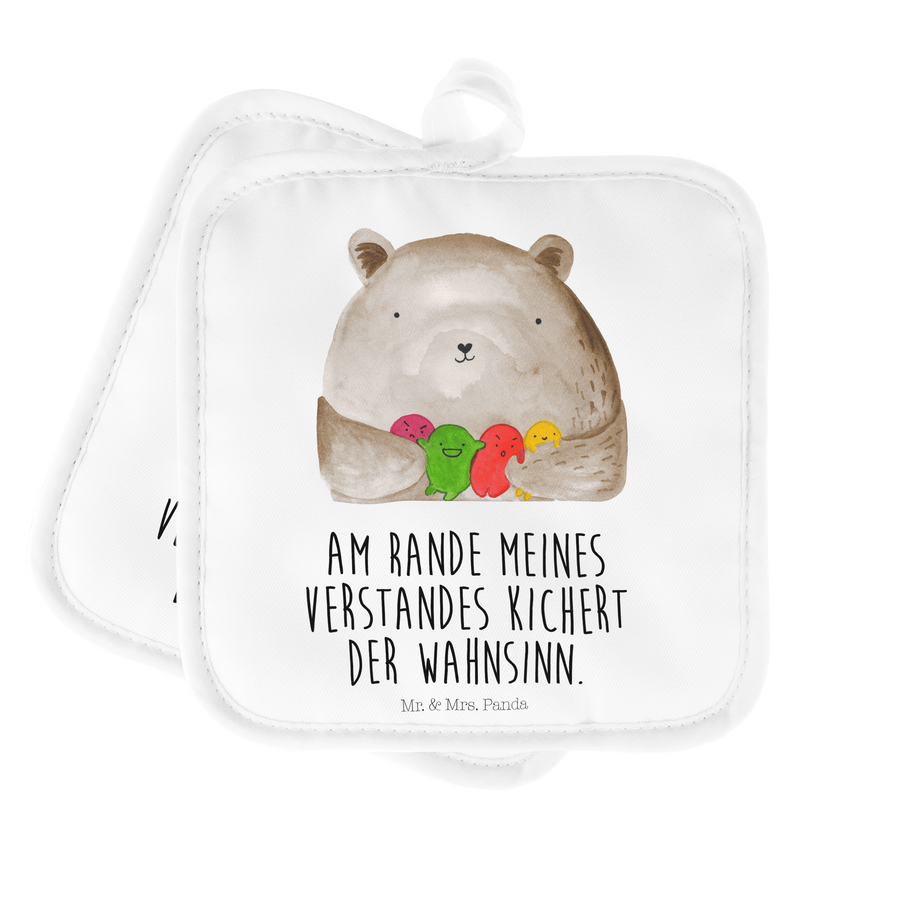 2er Set Topflappen Bär Gefühl - mit Spruch - Weiß