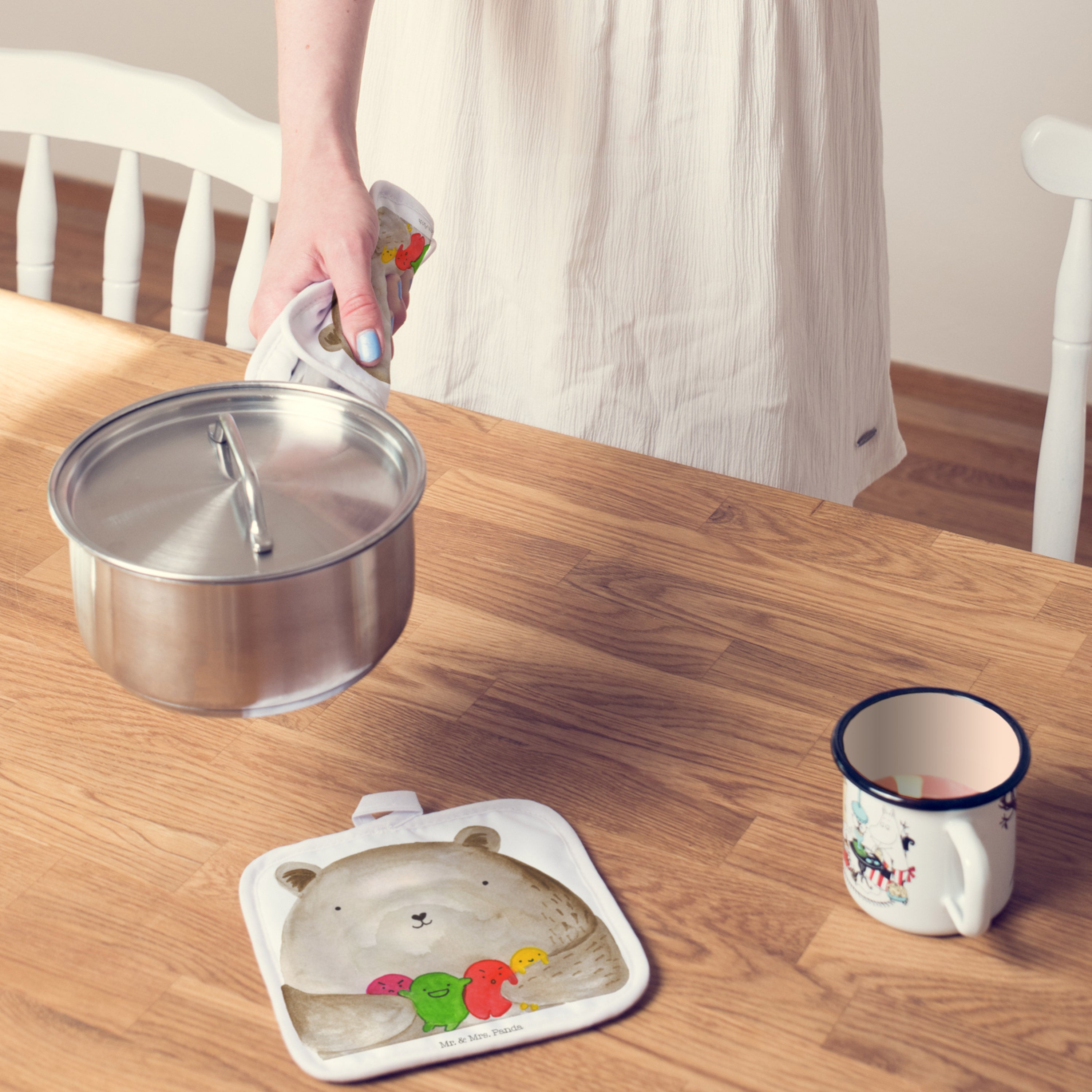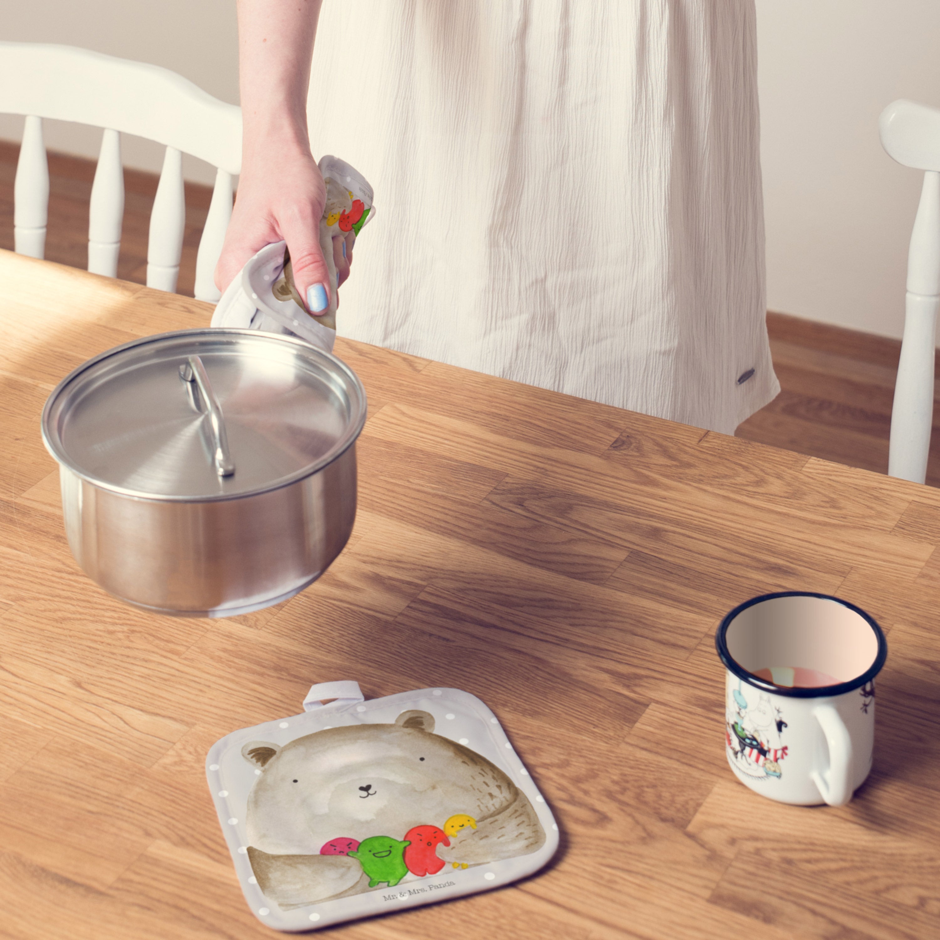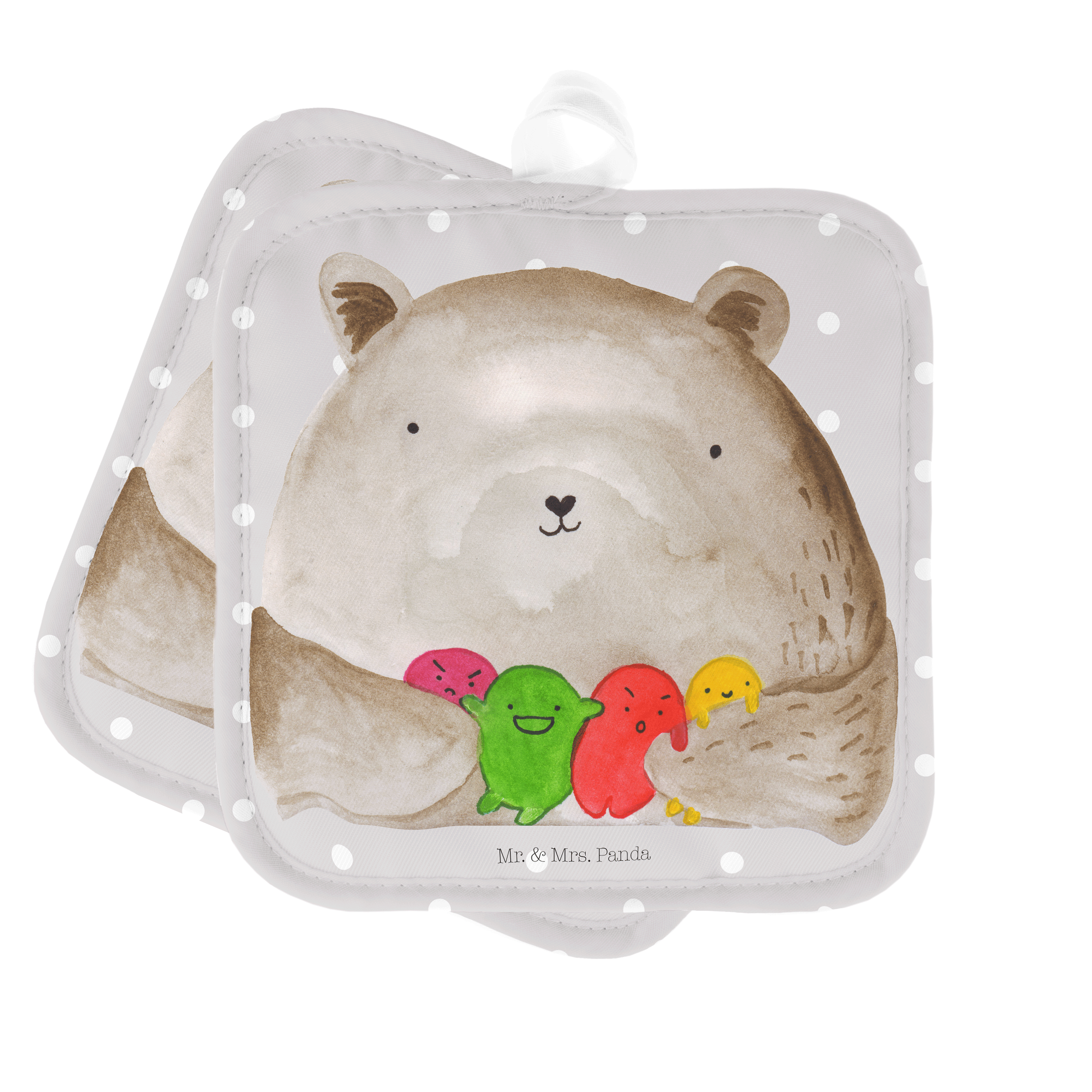 2er Set Topflappen Bär Gefühl - mit Spruch - Weiß