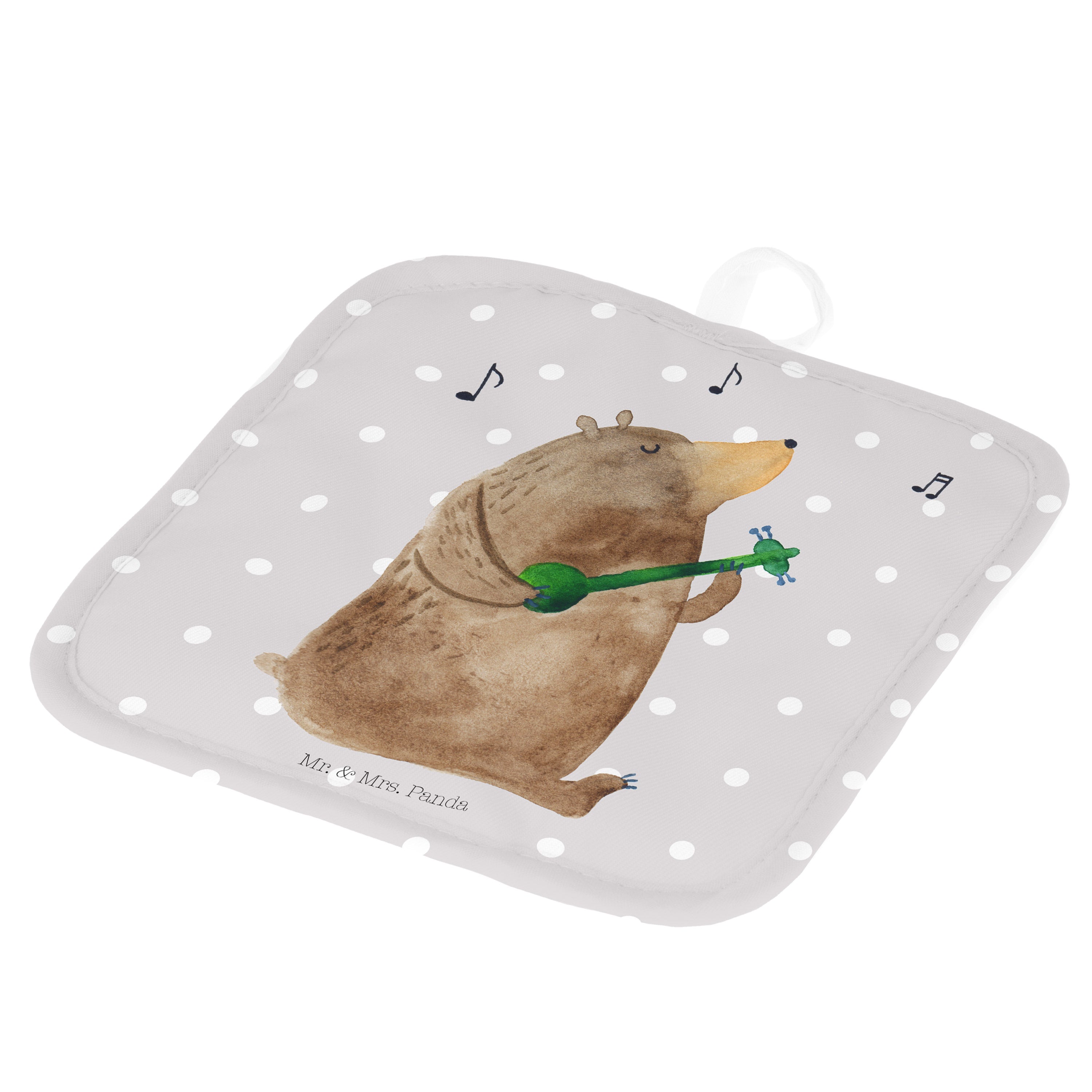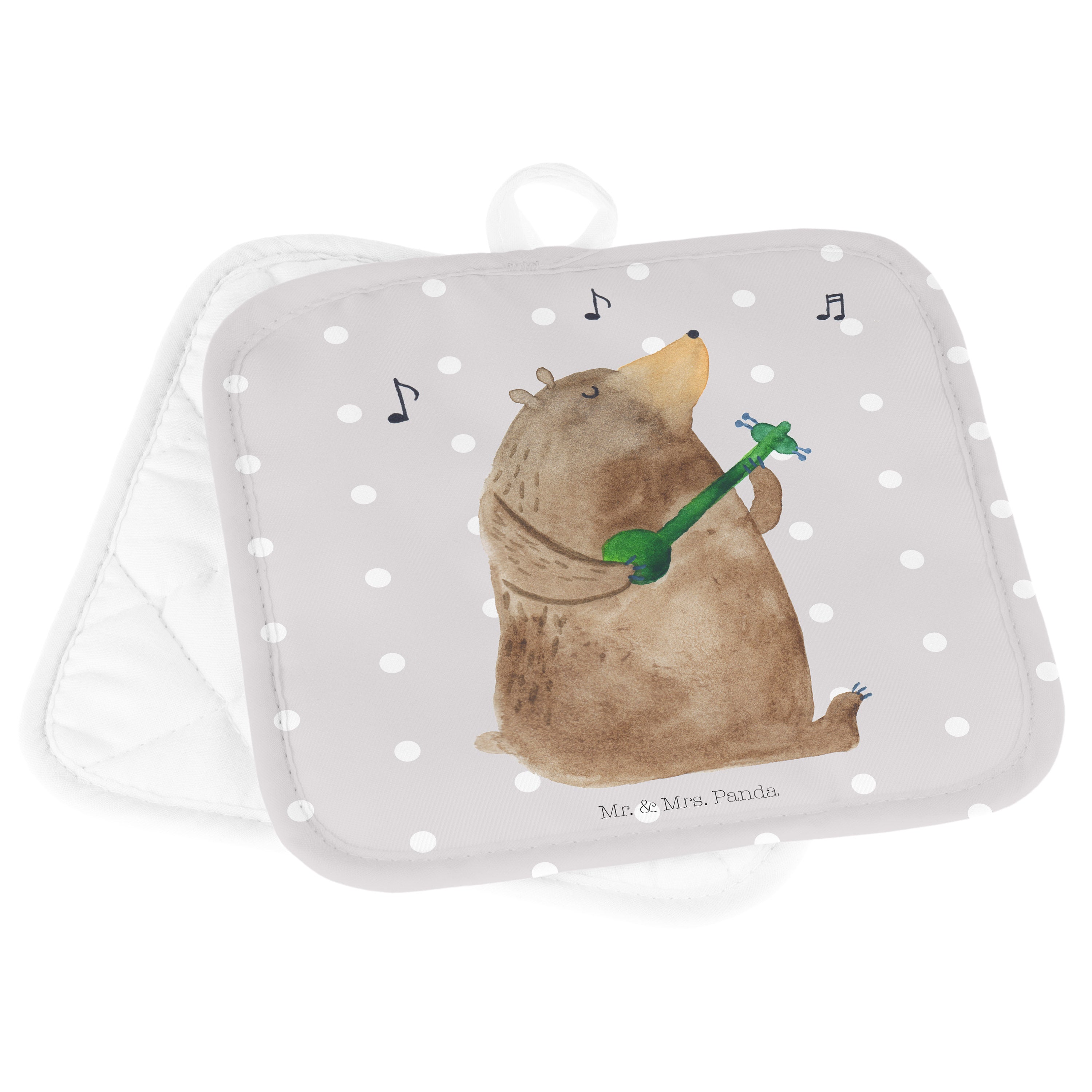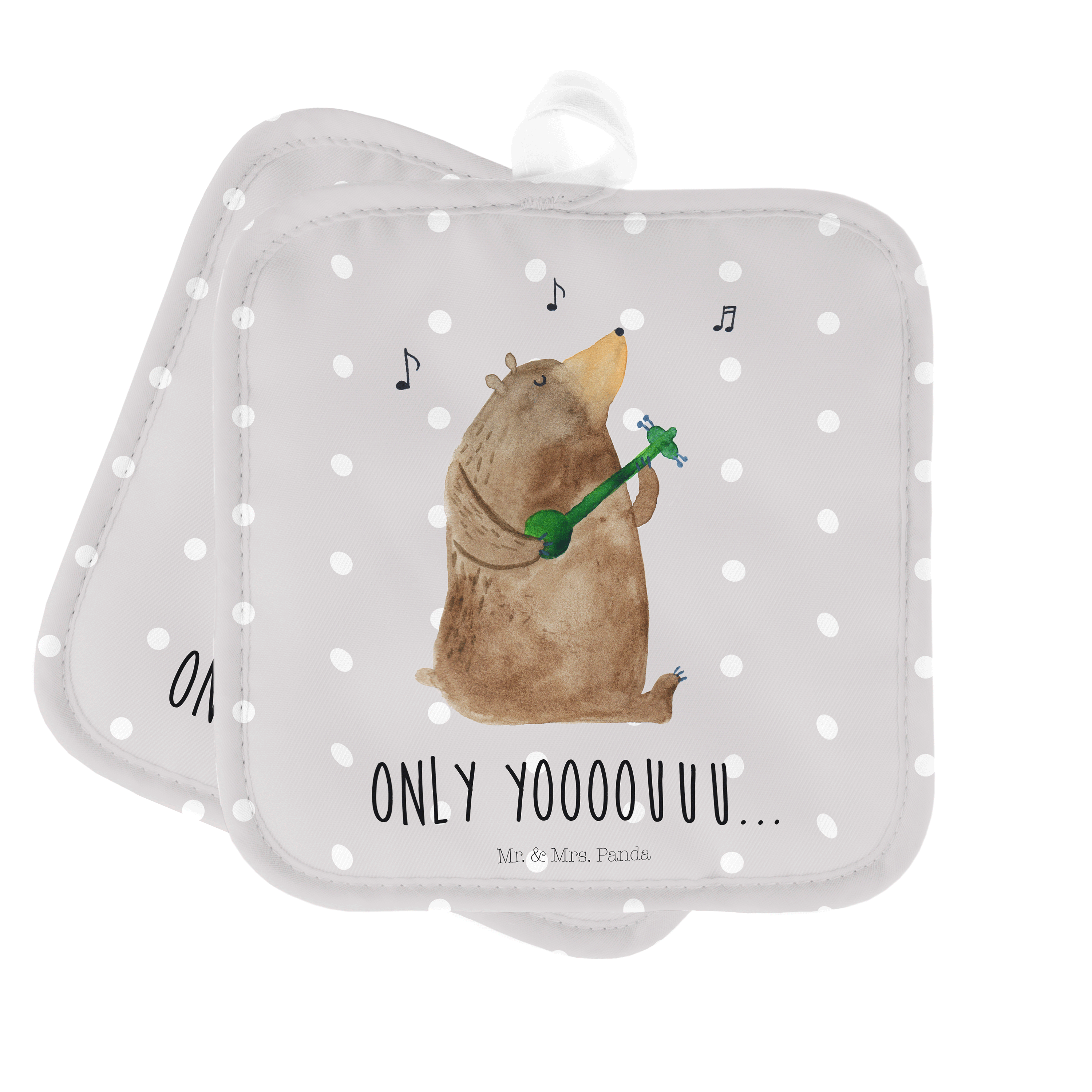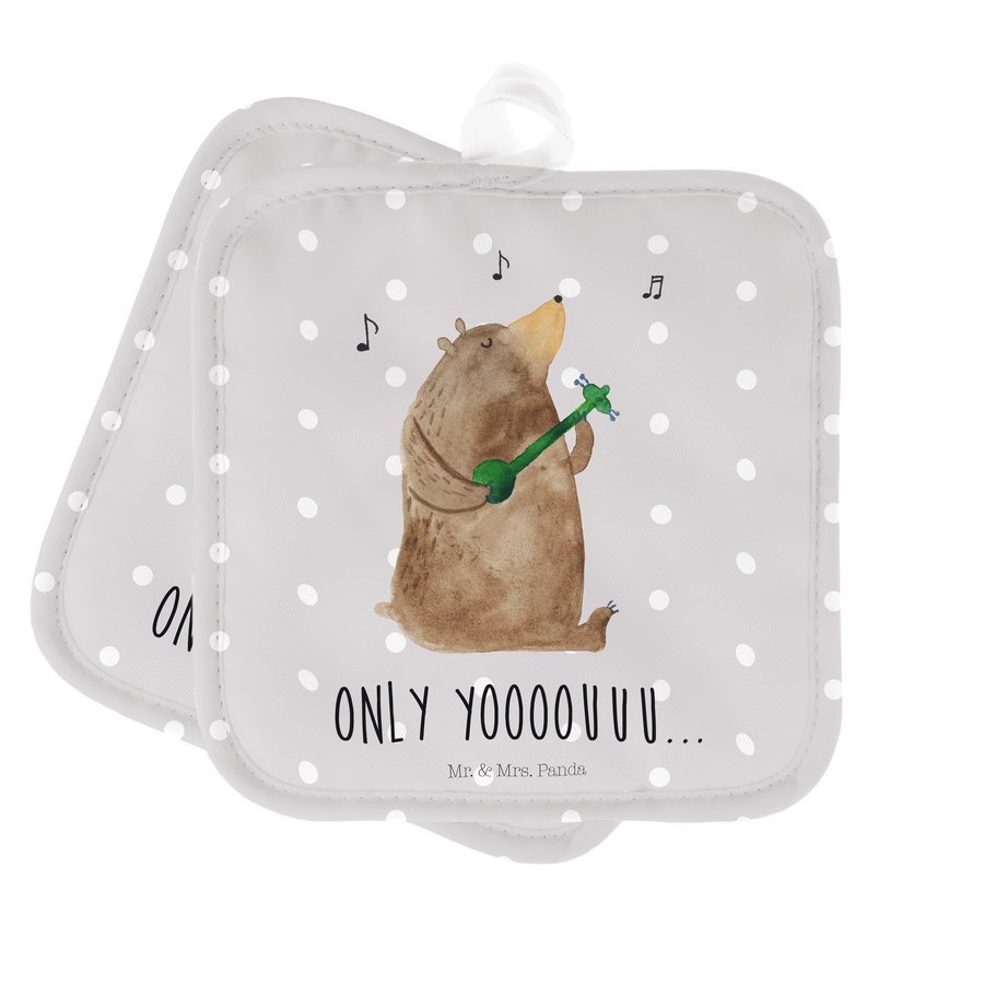 2er Set Topflappen Bär Gitarre - mit Spruch - Grau Pastell