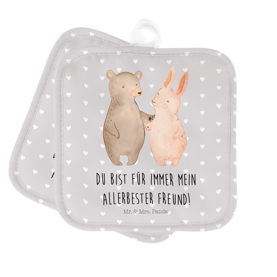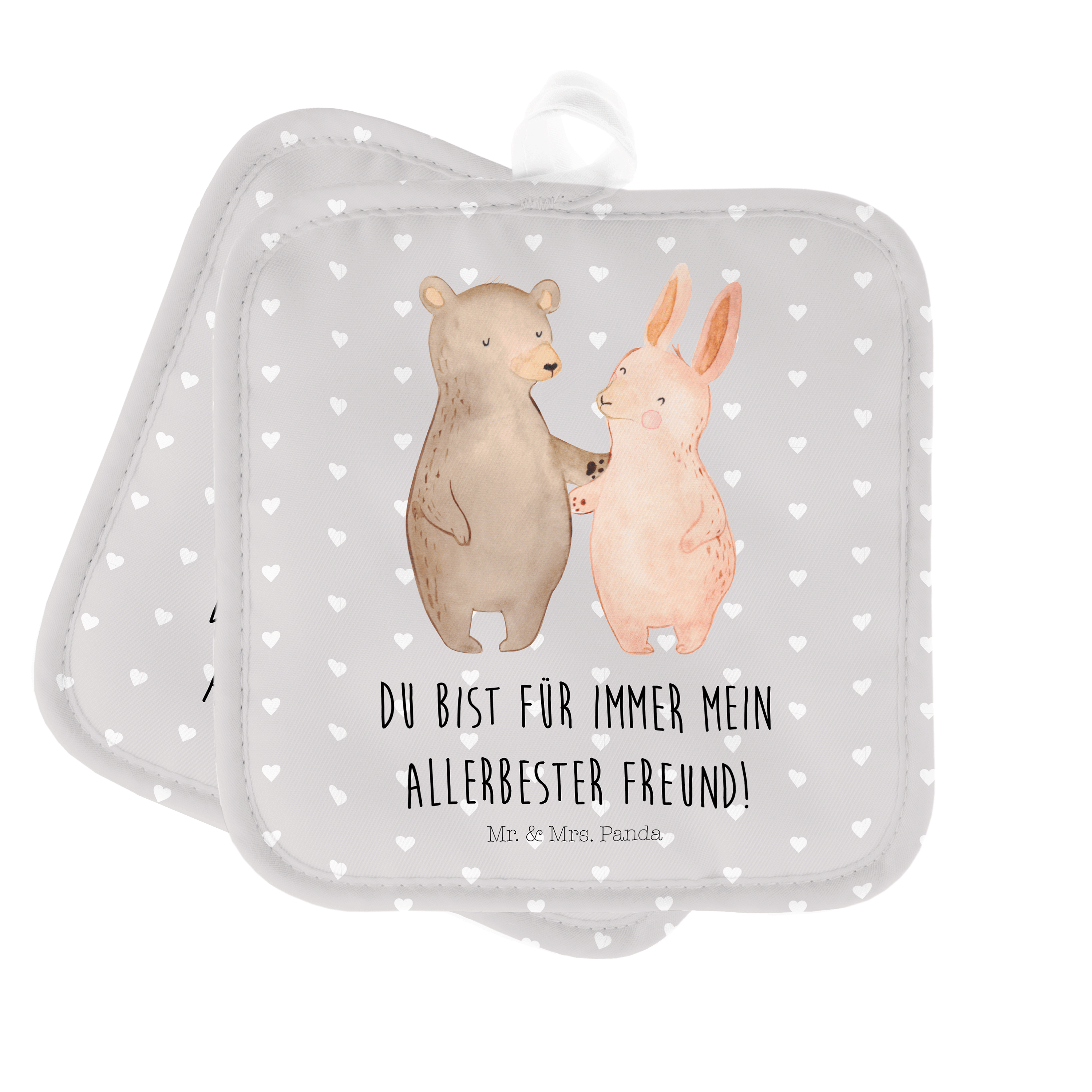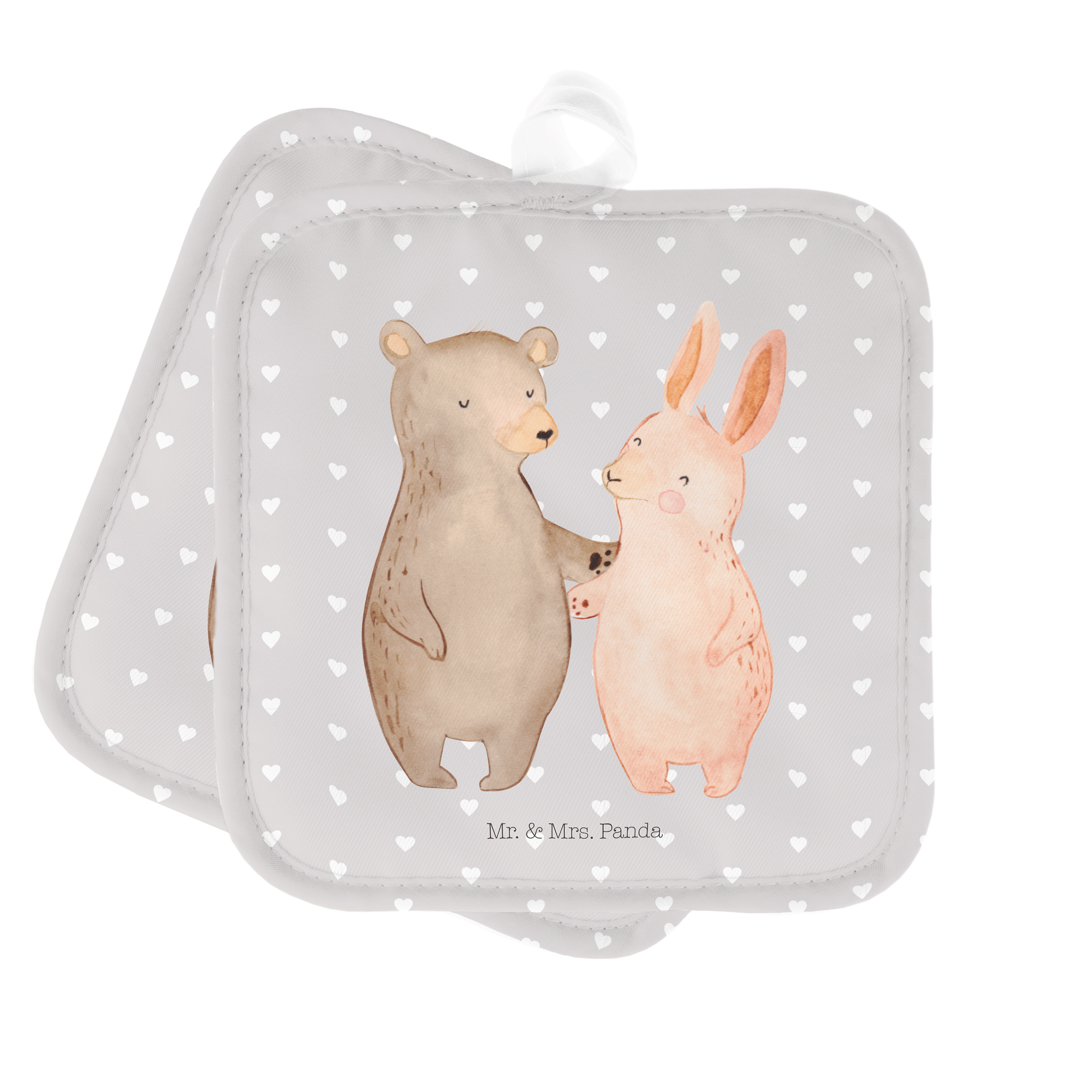 2er Set Topflappen Bär Hase Umarmen - mit Spruch