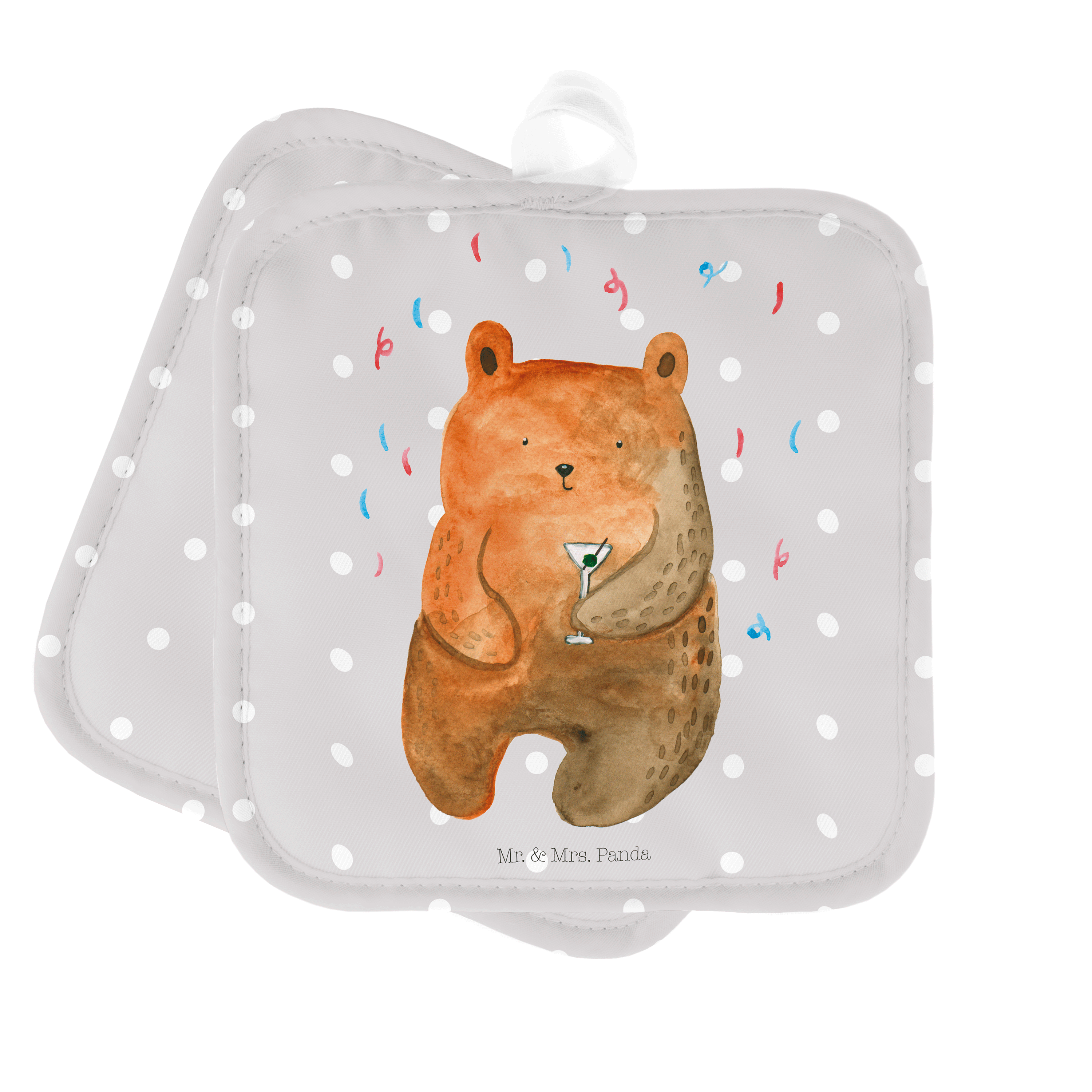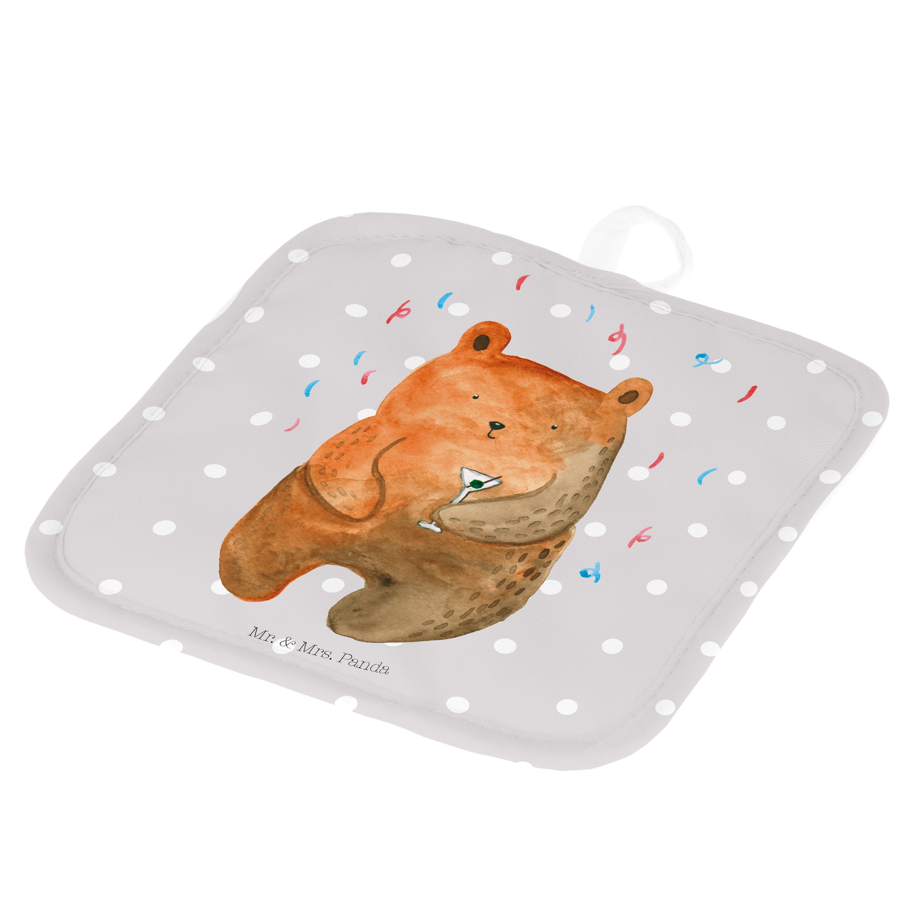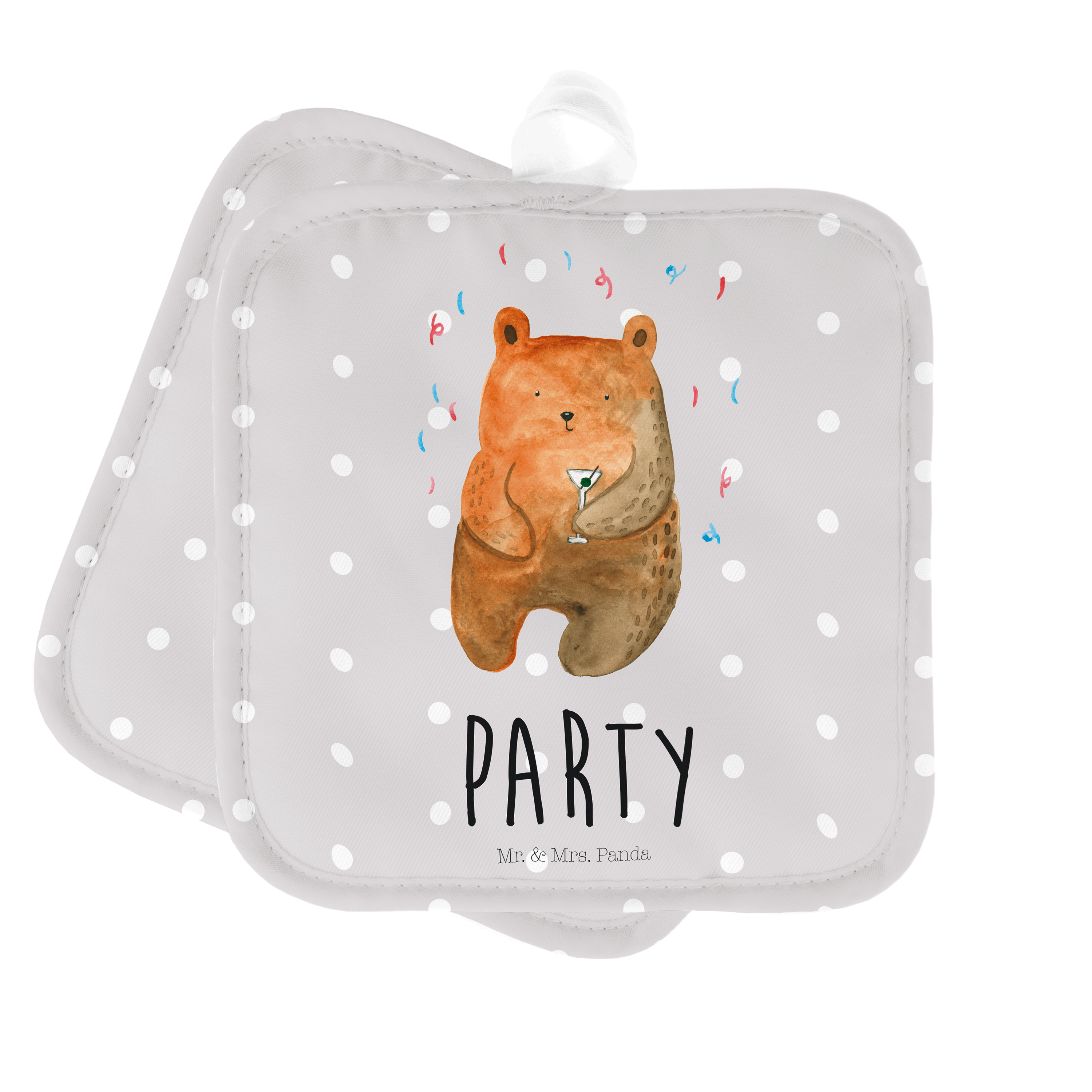 2er Set Topflappen Bär Party - mit Spruch - Grau Pastell