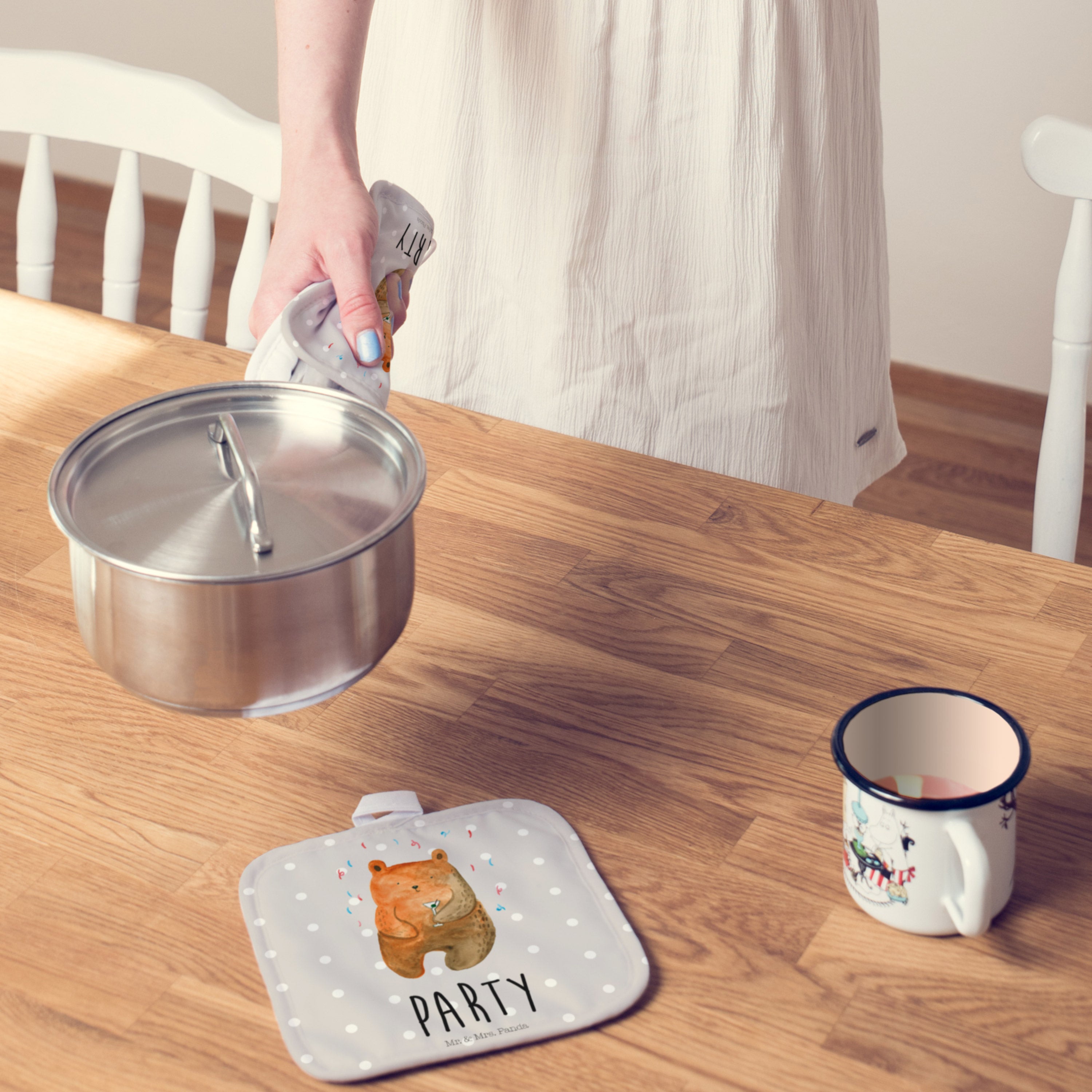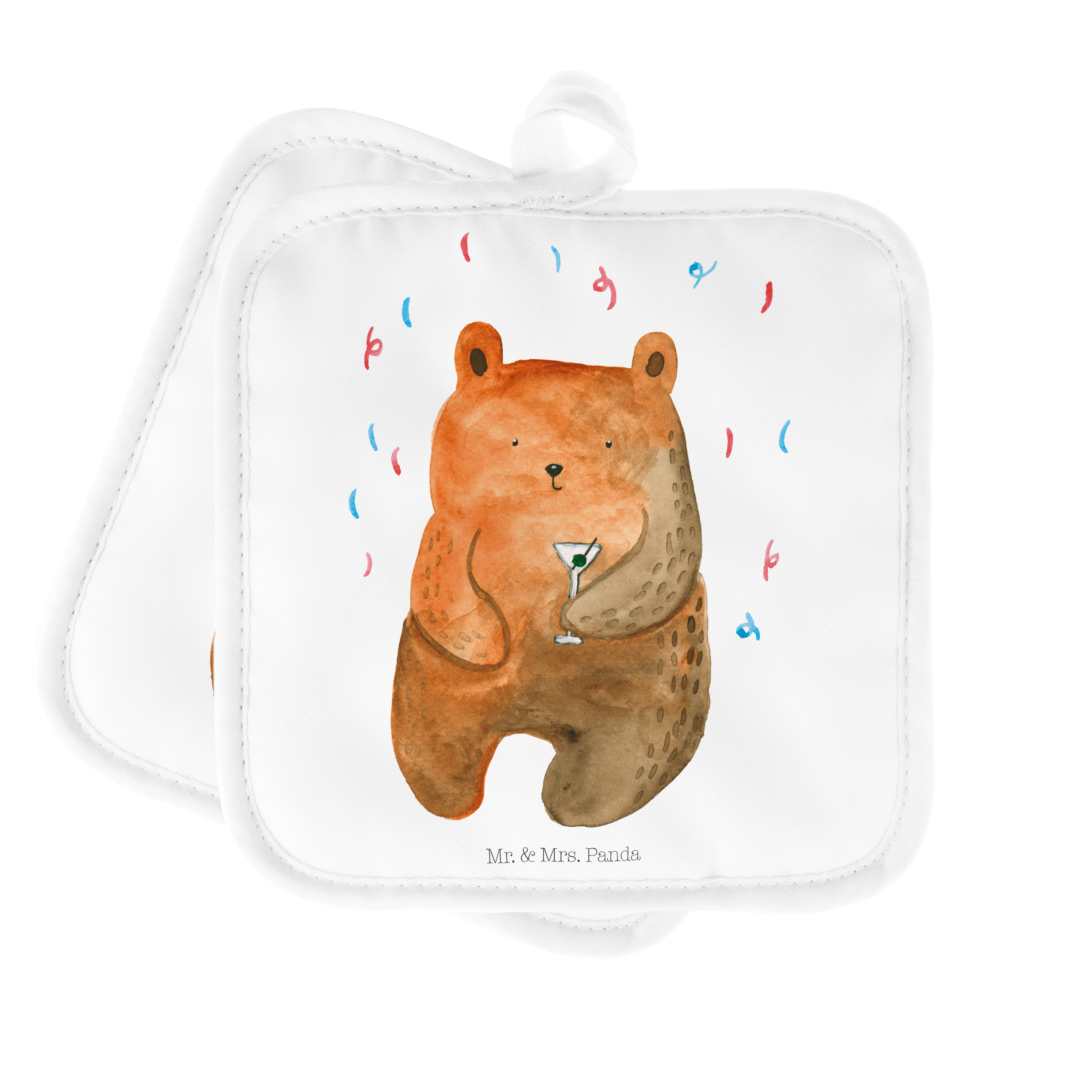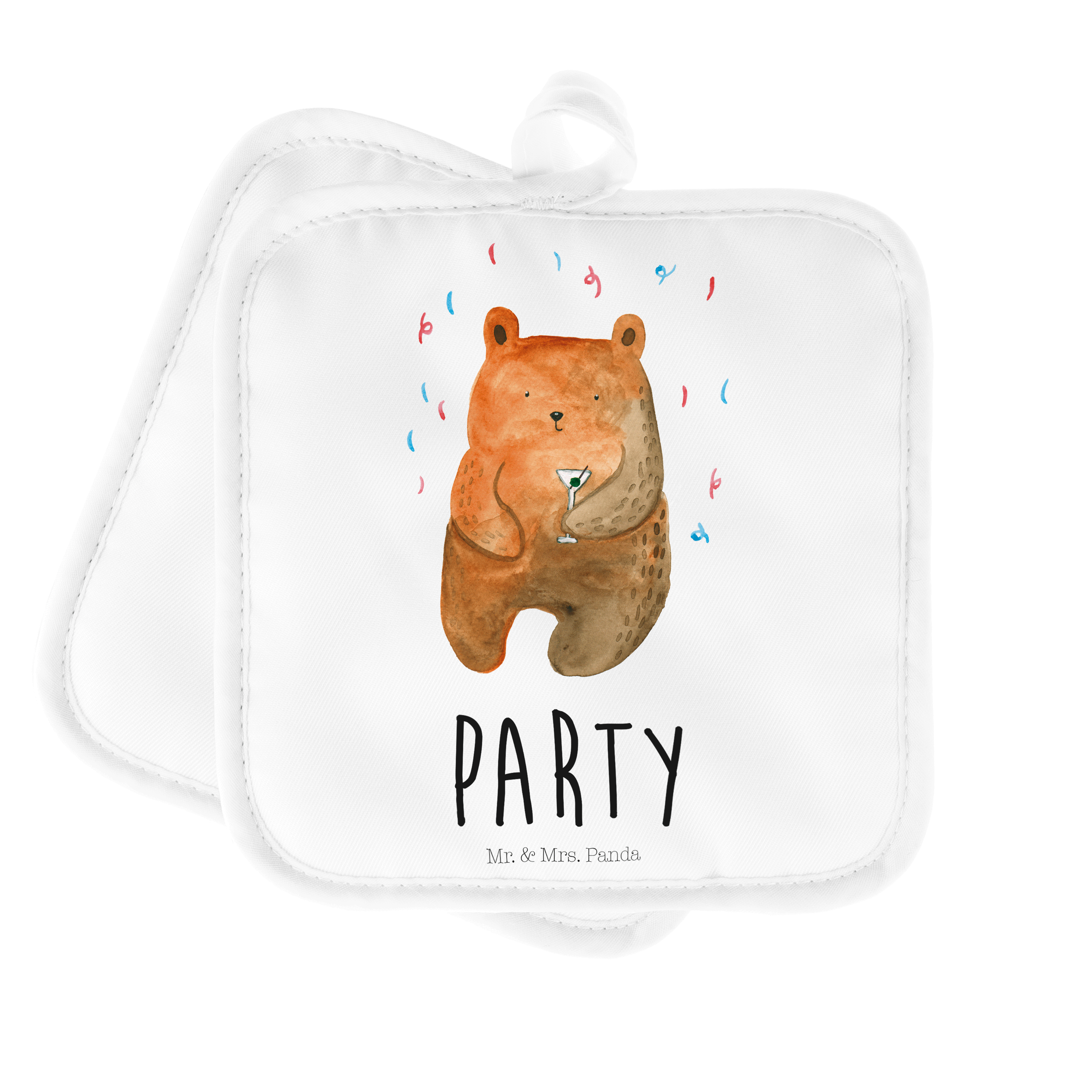 2er Set Topflappen Bär Party - mit Spruch - Grau Pastell