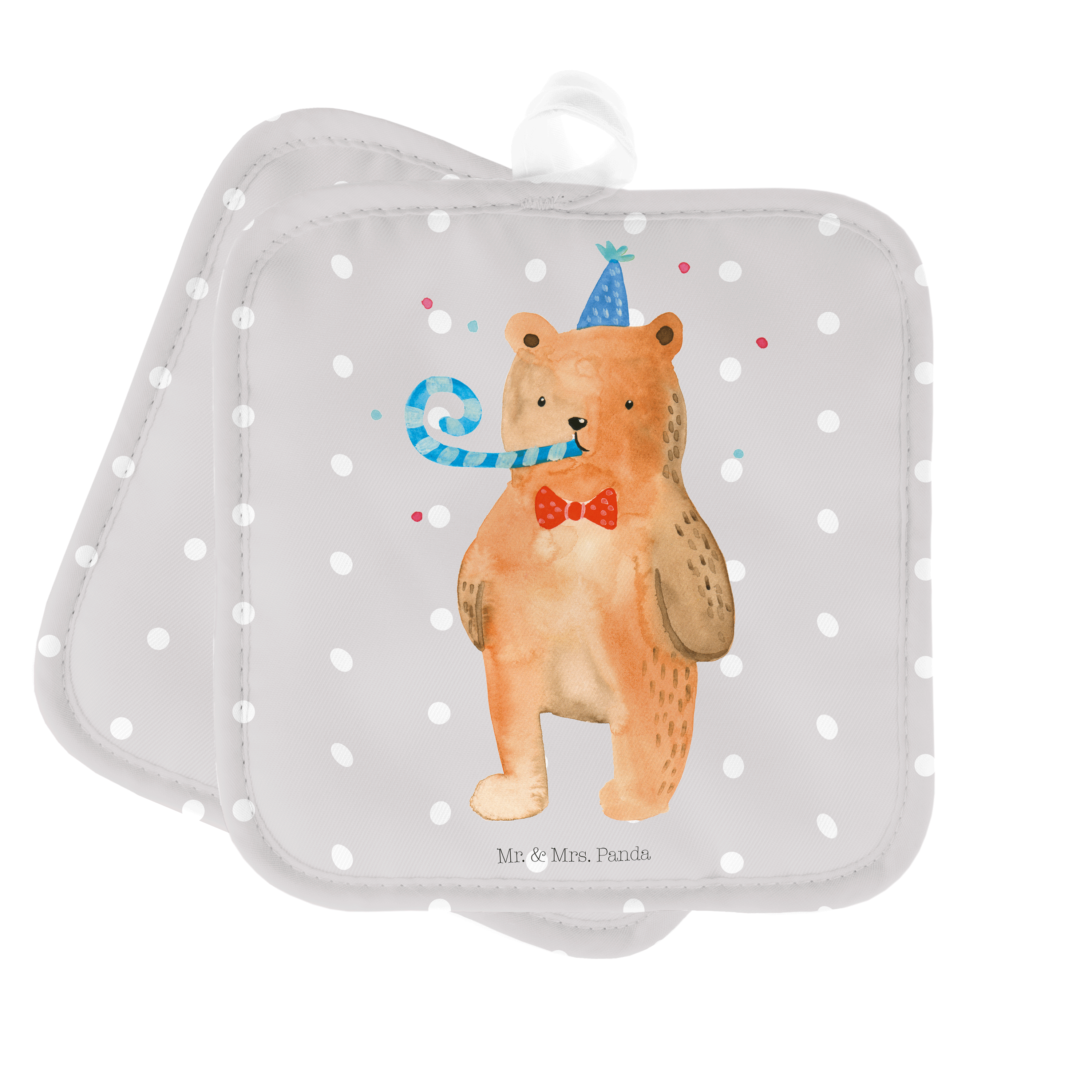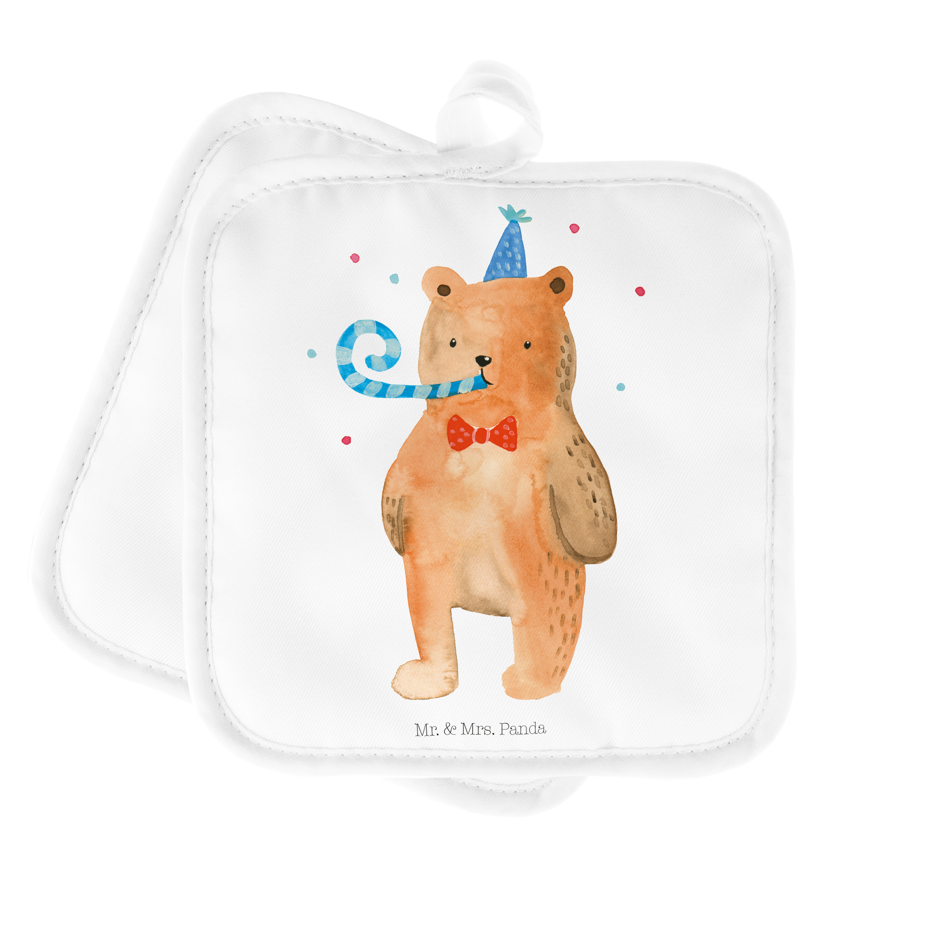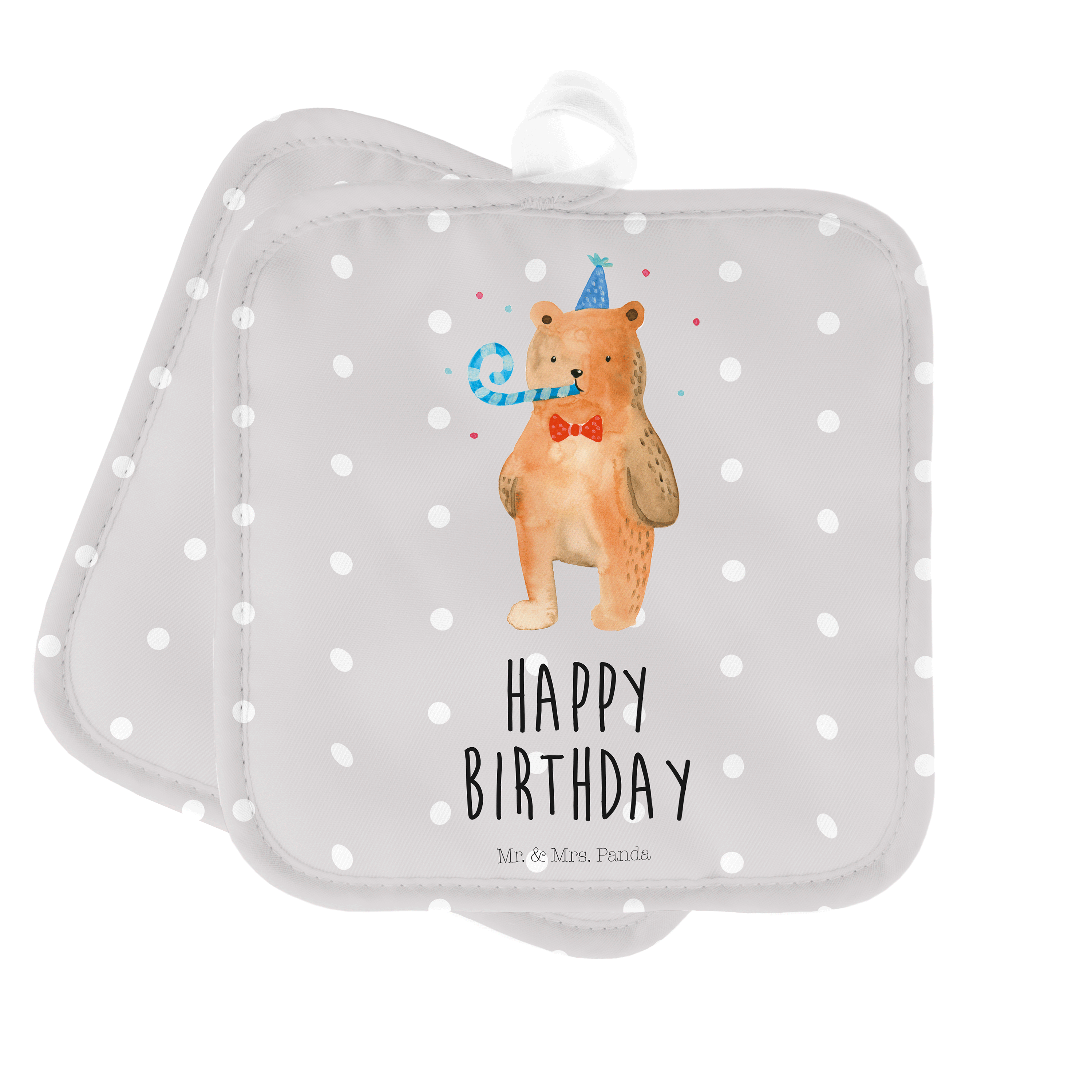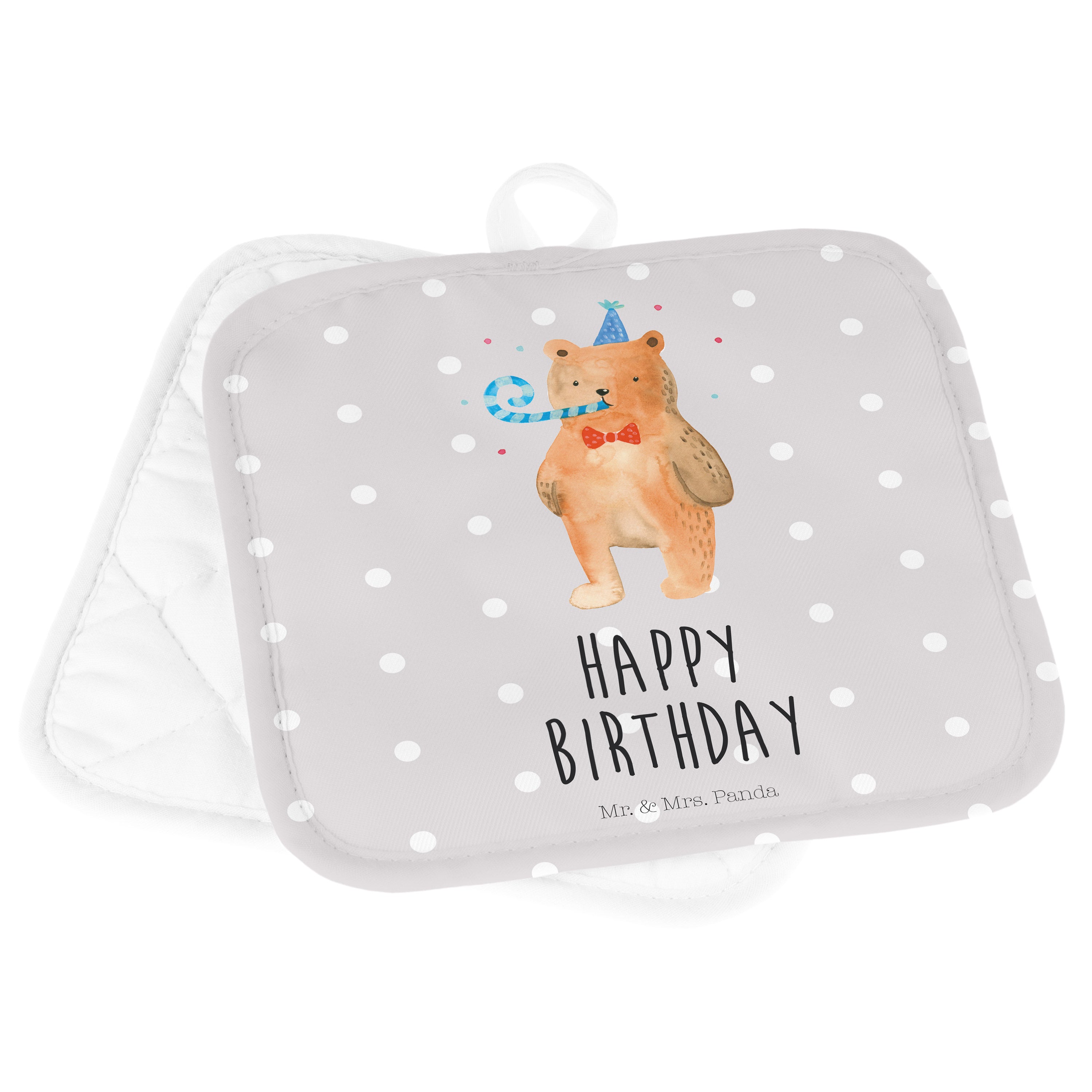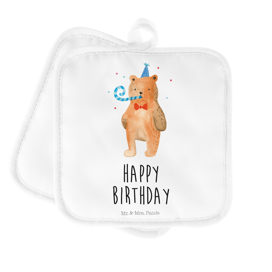 2er Set Topflappen Birthday Bär - mit Spruch - Weiß