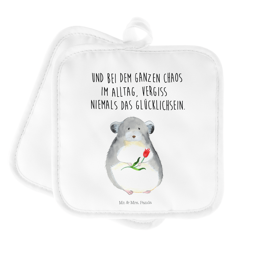2er Set Topflappen Chinchilla mit Blume - mit Spruch - Weiß