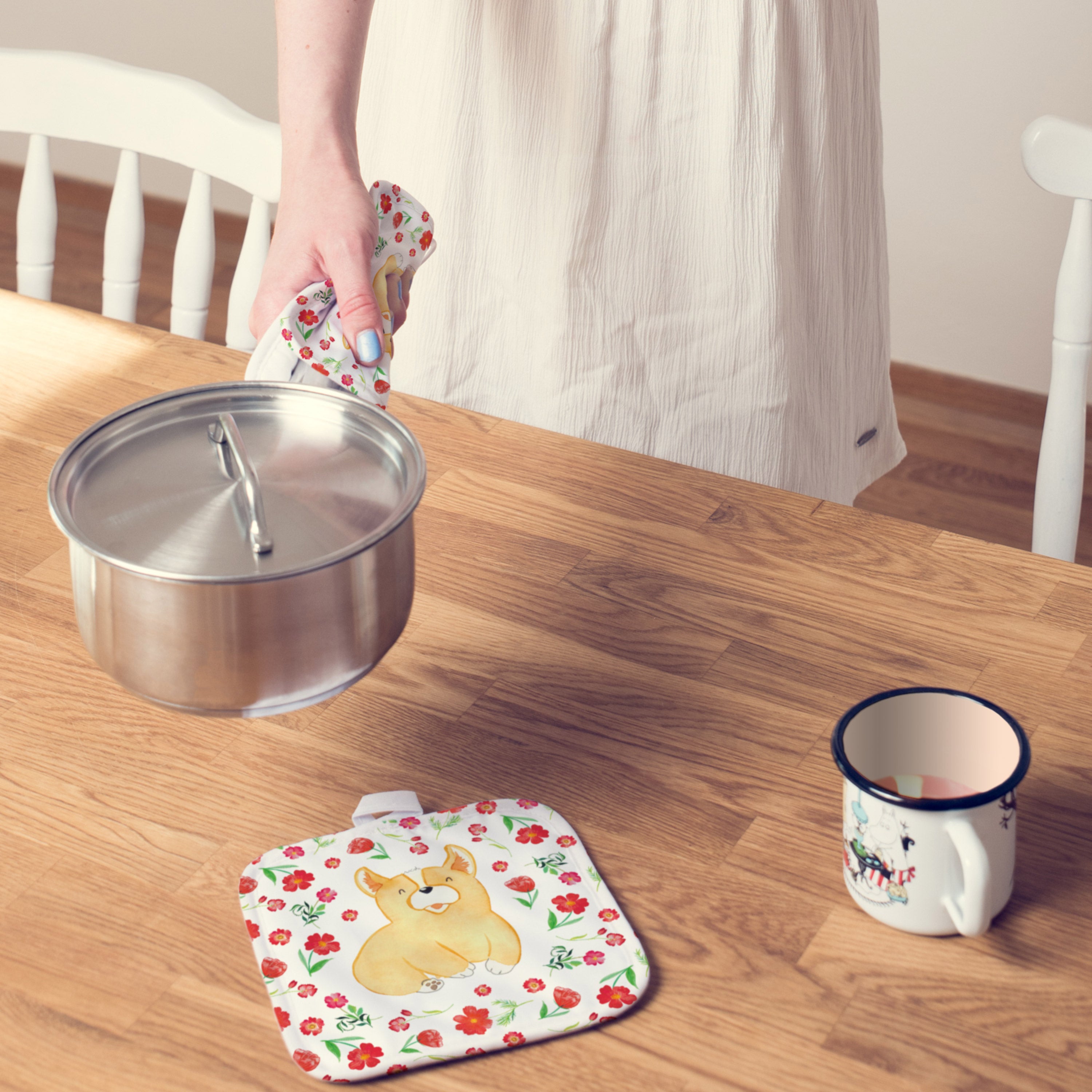 2er Set Topflappen  Corgie Muster Topflappen, Topfuntersetzer, Ofenhandschuh, Topflappen Set, Topflappen lustig, Topflappen mit Spruch, Hund, Hundemotiv, Haustier, Hunderasse, Tierliebhaber, Hundebesitzer, Sprüche, Corgie, Welsh Corgie Pembroke, britisch, Motivation, Spruch, Hundespruch, Lebensfreude