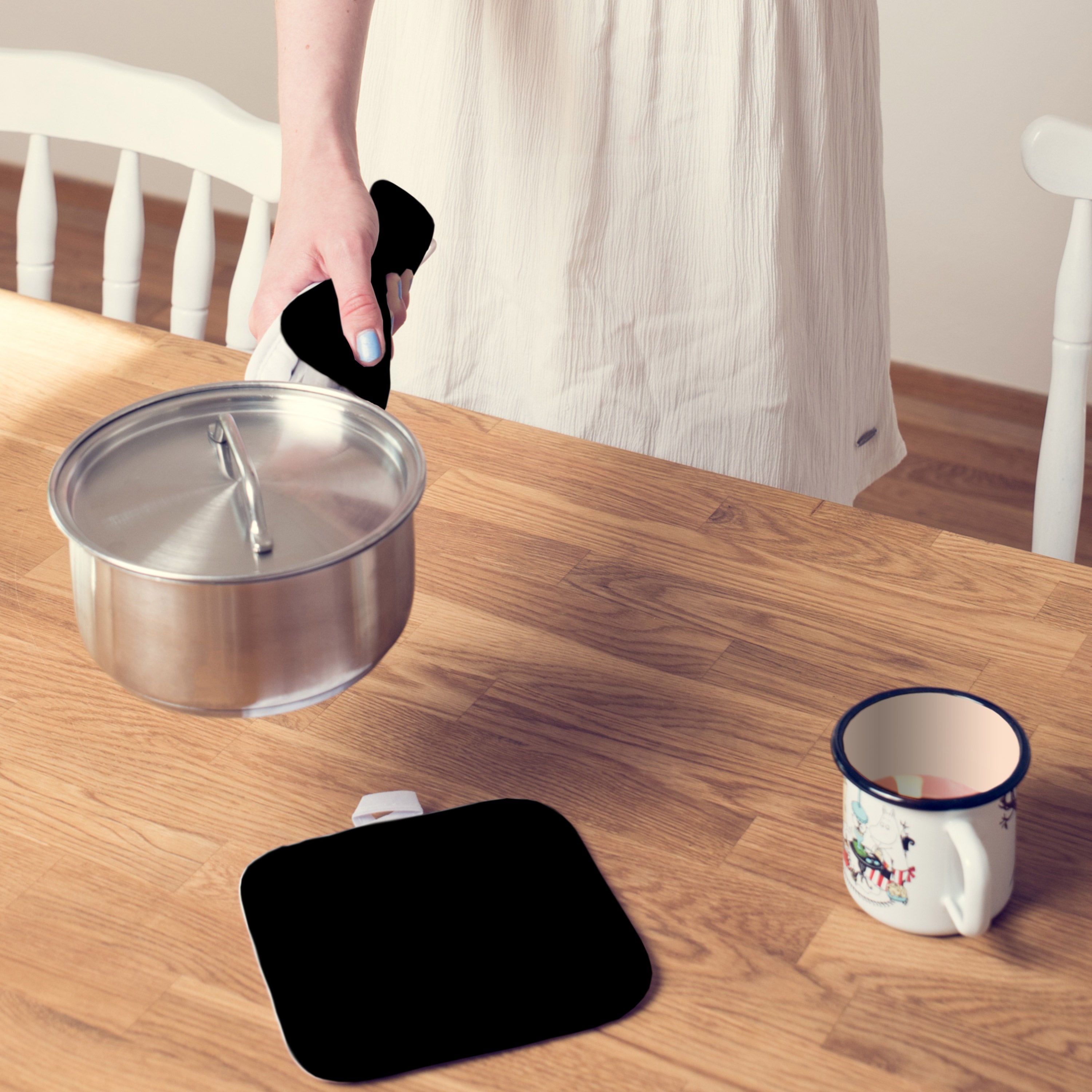 Diese wunderschönen Topflappen von Mr. & Mrs. Panda kommen im 2er Set. Sie wurden liebevoll von uns per Hand bedruckt und das Material ist äußerst strapazierfähig und langlebig. Die Mischung aus Baumwolle und Kunstfaser ist optimal für deine Topflappen, weil die Baumwolle gut isoliert und die Kunstfaser besonder dünn ist, sodass sie sehr hitzebeständig ist. Die Topflappen haben jeweils eine Schlaufe mit der du sie gut aufhängen kannst. So hast du die perfekte Dekoration in deiner Küche!