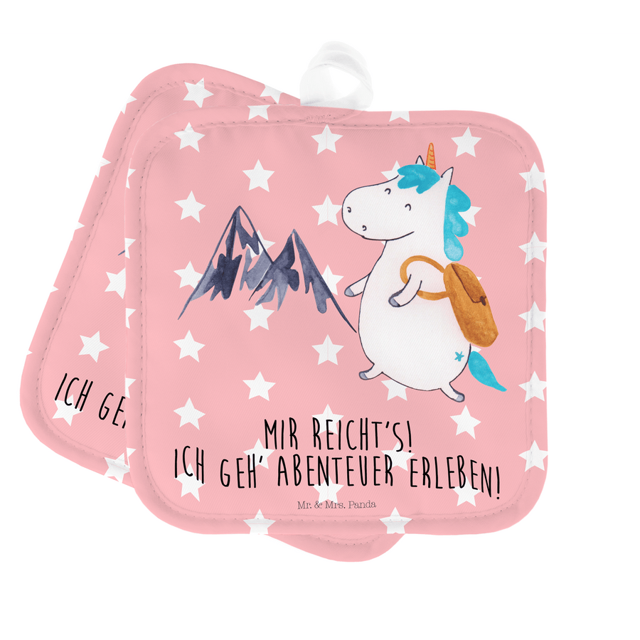 2er Set Topflappen Einhorn Bergsteiger - mit Spruch - Rot Pastell