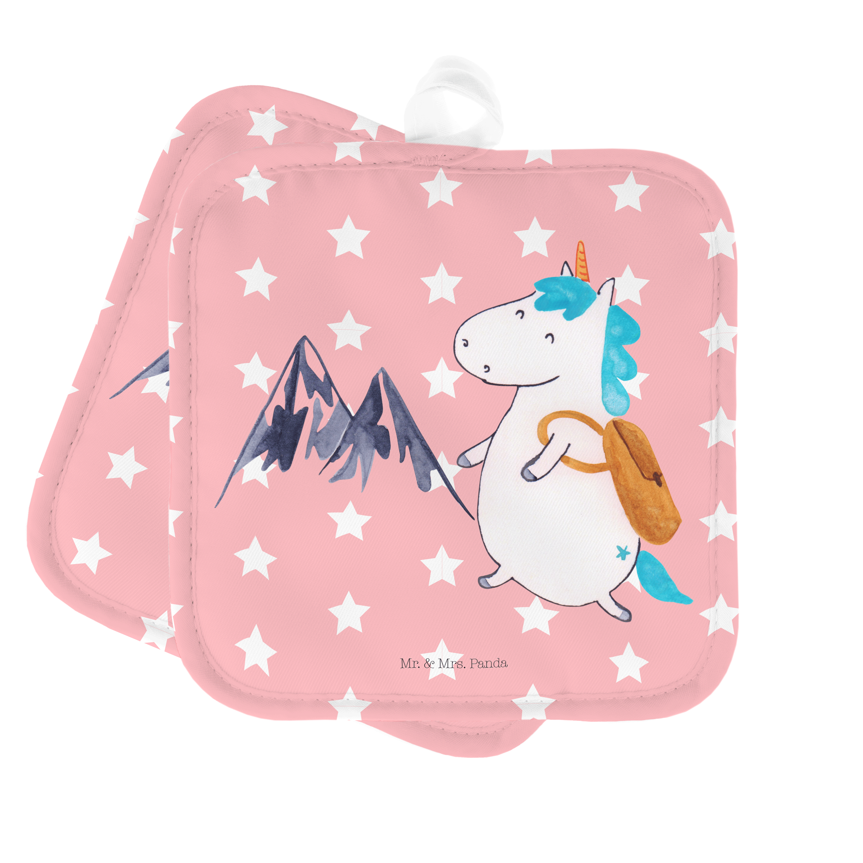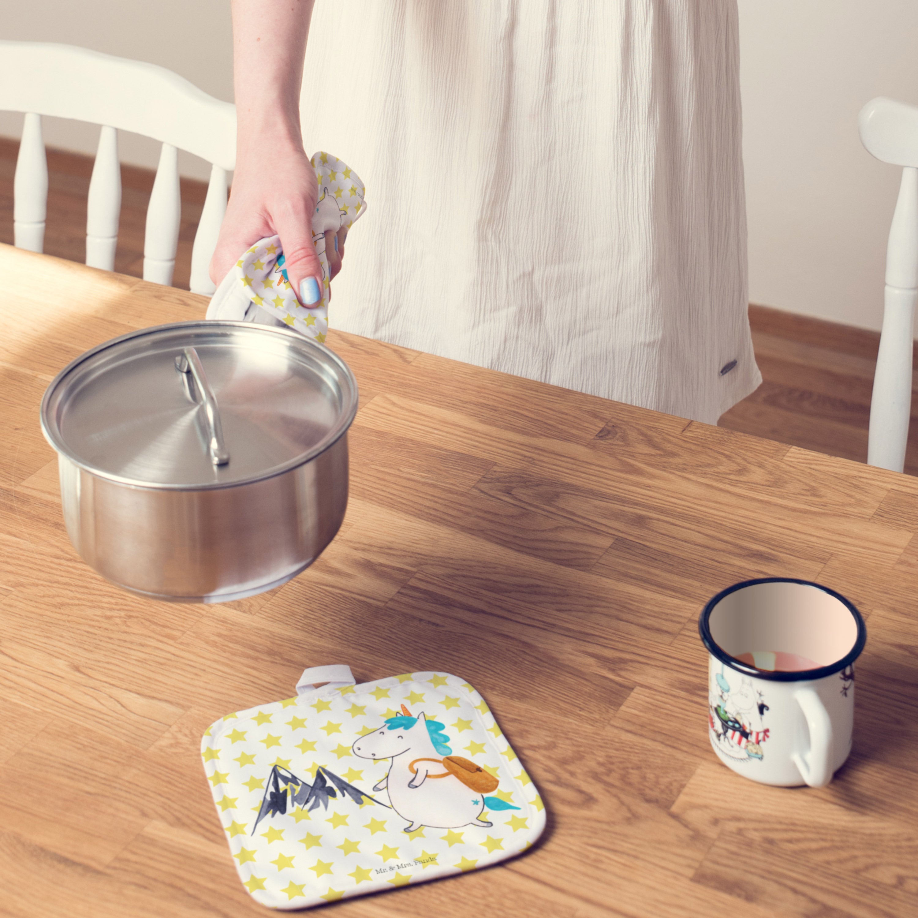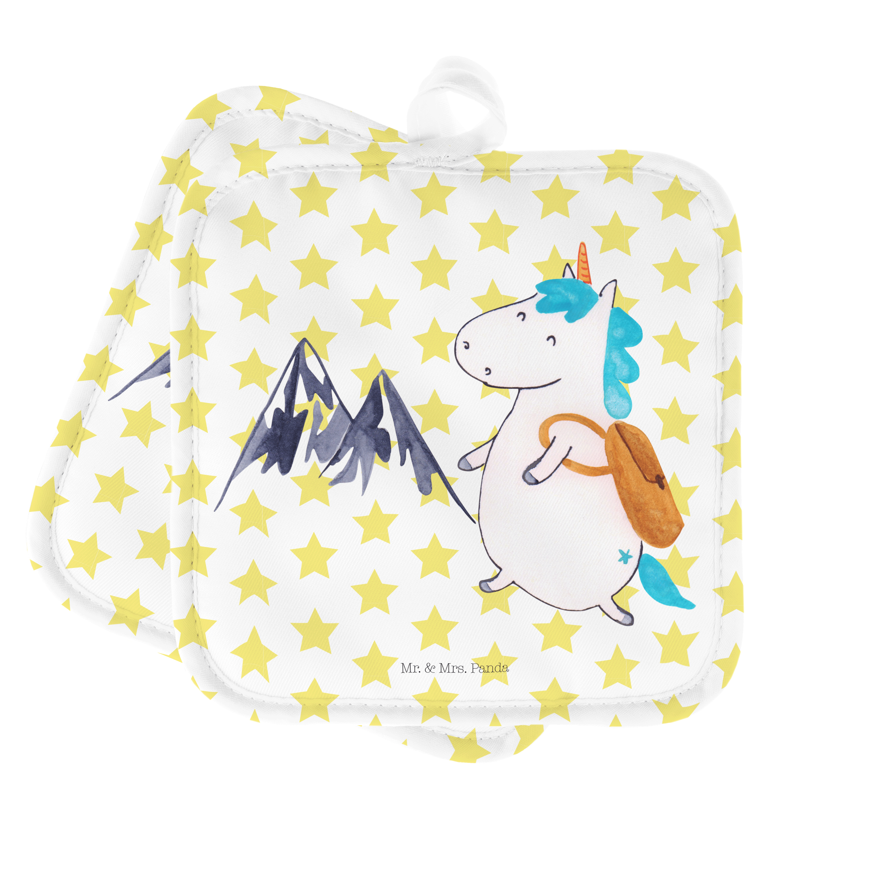 2er Set Topflappen Einhorn Bergsteiger - mit Spruch - Weiß