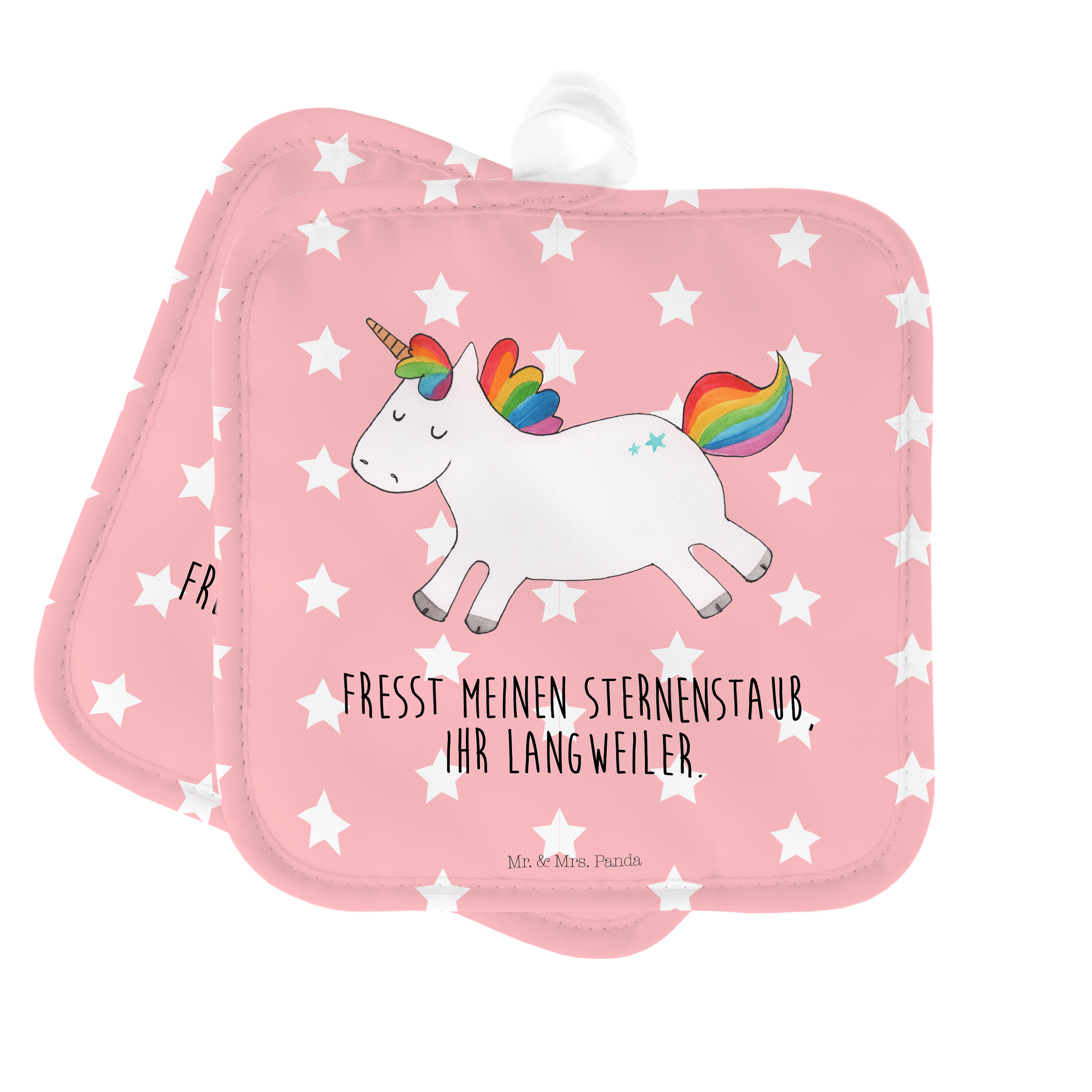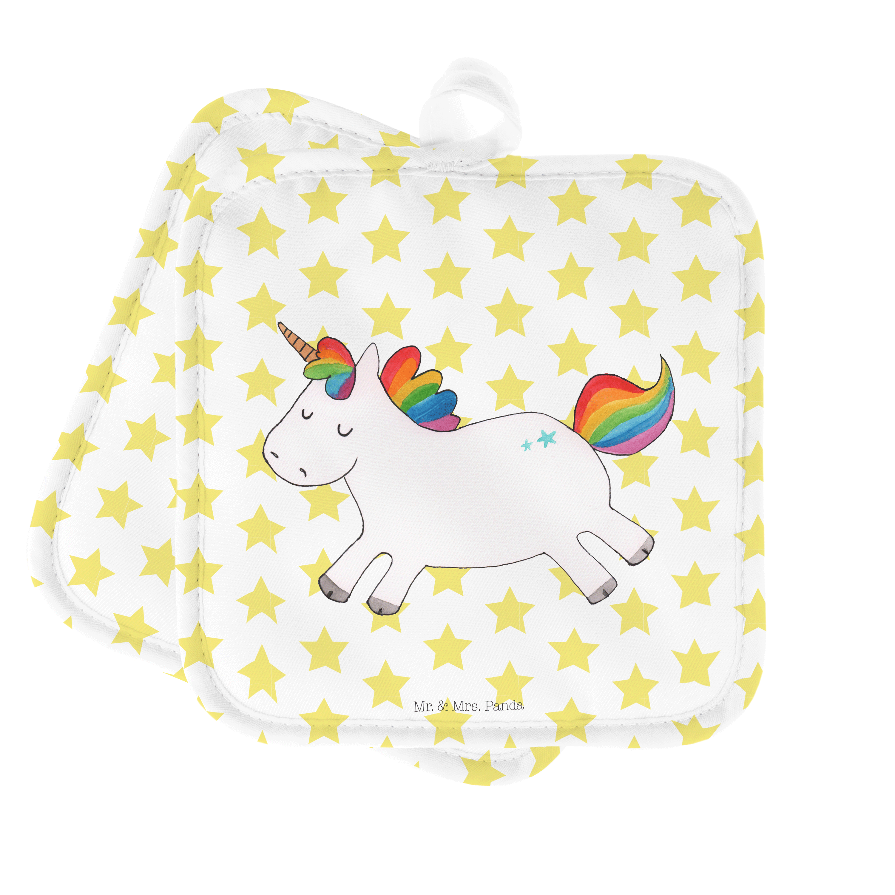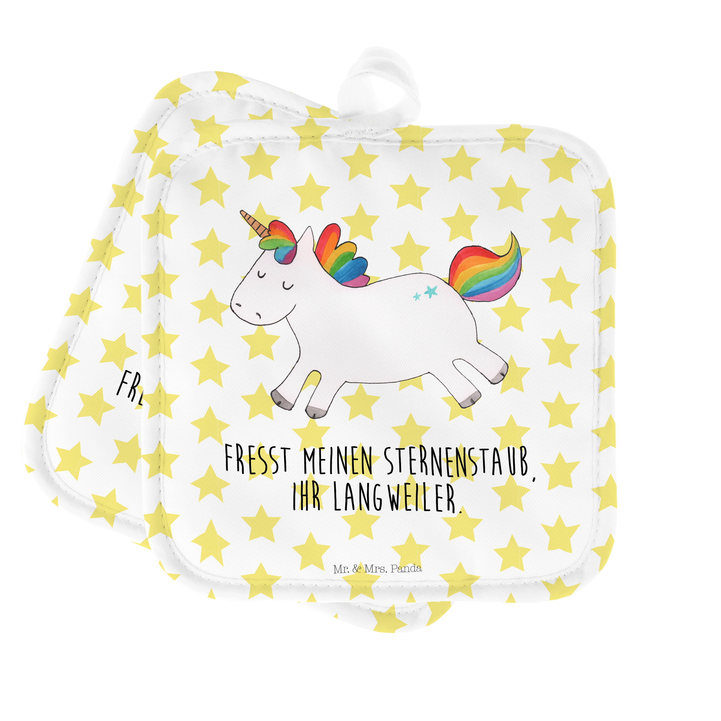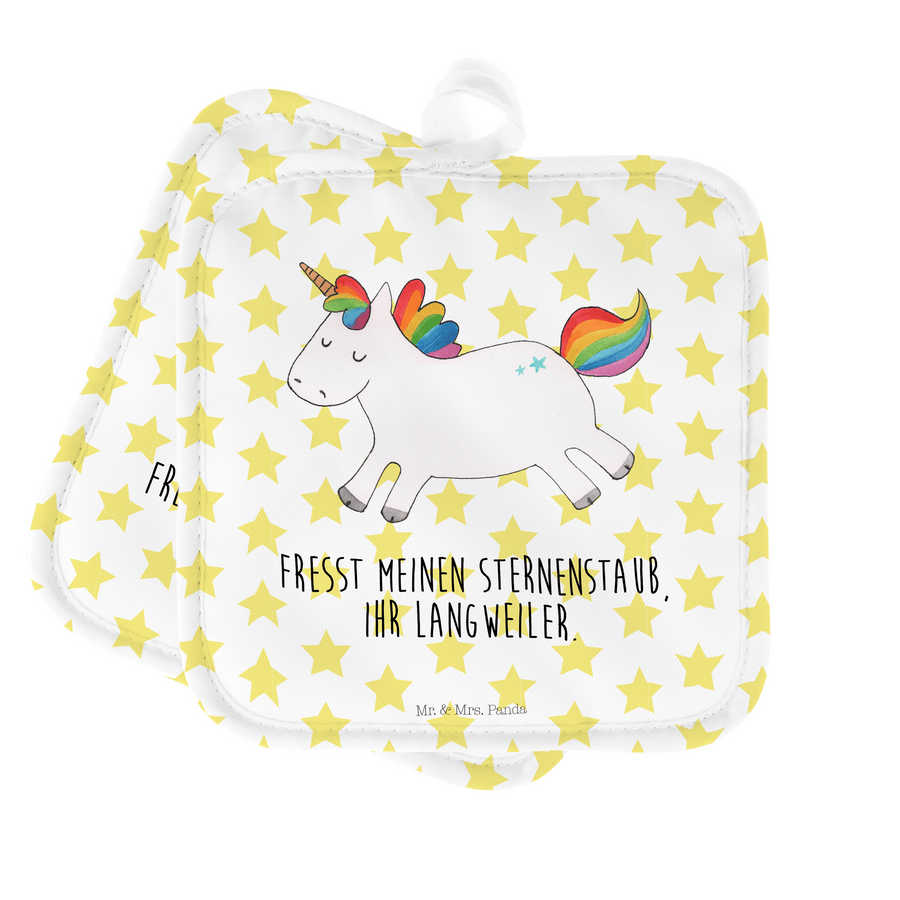2er Set Topflappen Einhorn Happy - mit Spruch - Weiß
