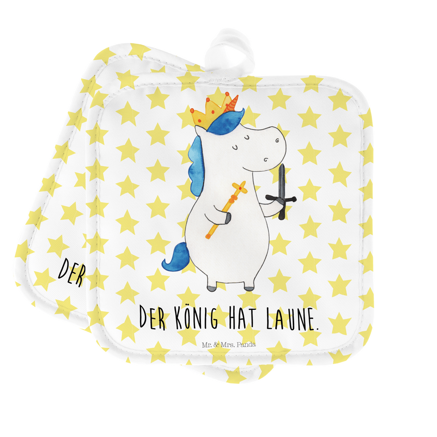 2er Set Topflappen Einhorn König mit Schwert - mit Spruch - Weiß