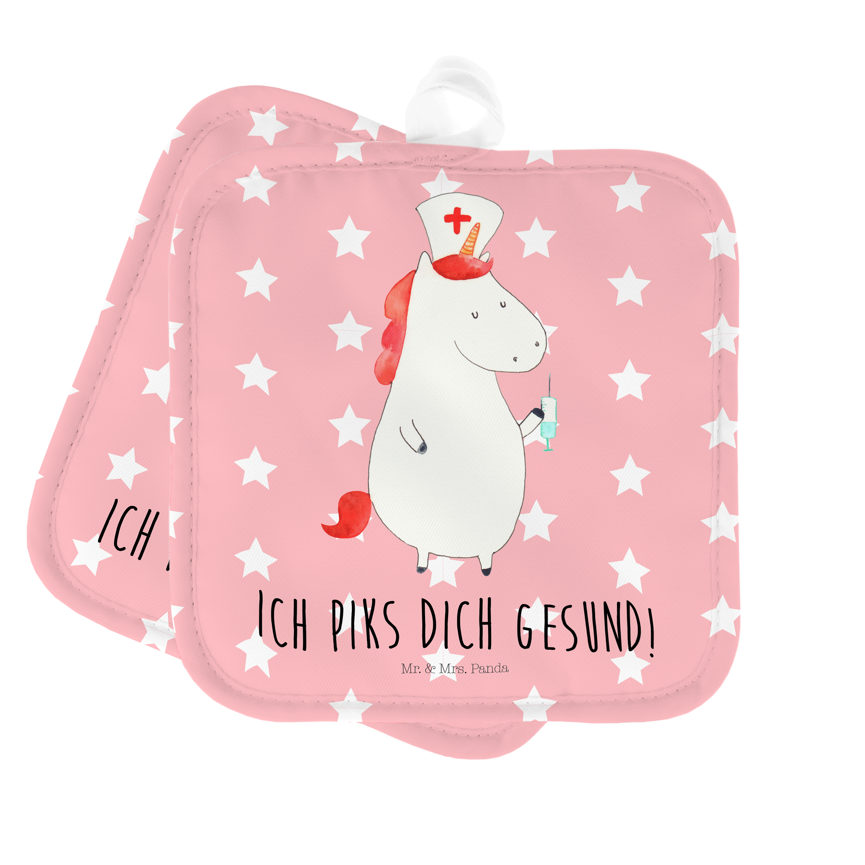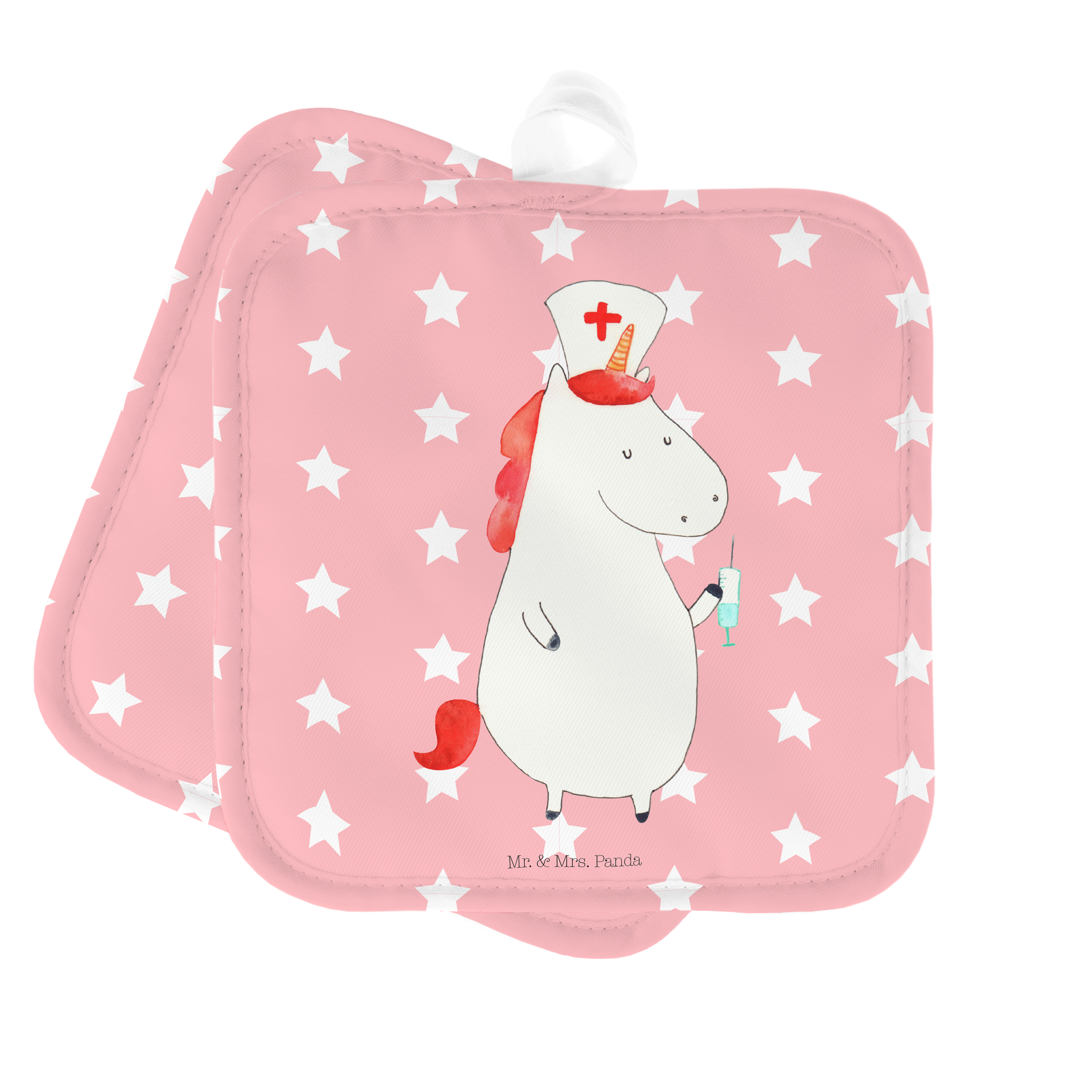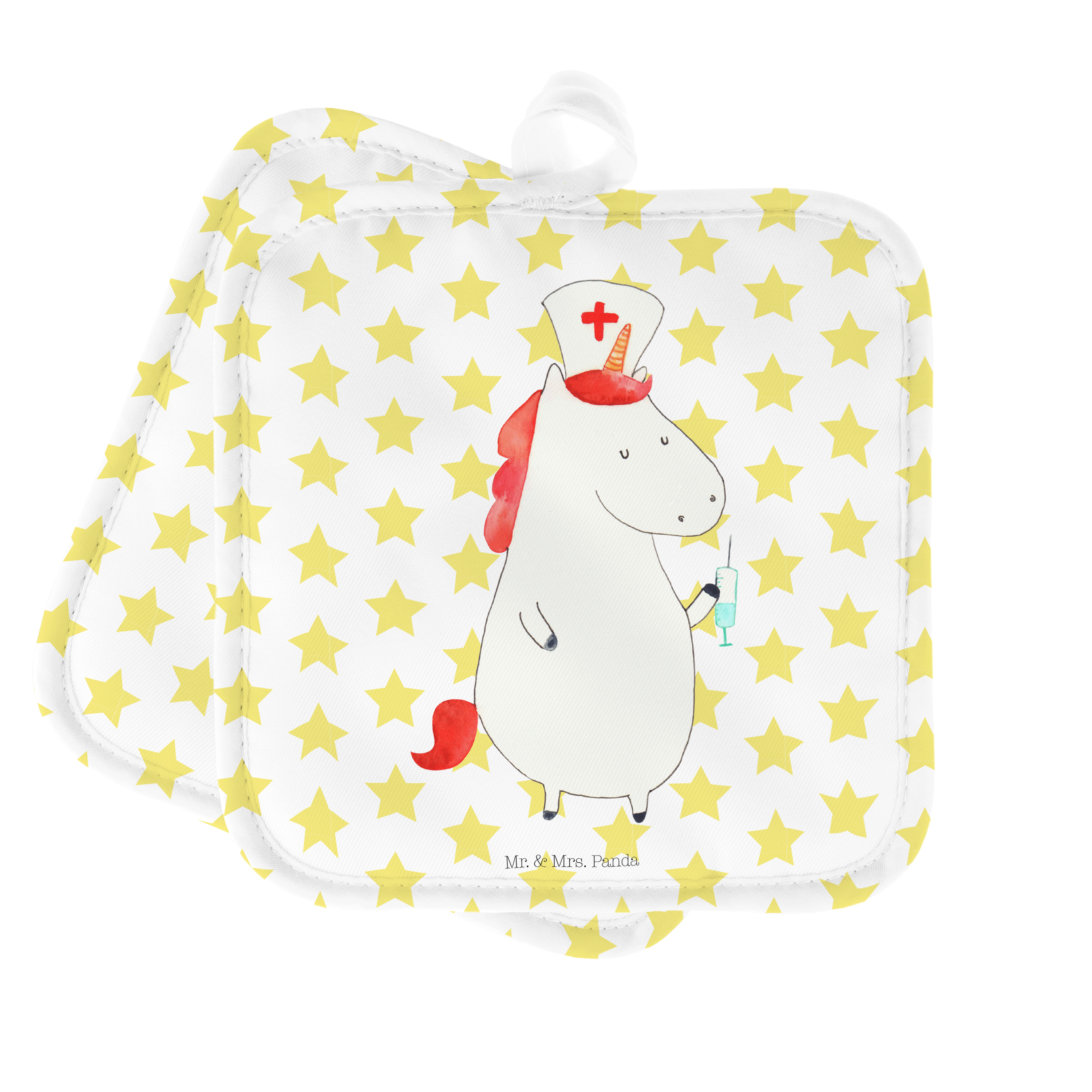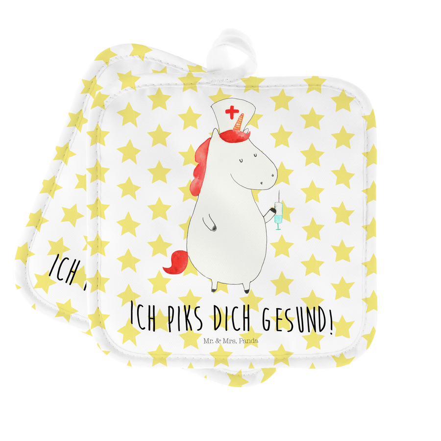 2er Set Topflappen Einhorn Krankenschwester - mit Spruch - Weiß
