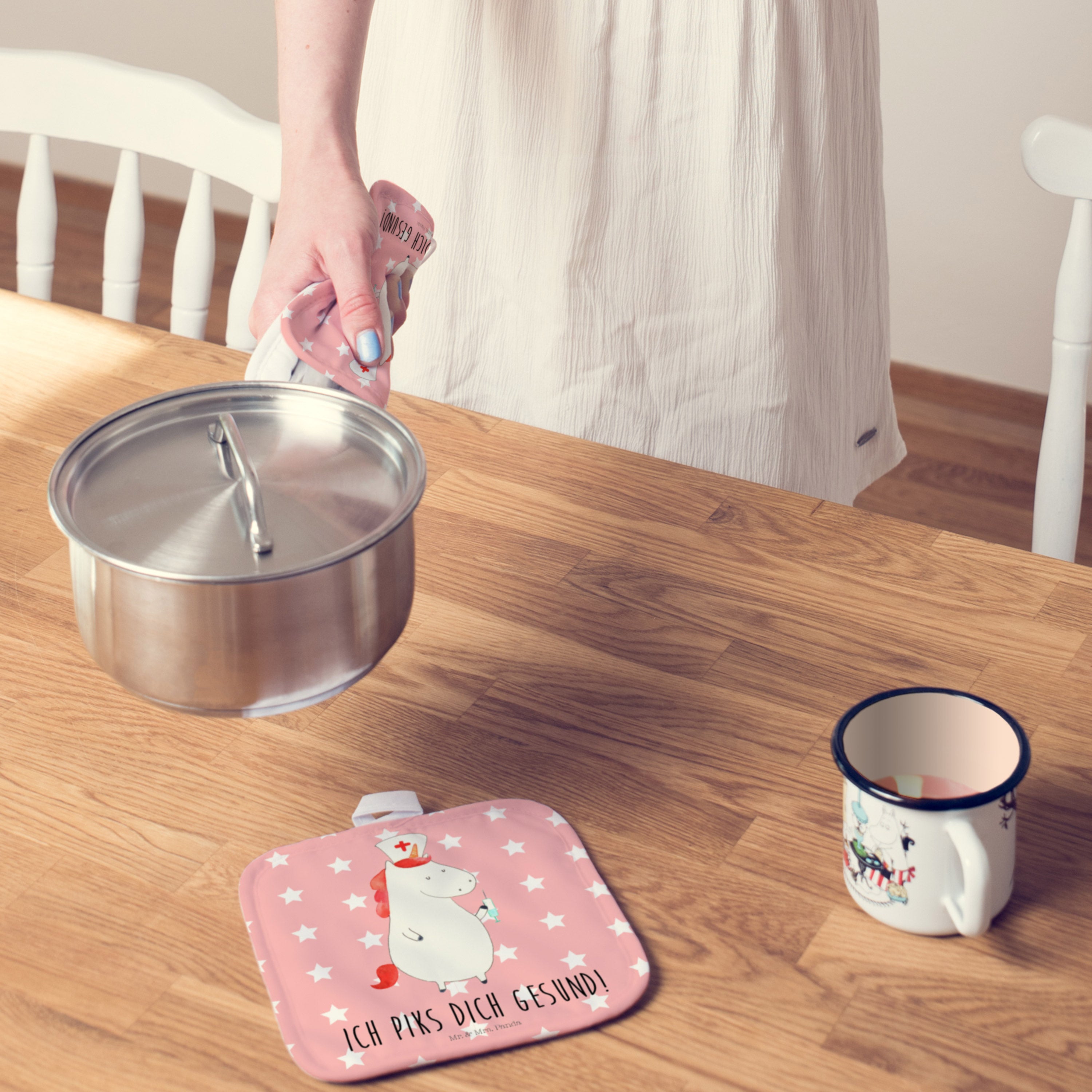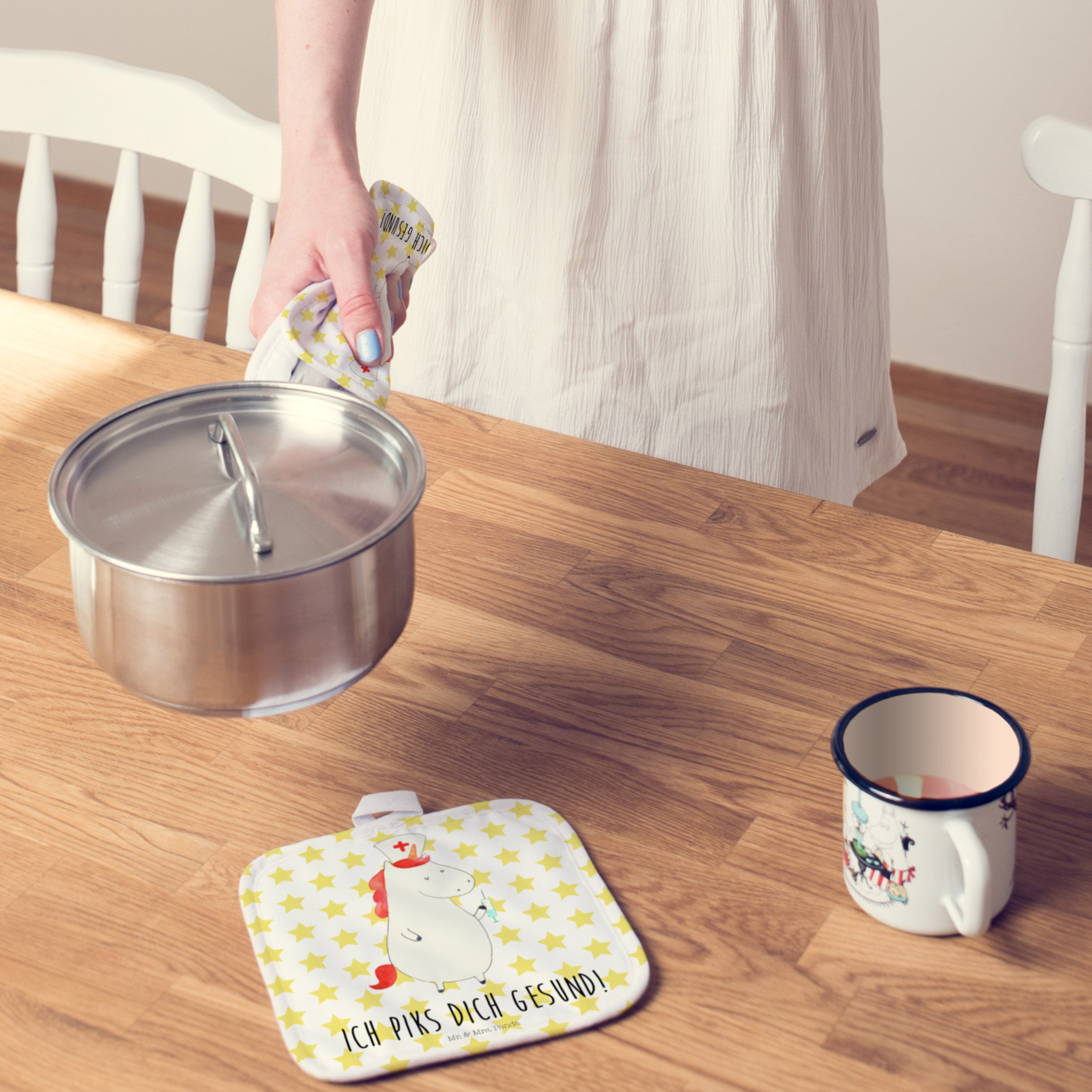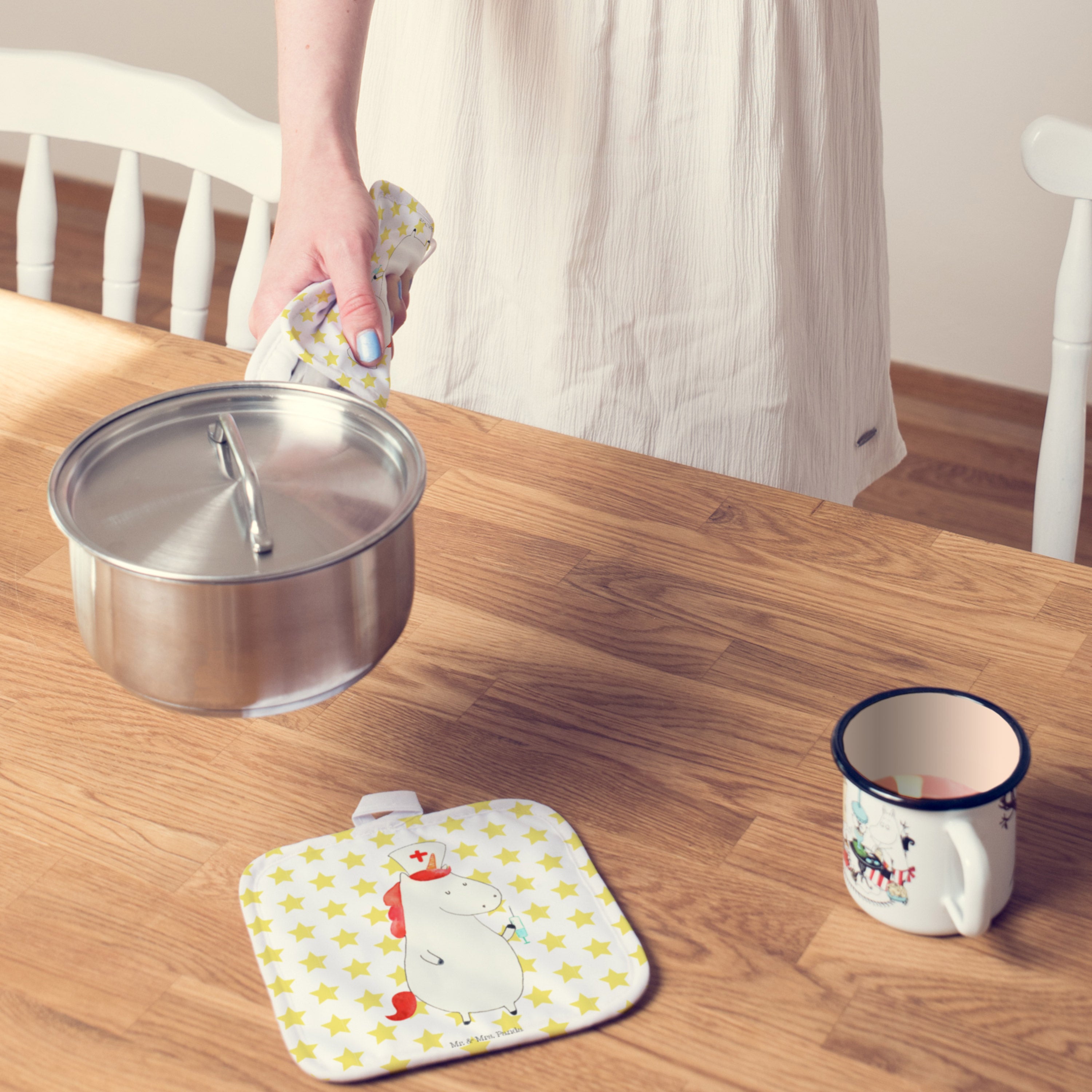 2er Set Topflappen Einhorn Krankenschwester - mit Spruch - Weiß