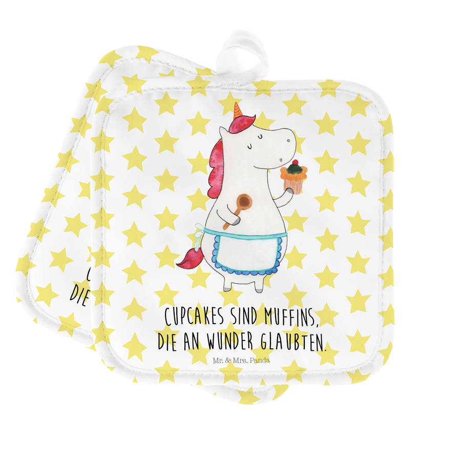 2er Set Topflappen Einhorn Küchenfee - mit Spruch - Weiß