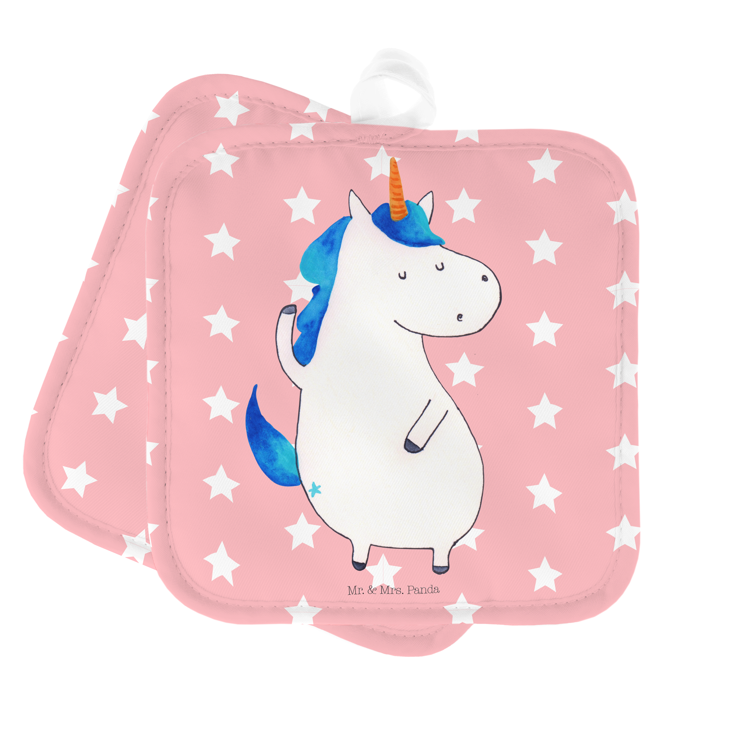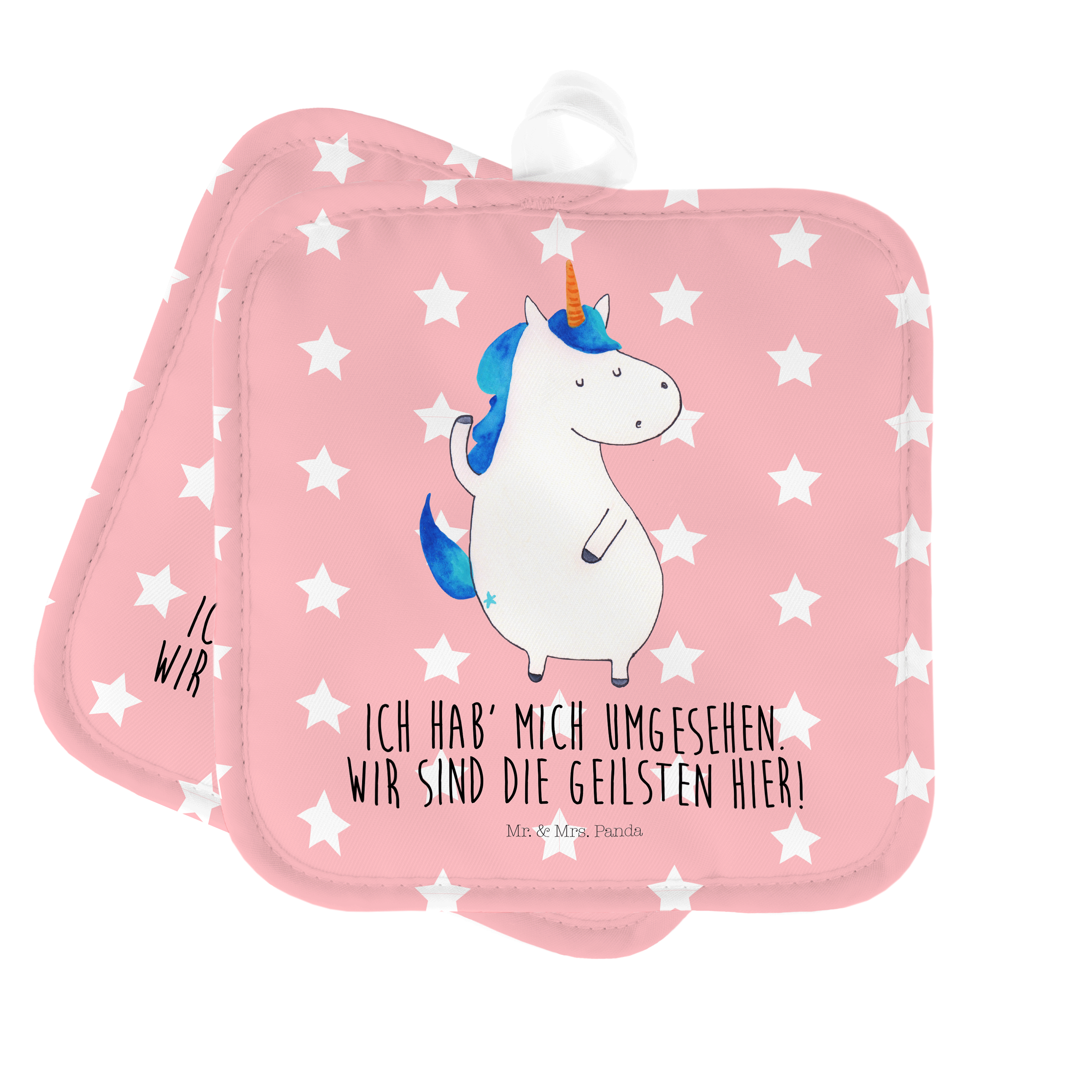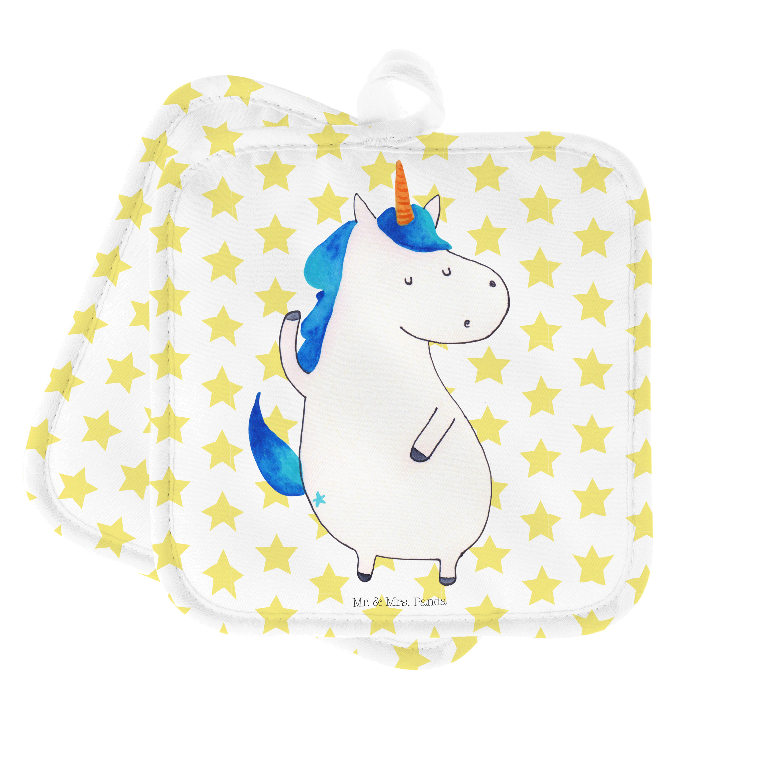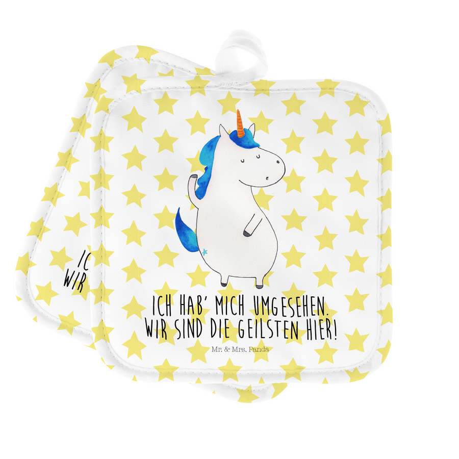 2er Set Topflappen Einhorn Mann - mit Spruch - Weiß