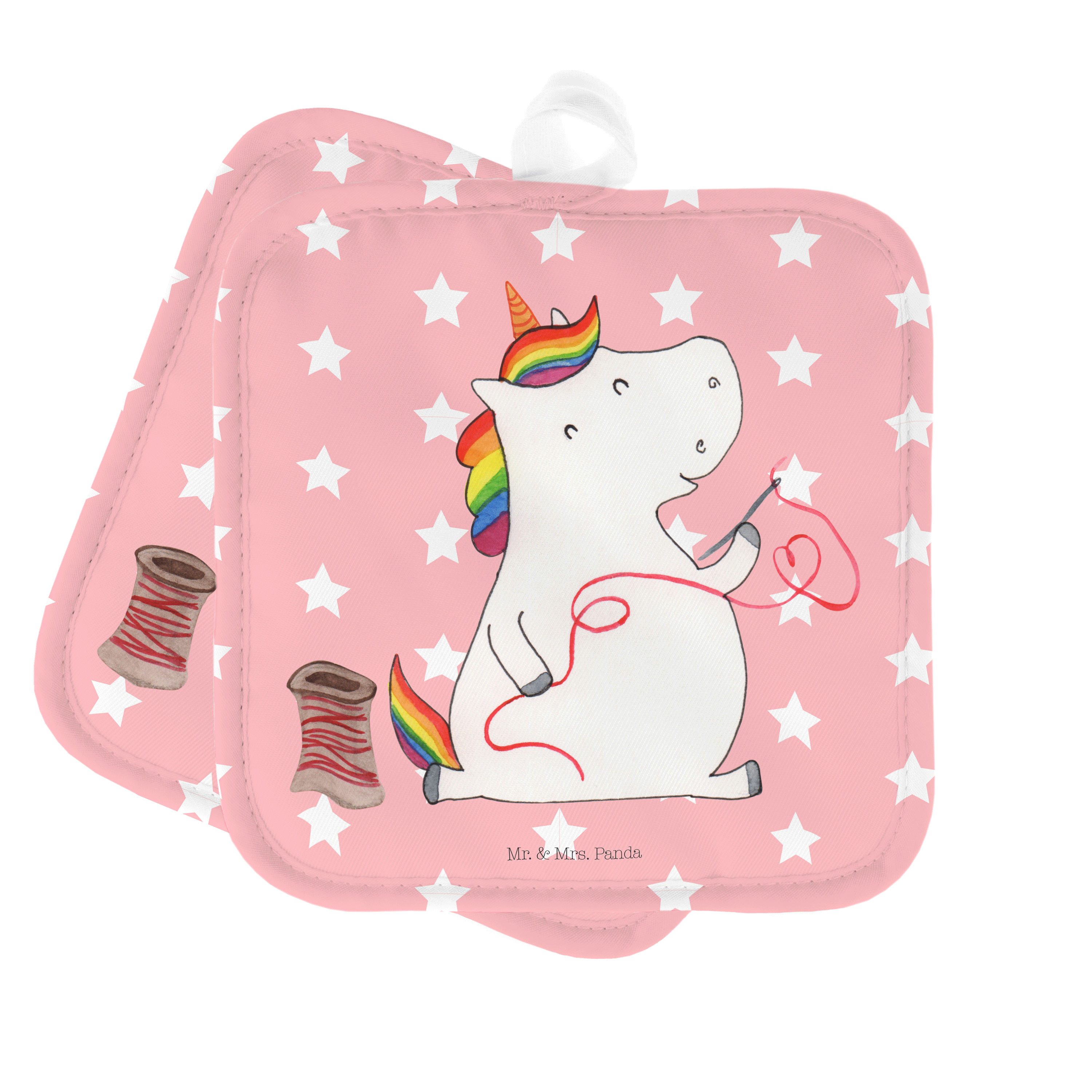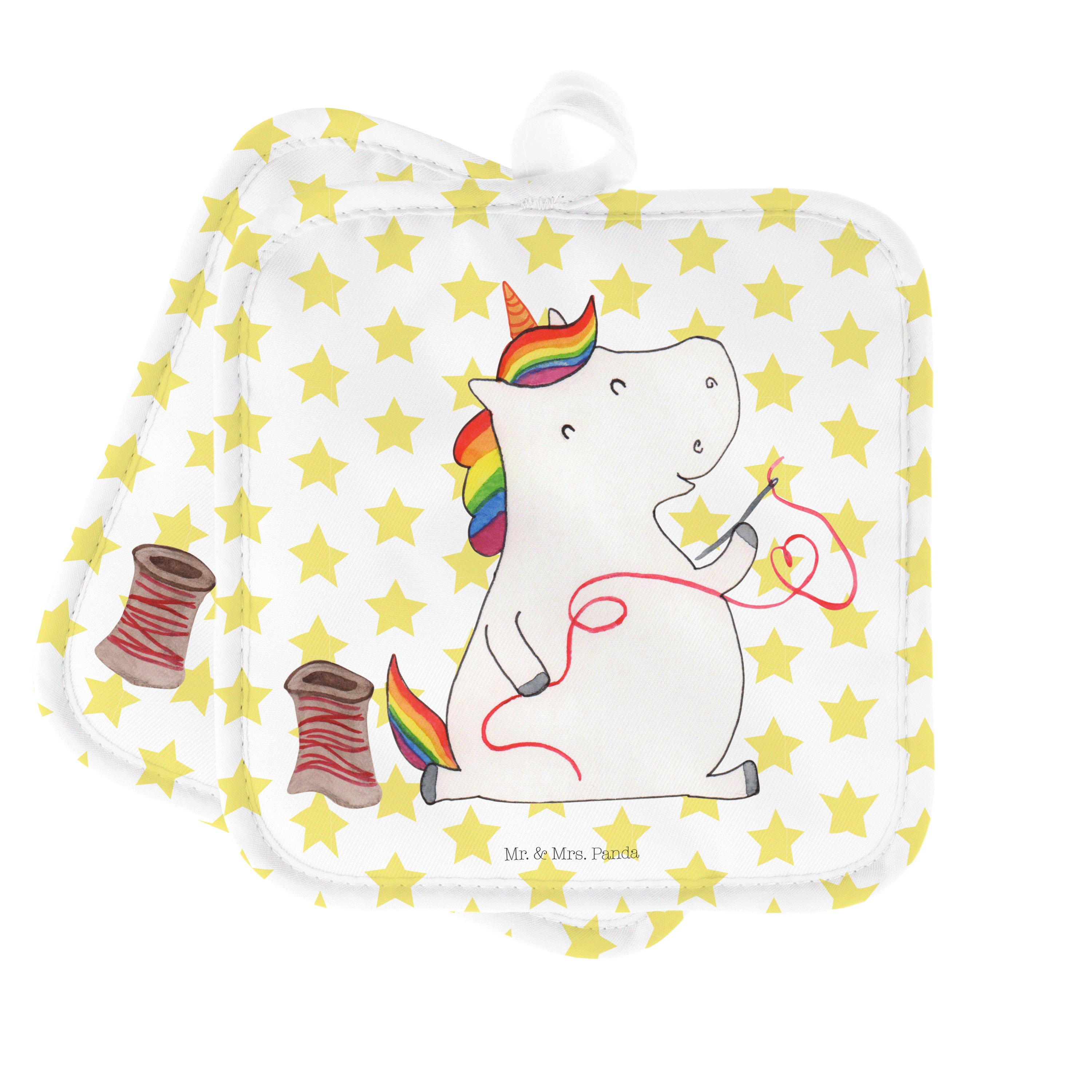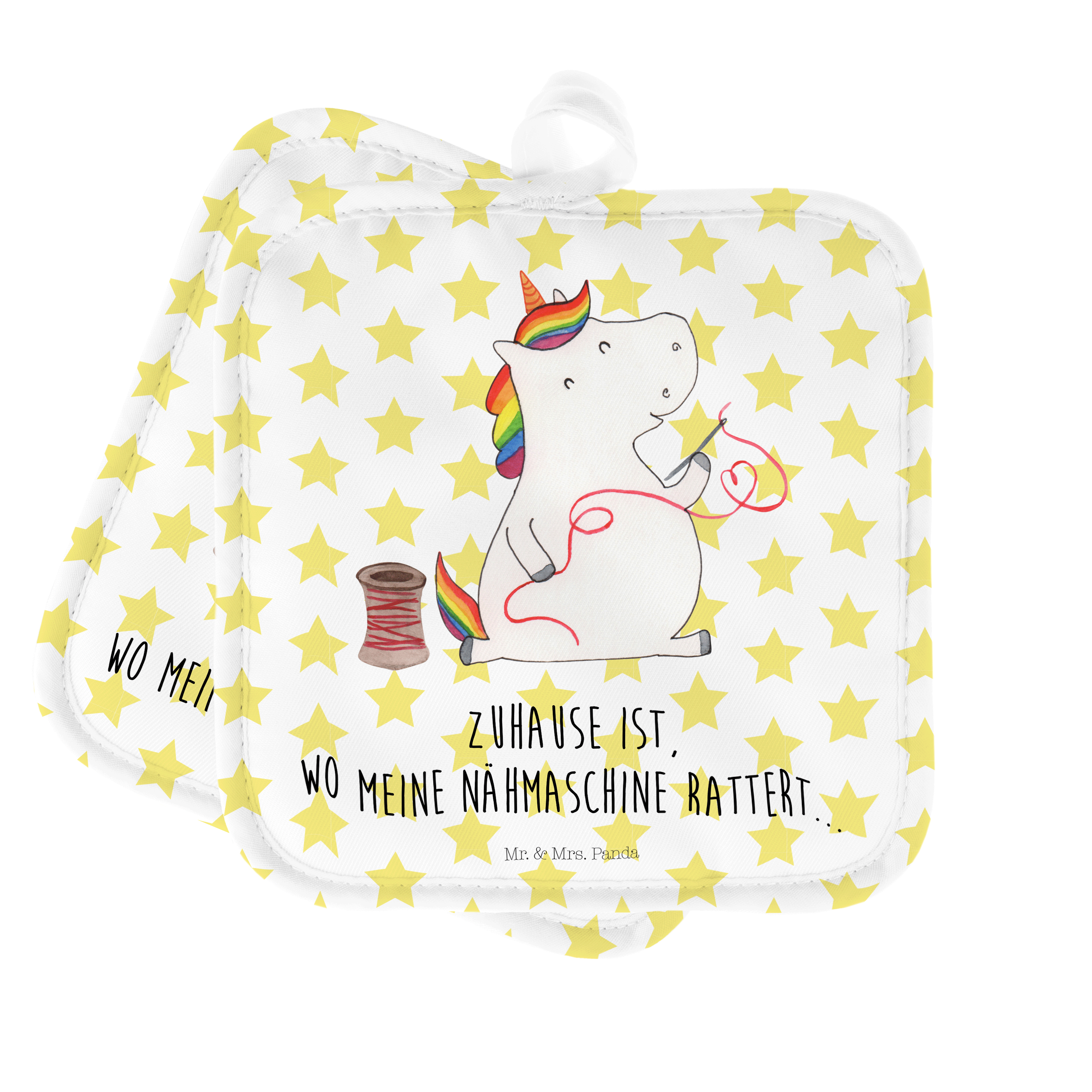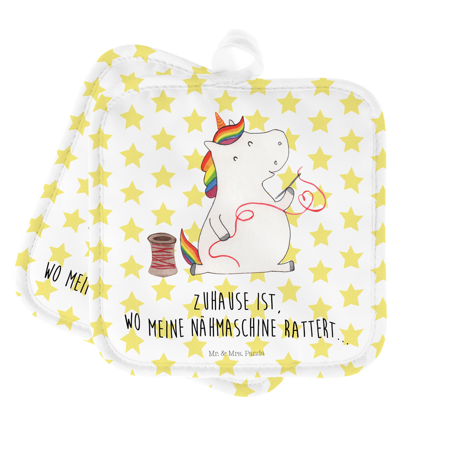 2er Set Topflappen Einhorn Näherin - mit Spruch - Weiß