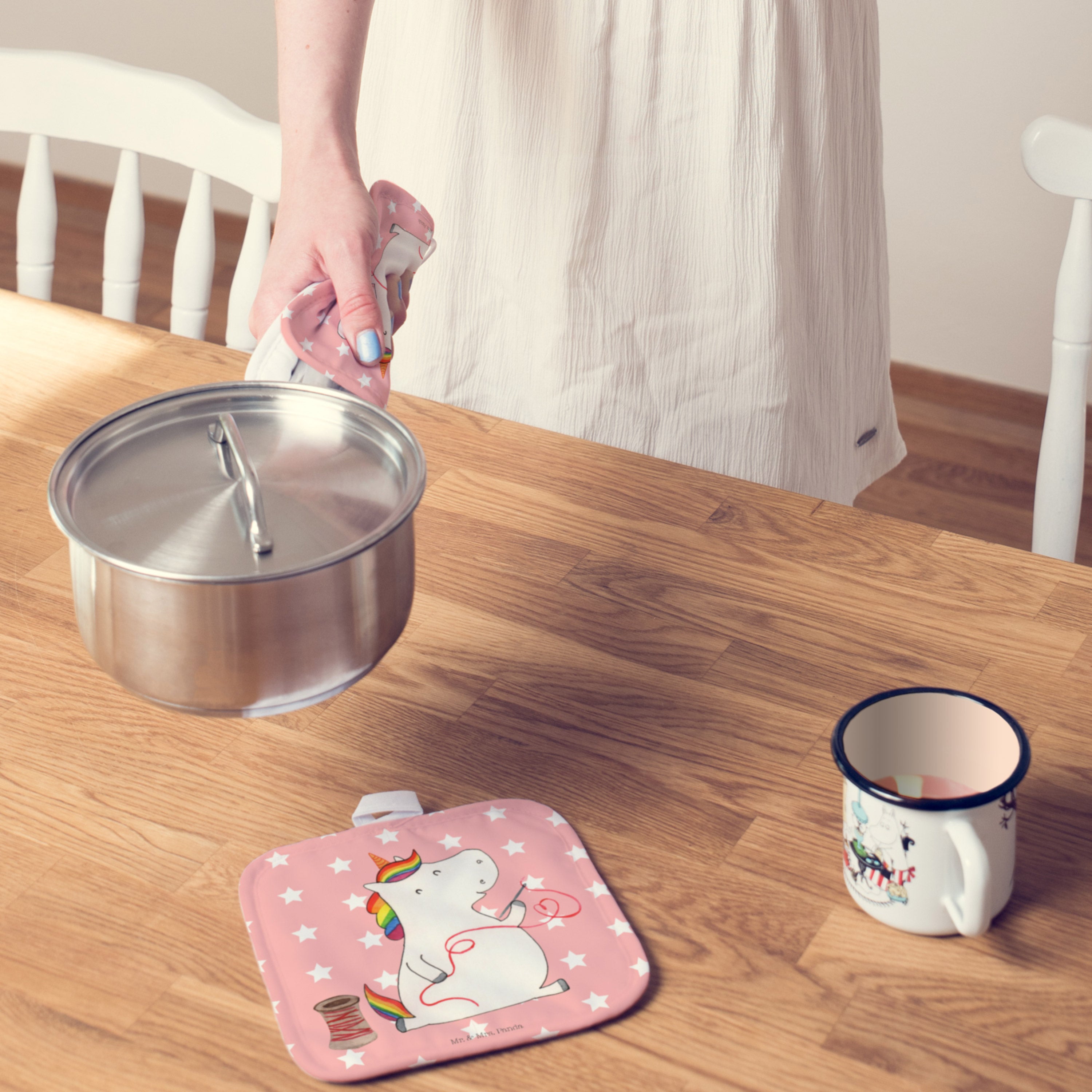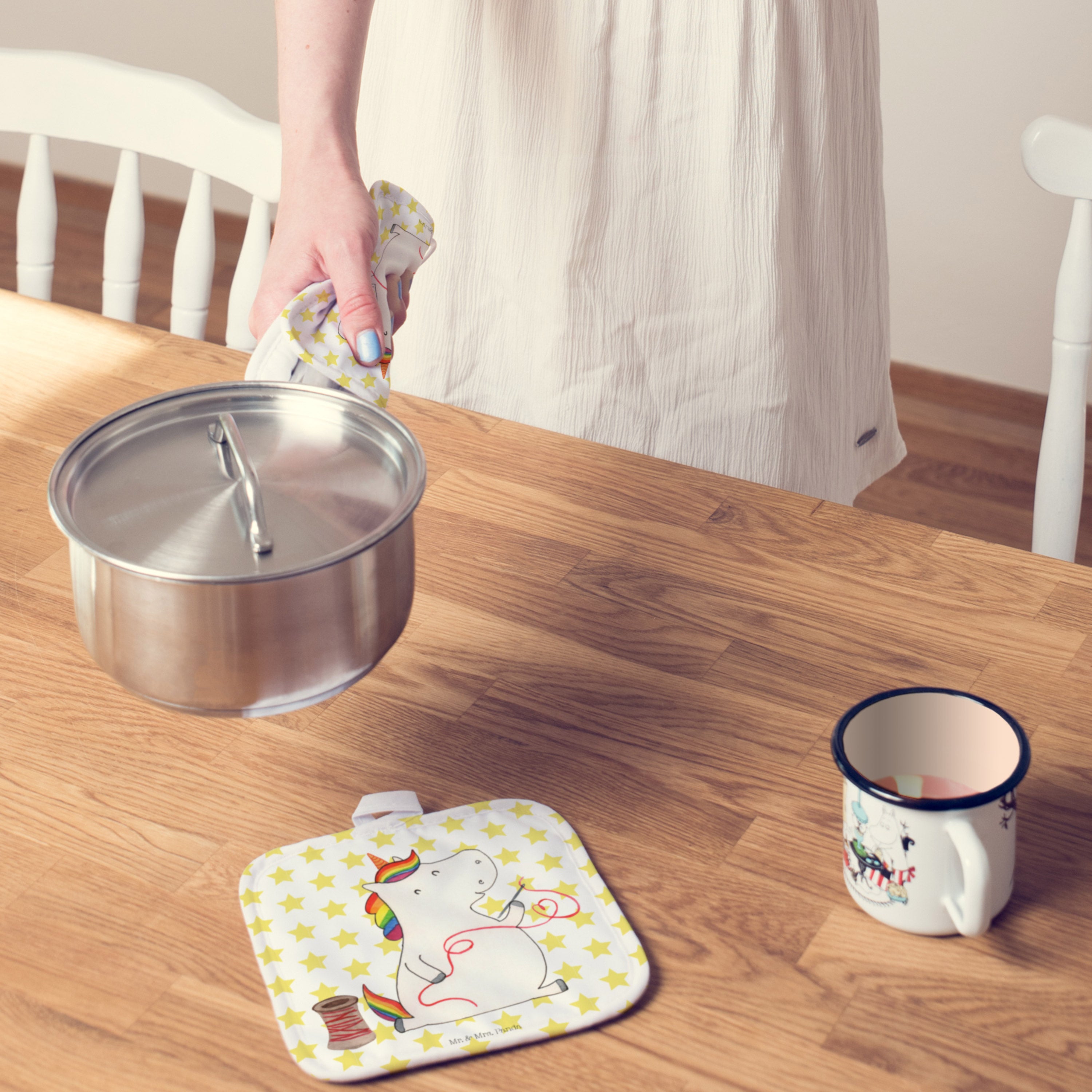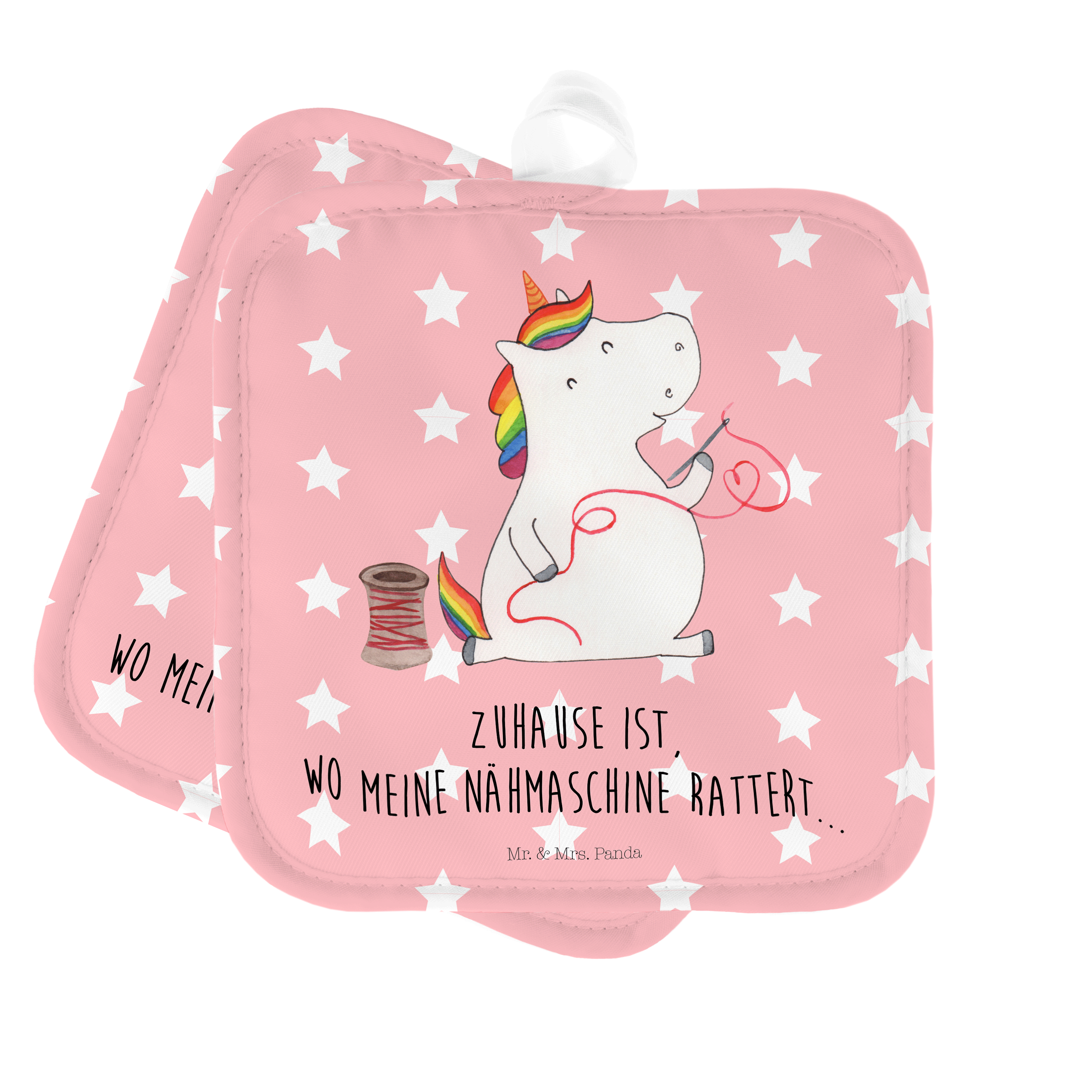 2er Set Topflappen Einhorn Näherin - mit Spruch - Weiß