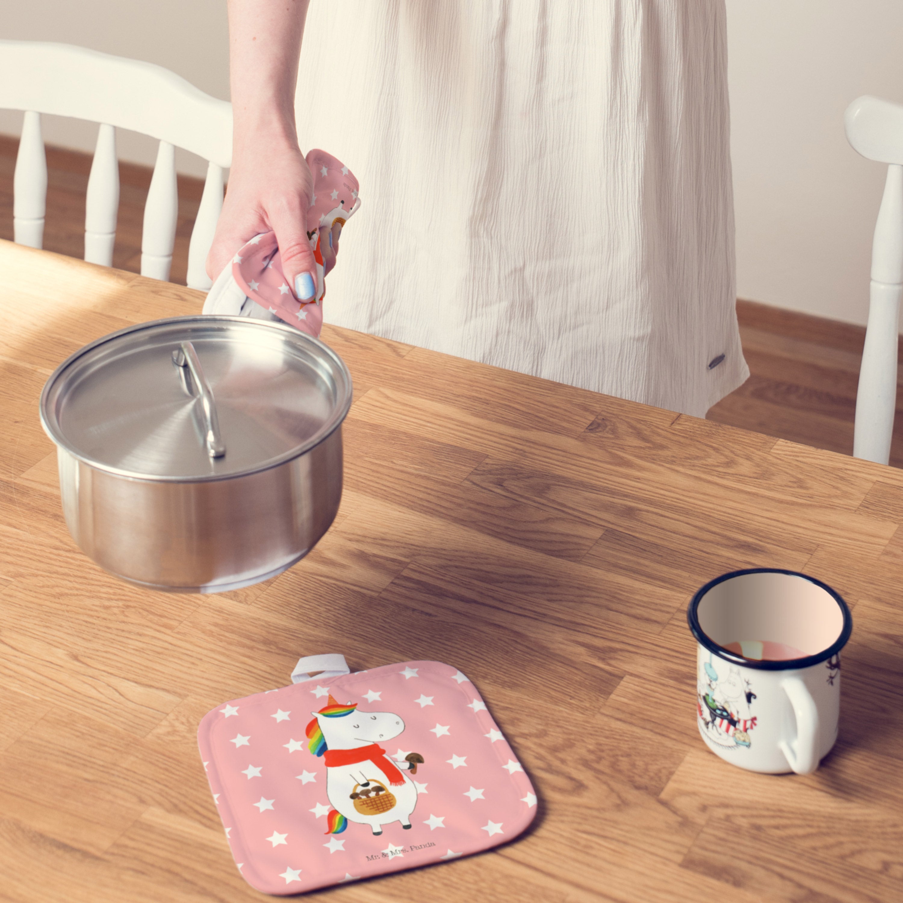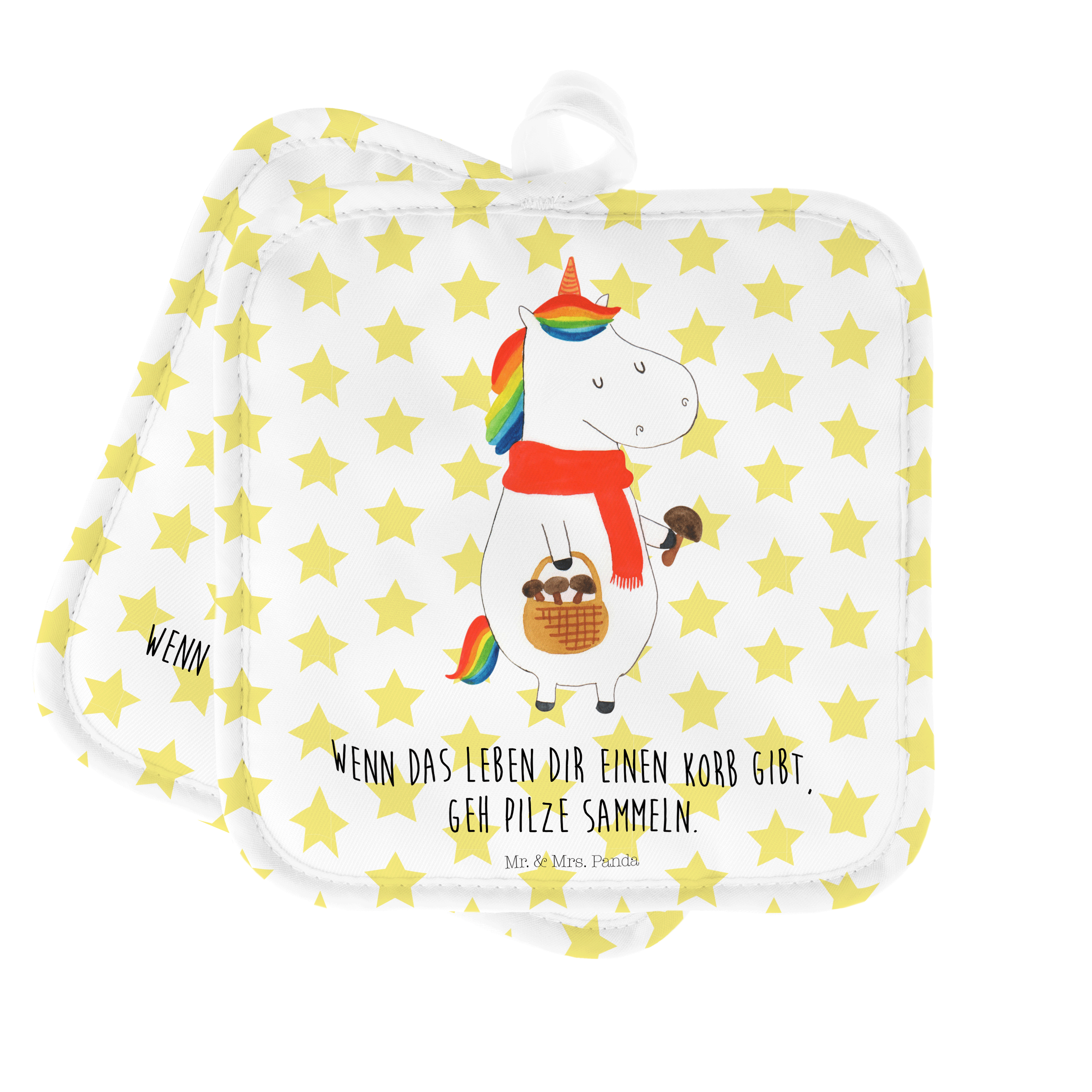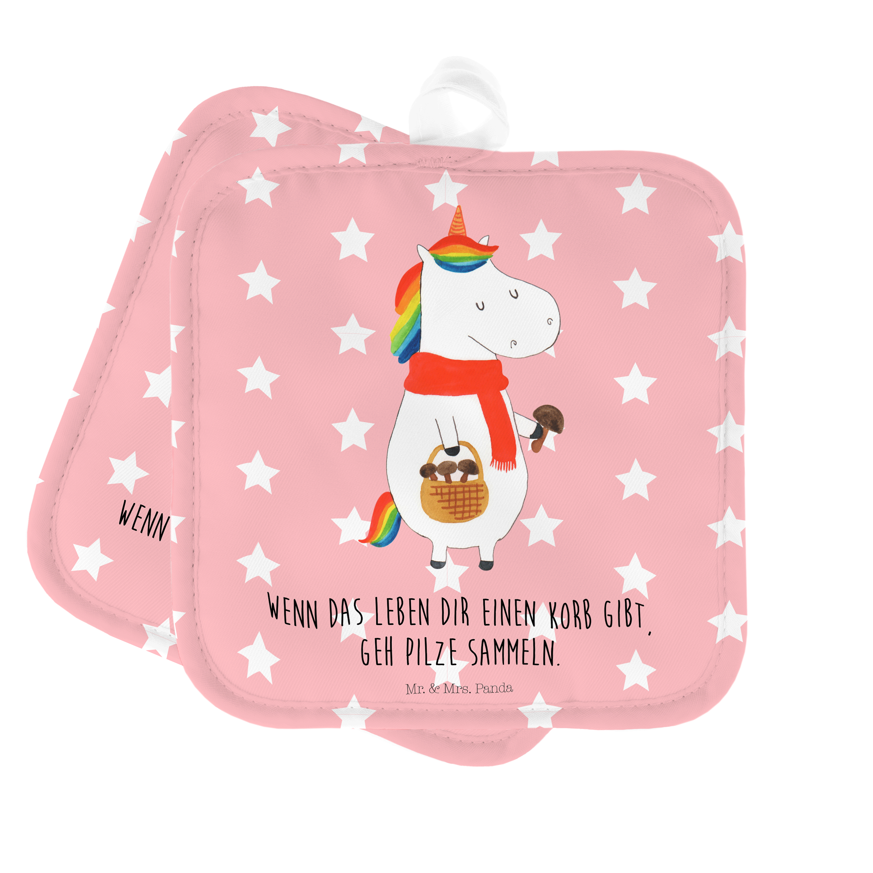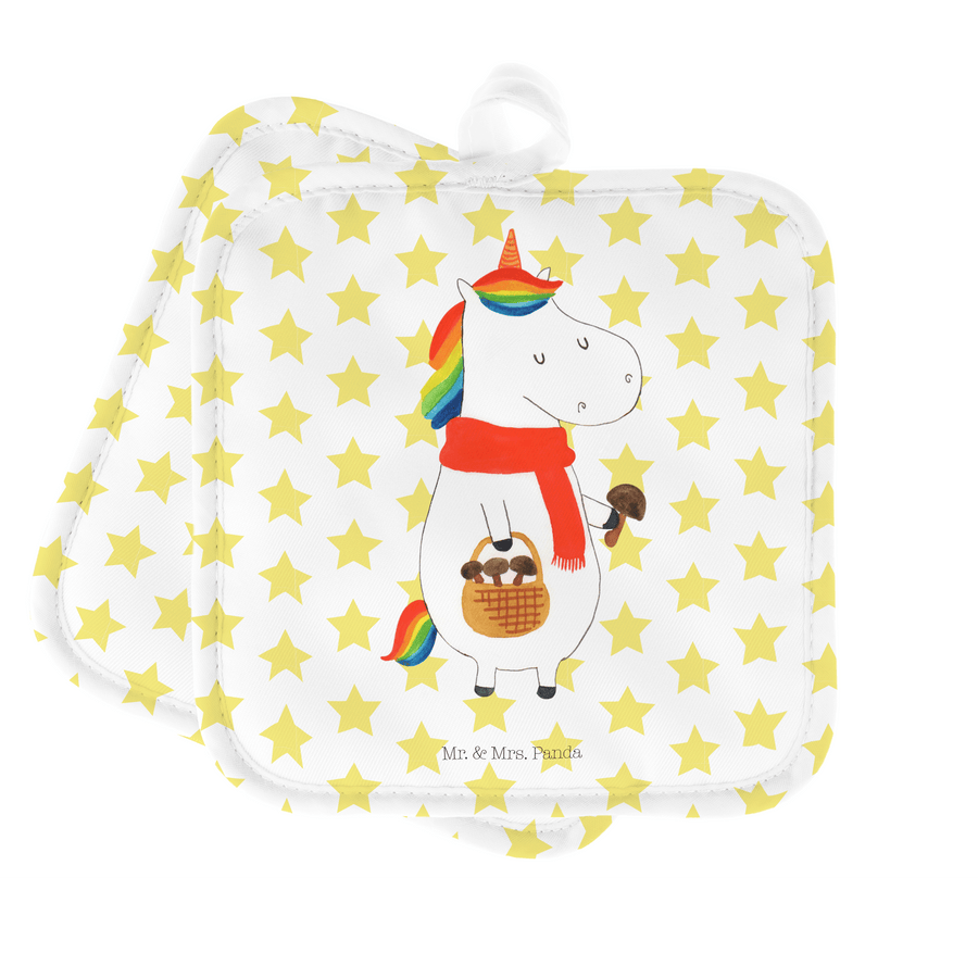 2er Set Topflappen Einhorn Pilz - ohne Spruch - Weiß