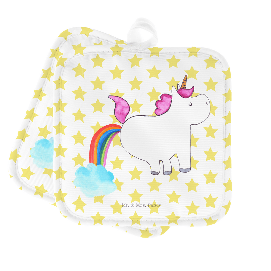 2er Set Topflappen Einhorn Pupsend - ohne Spruch - Weiß