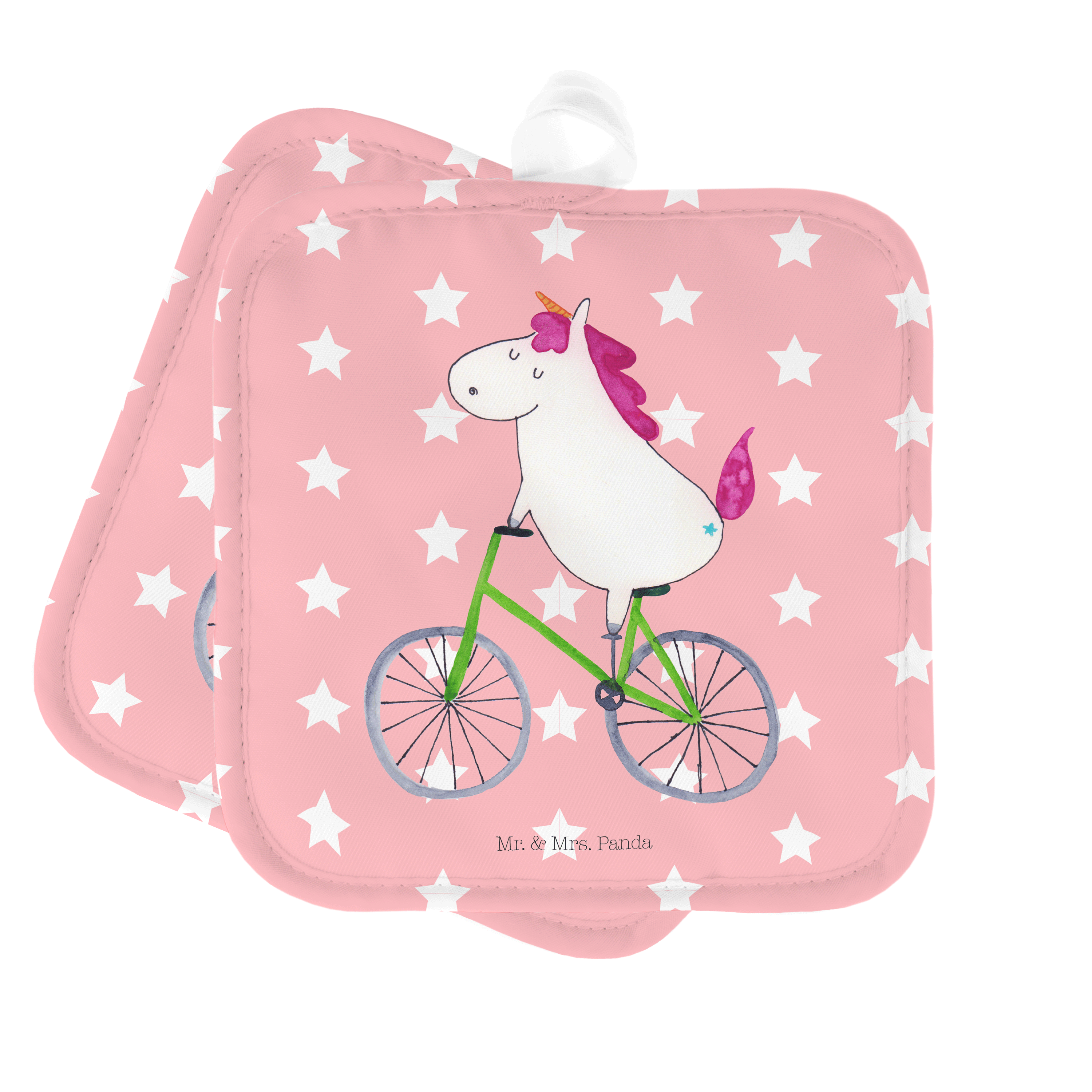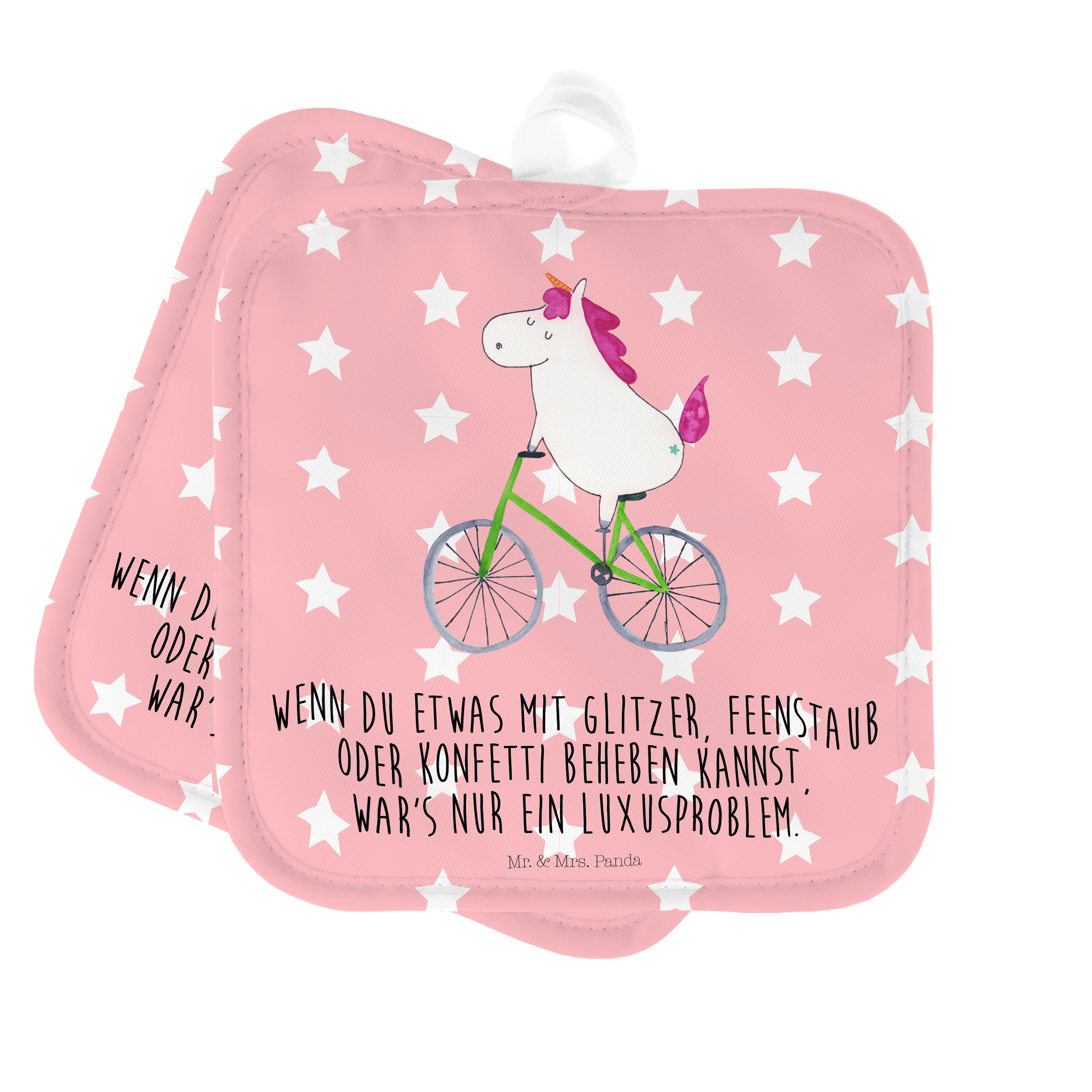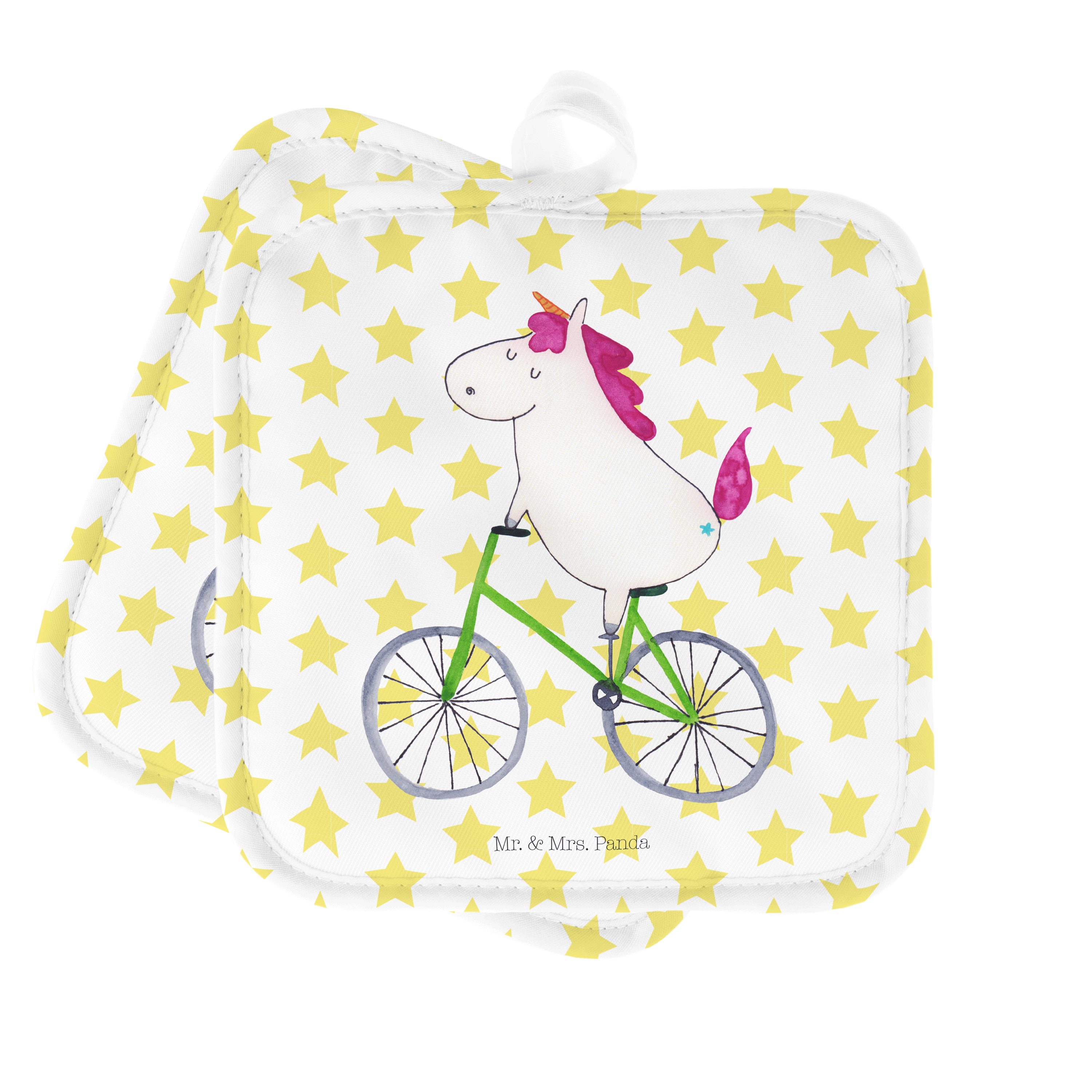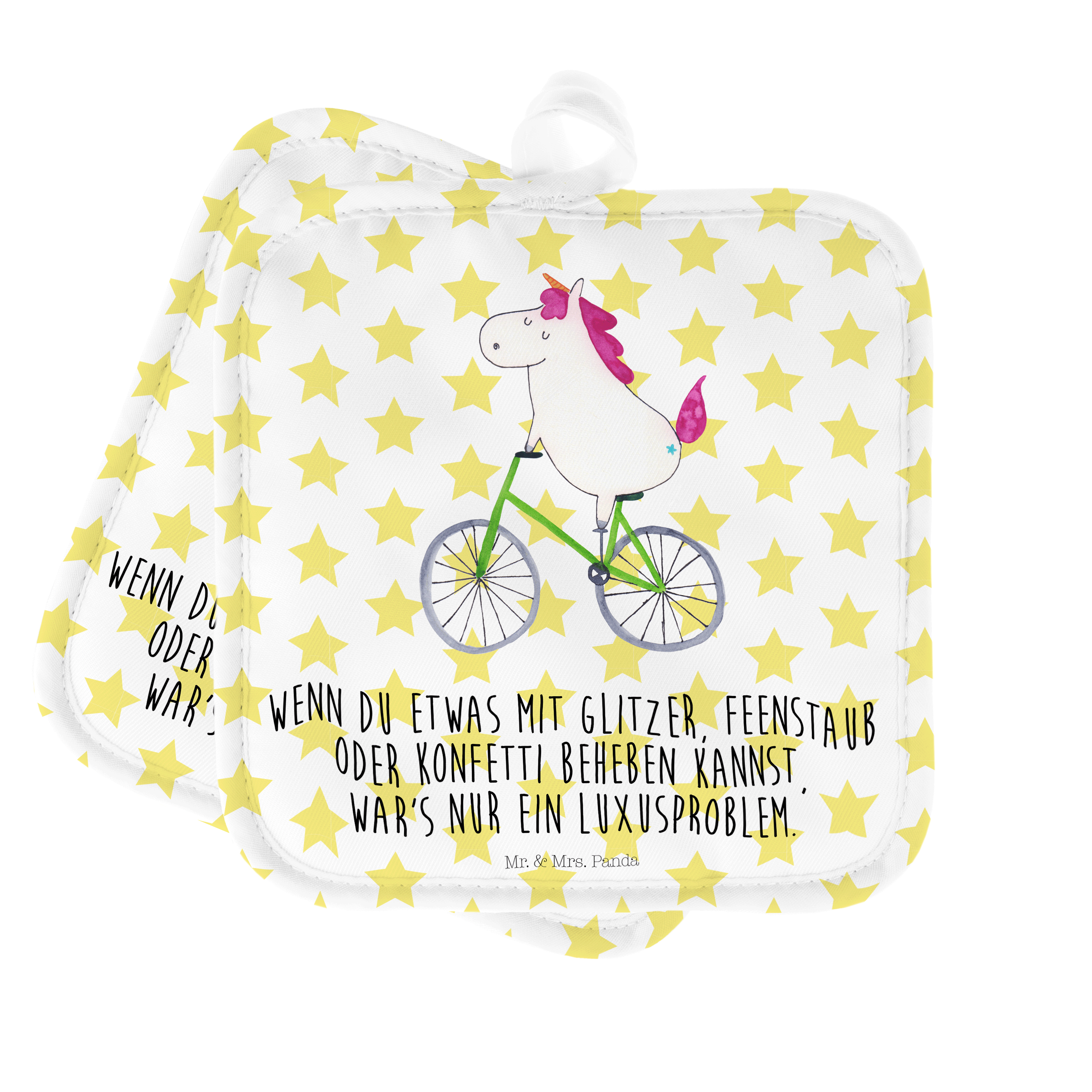2er Set Topflappen Einhorn Radfahrer - ohne Spruch - Weiß