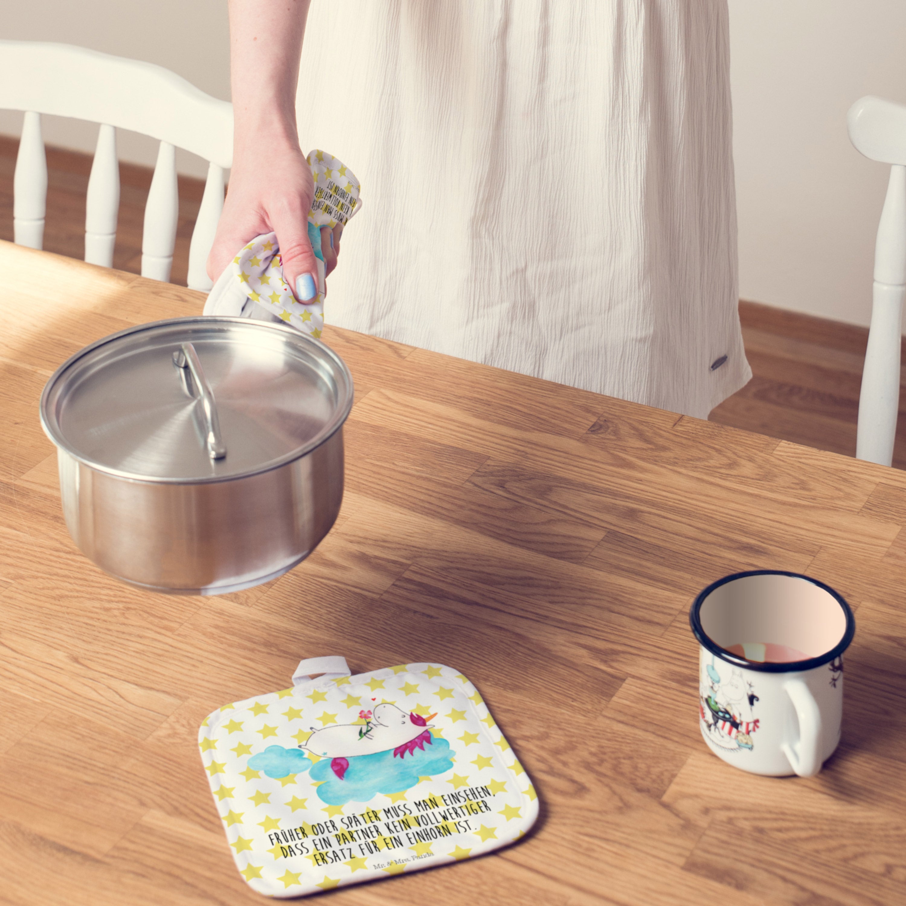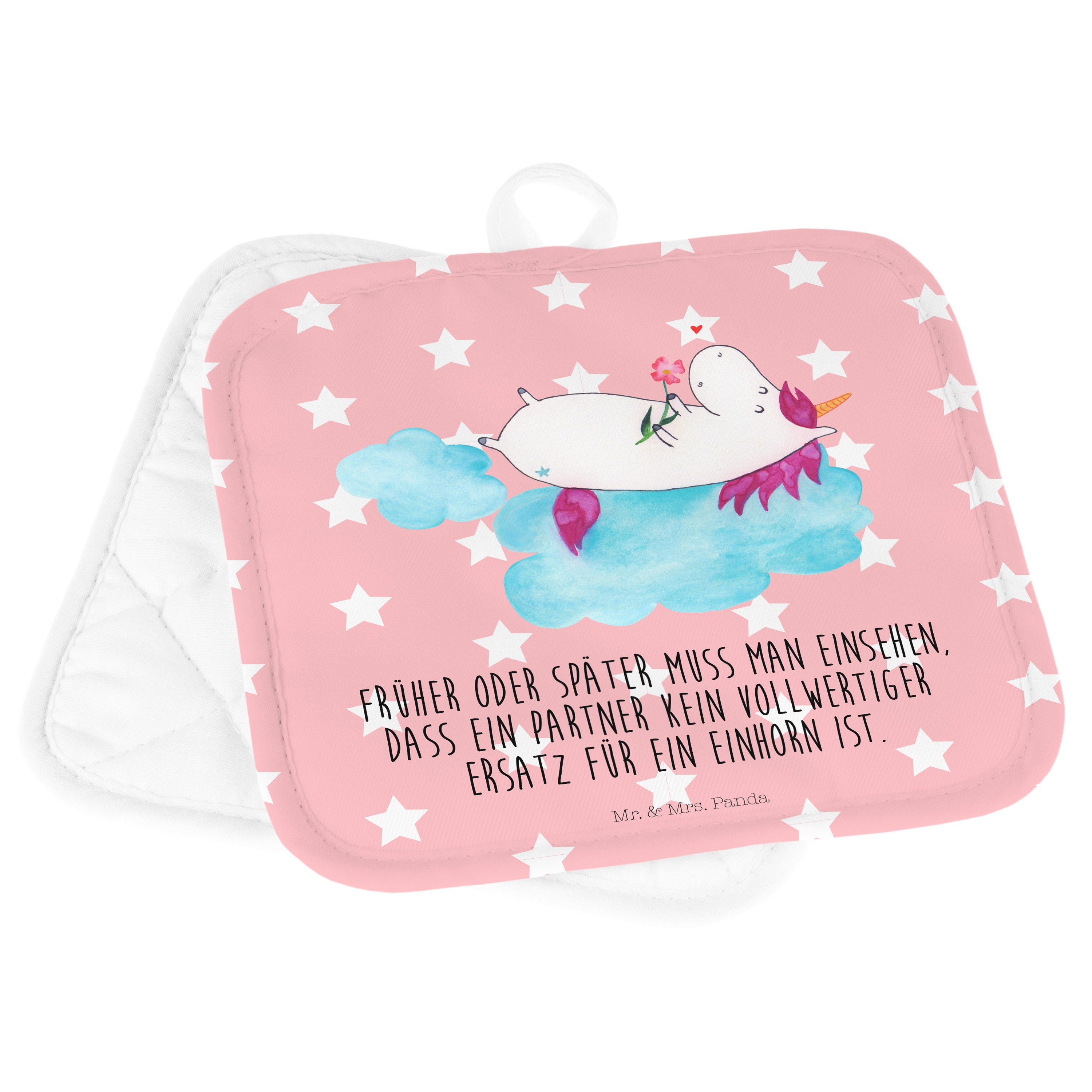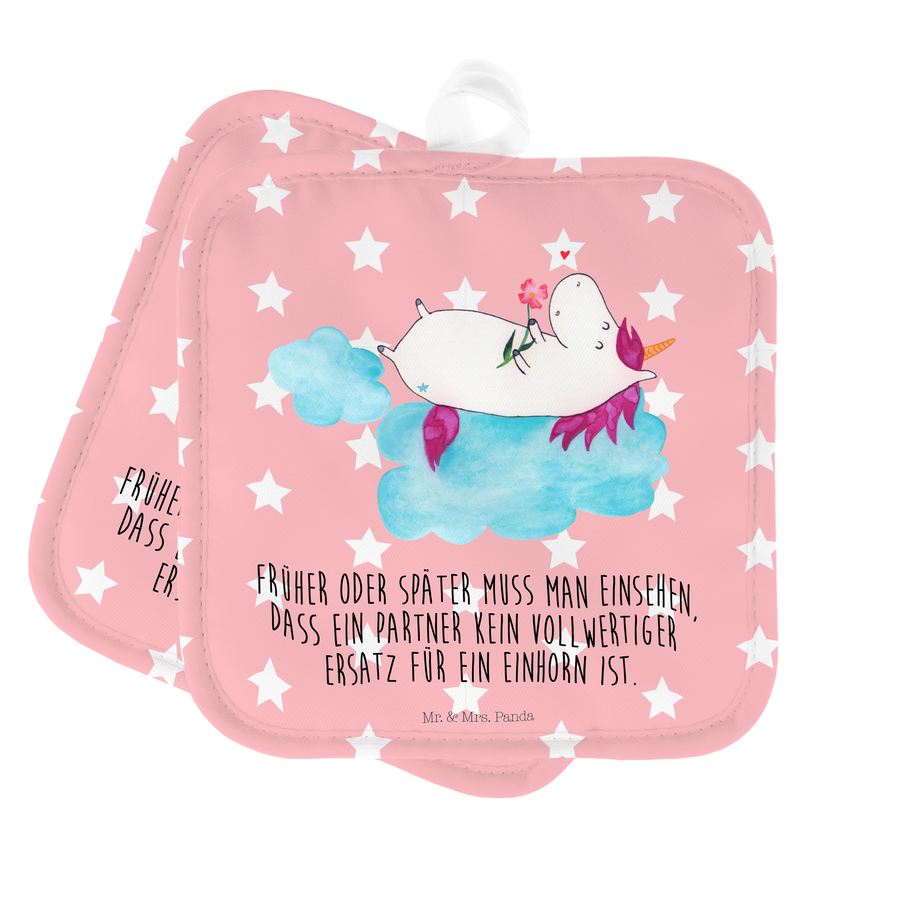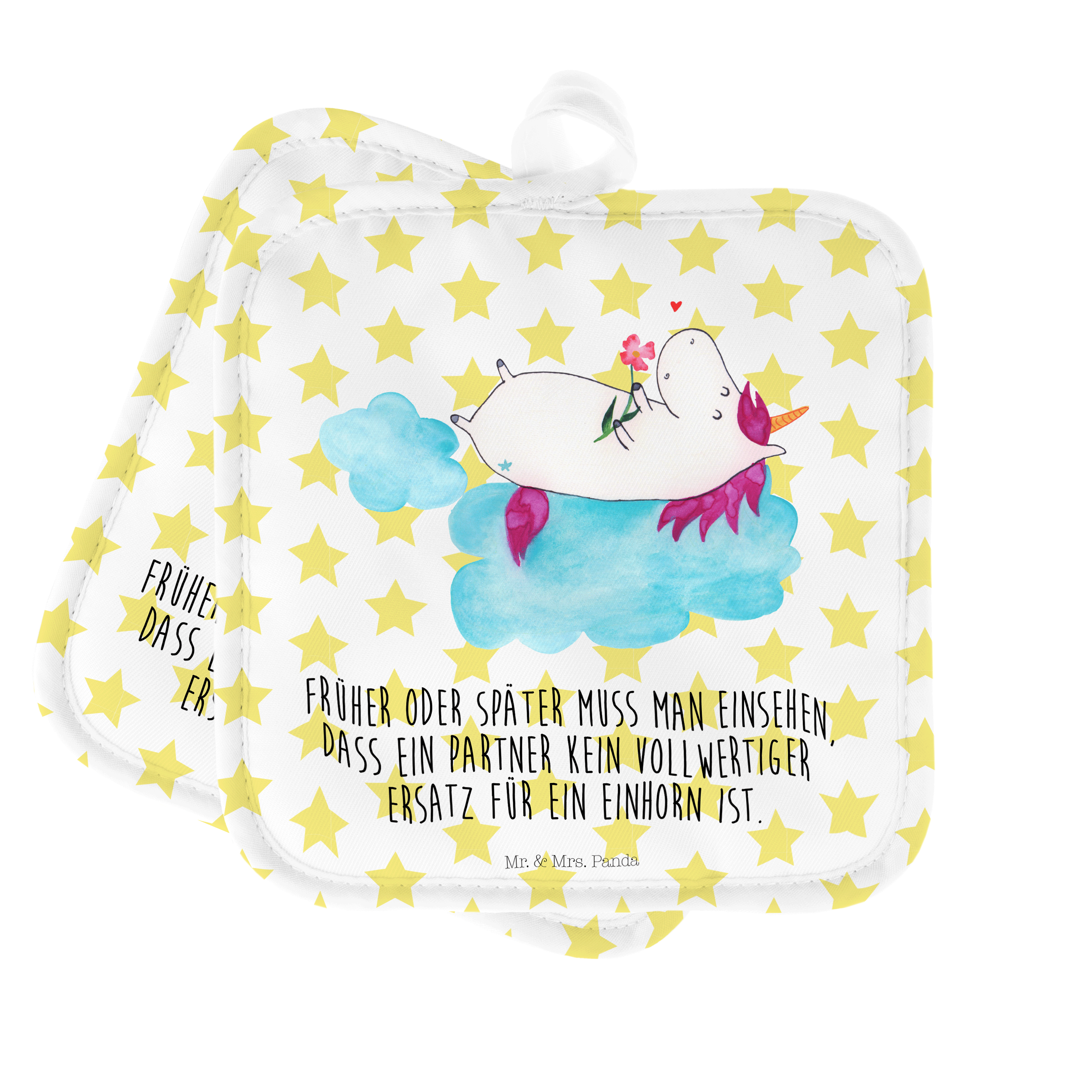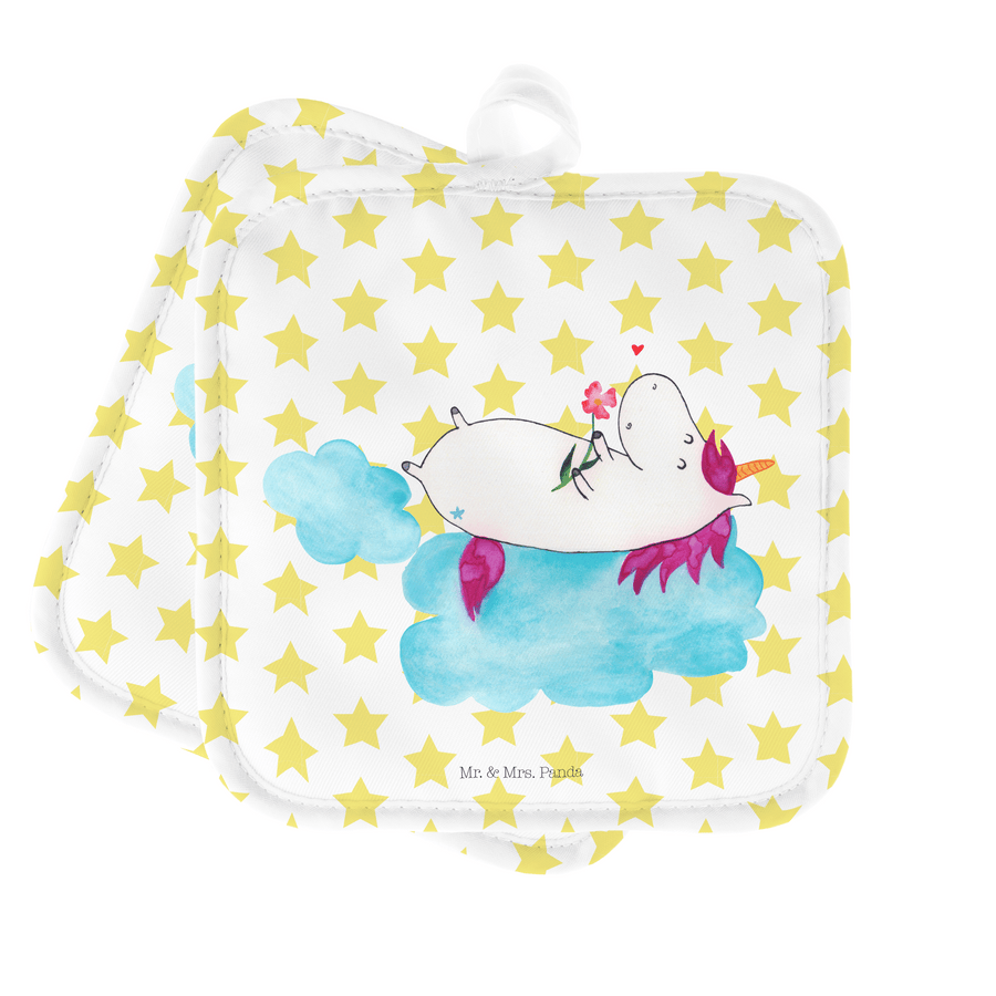 2er Set Topflappen Einhorn verliebt auf Wolke - ohne Spruch - Weiß
