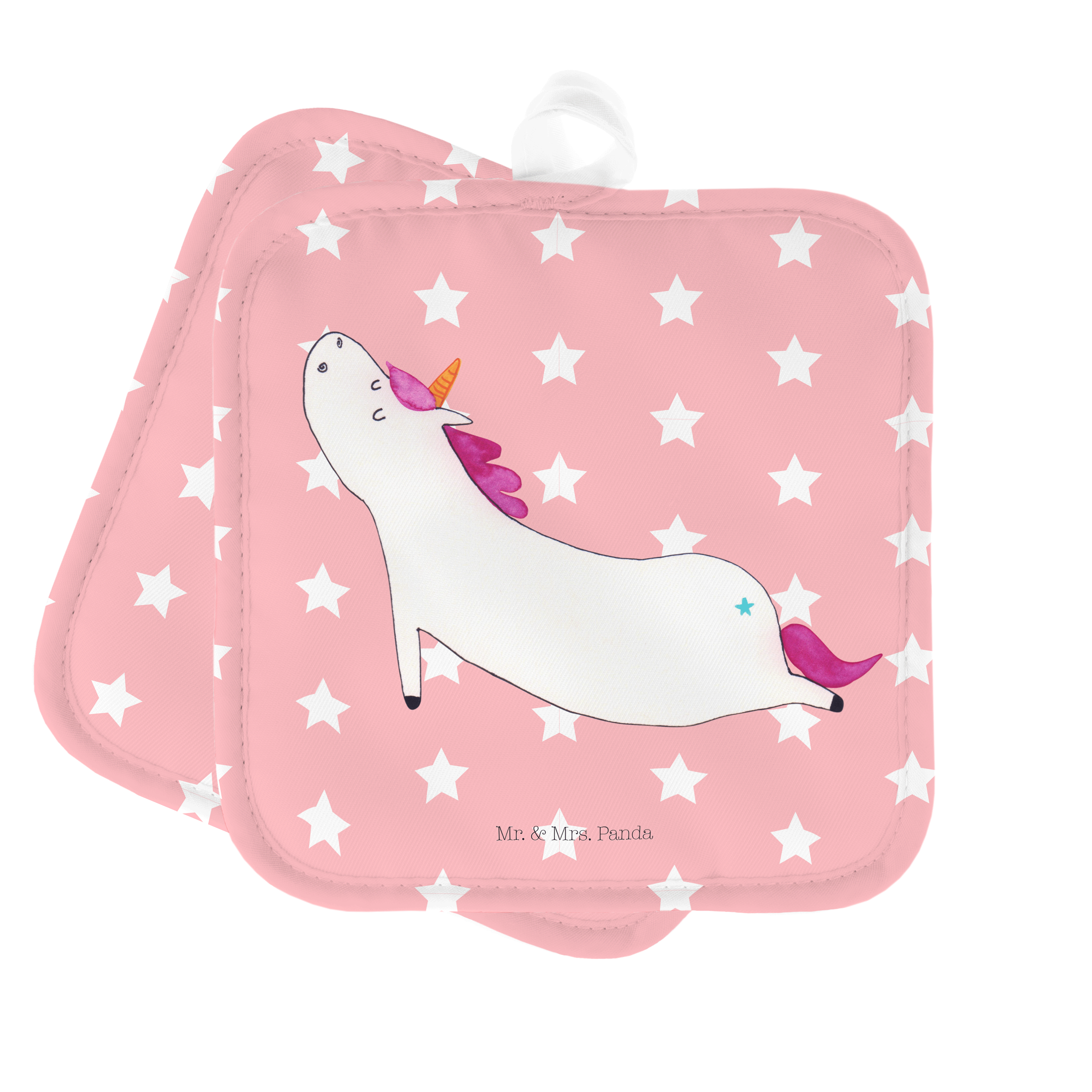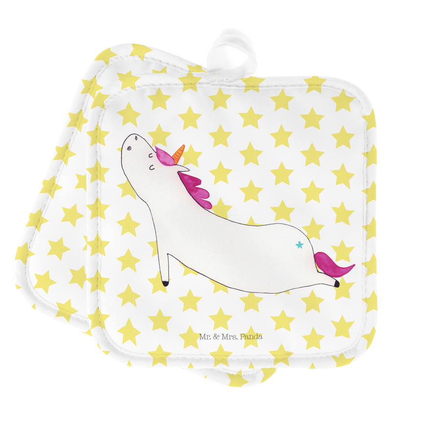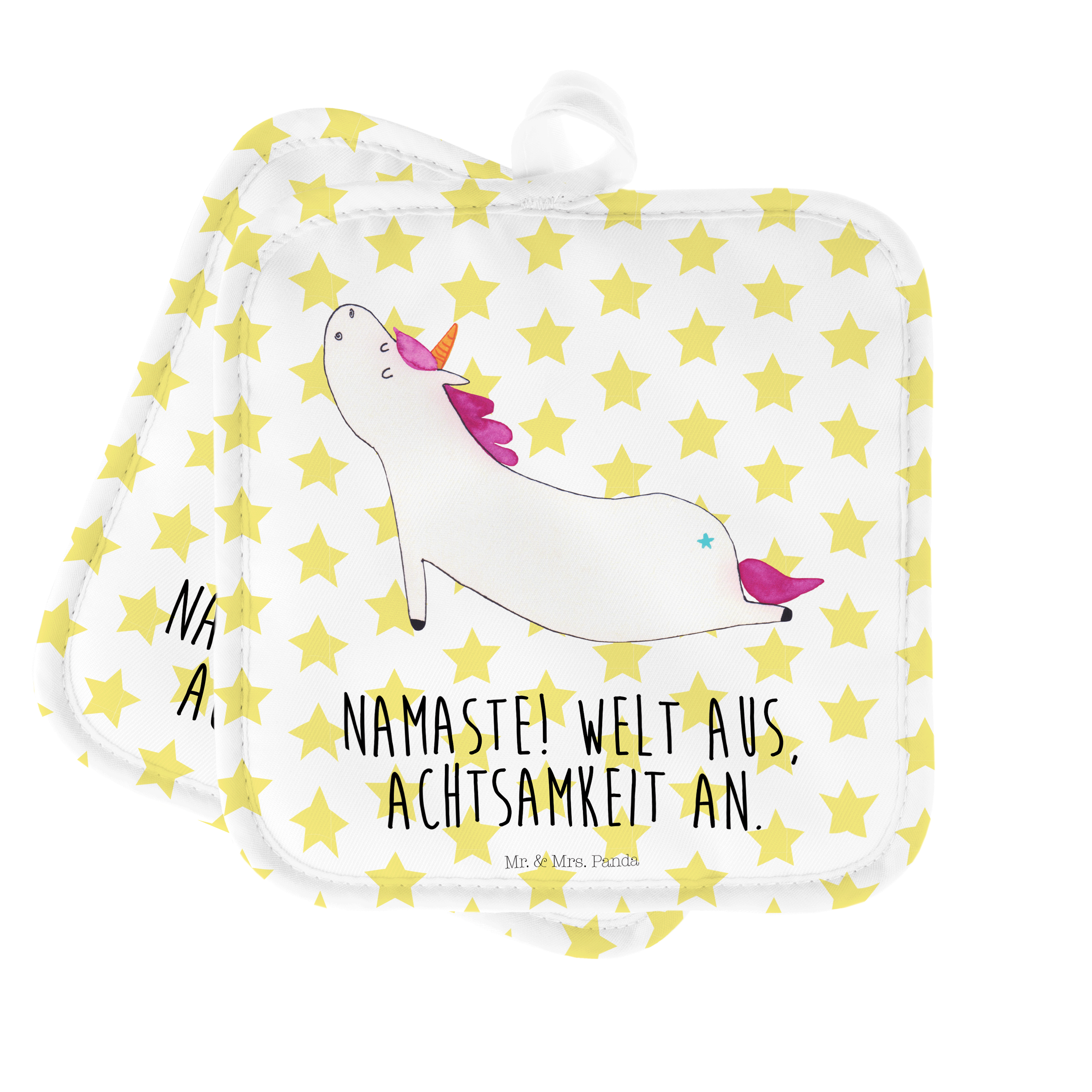 2er Set Topflappen Einhorn Yoga - ohne Spruch - Weiß