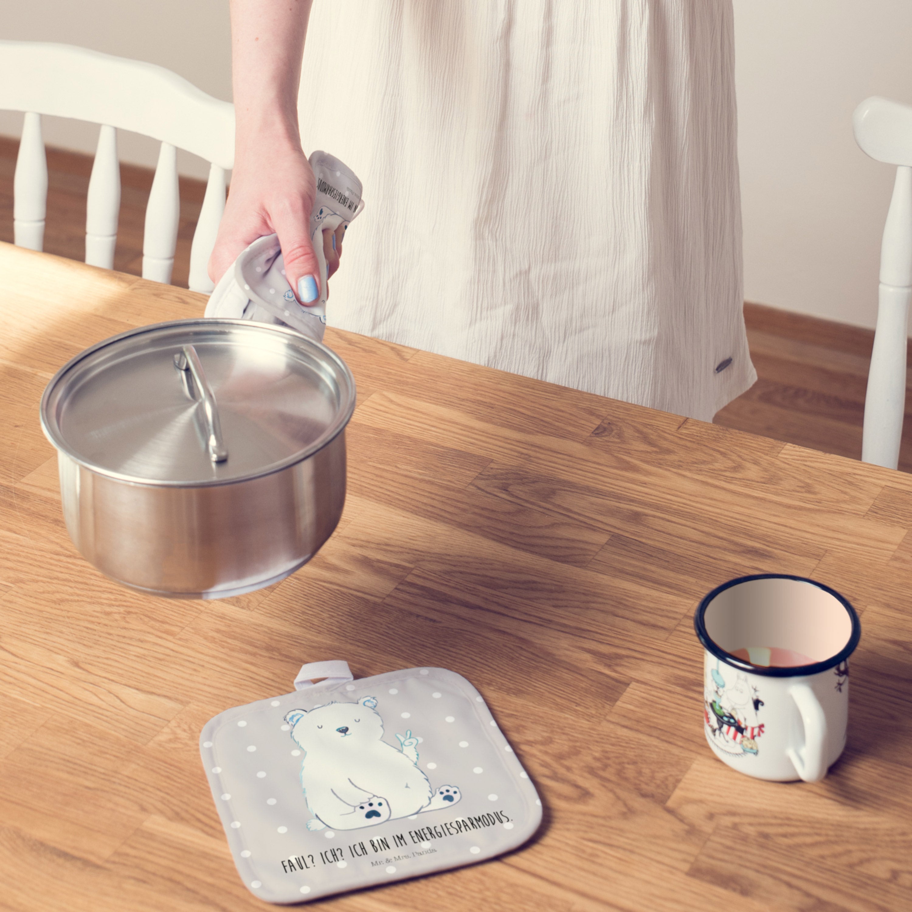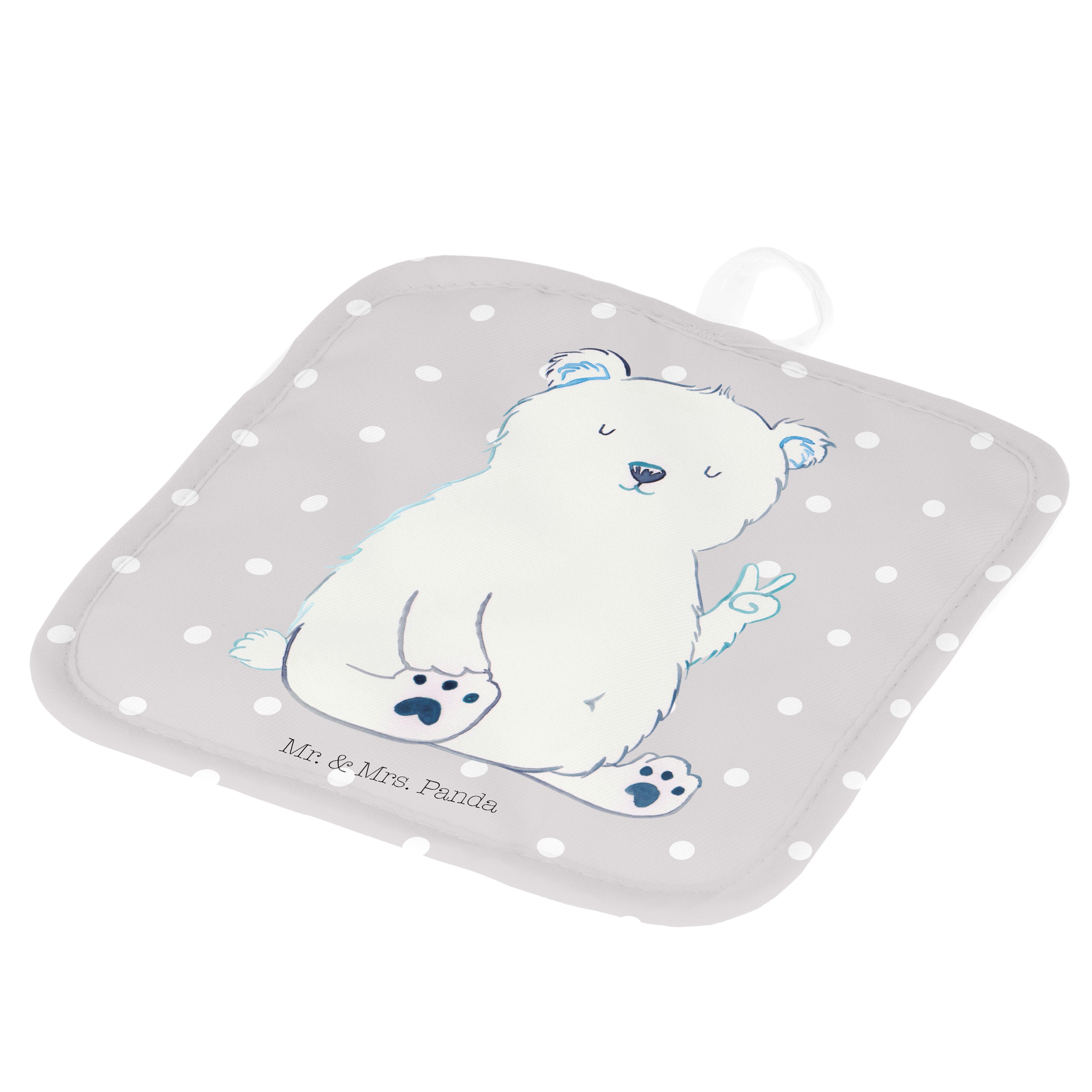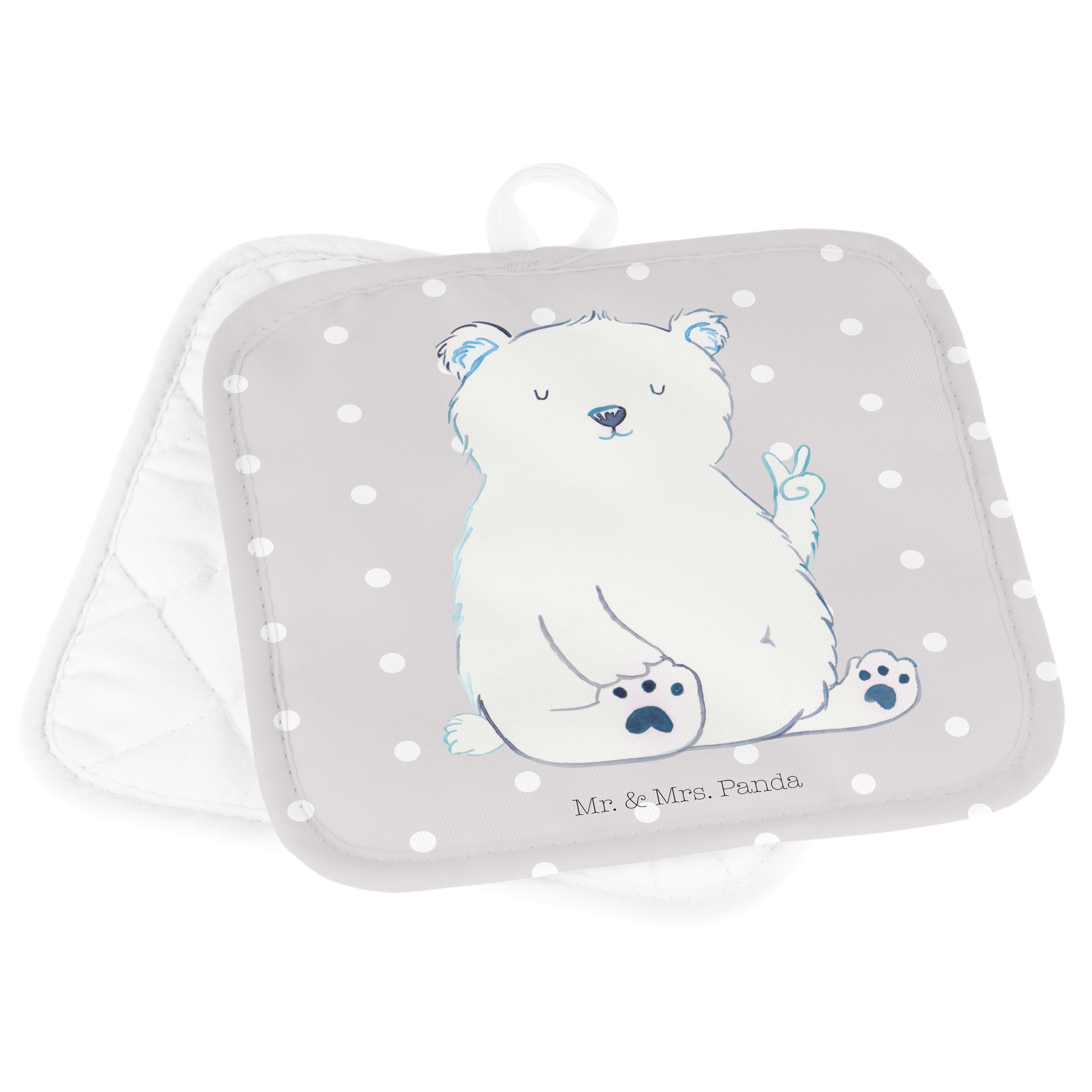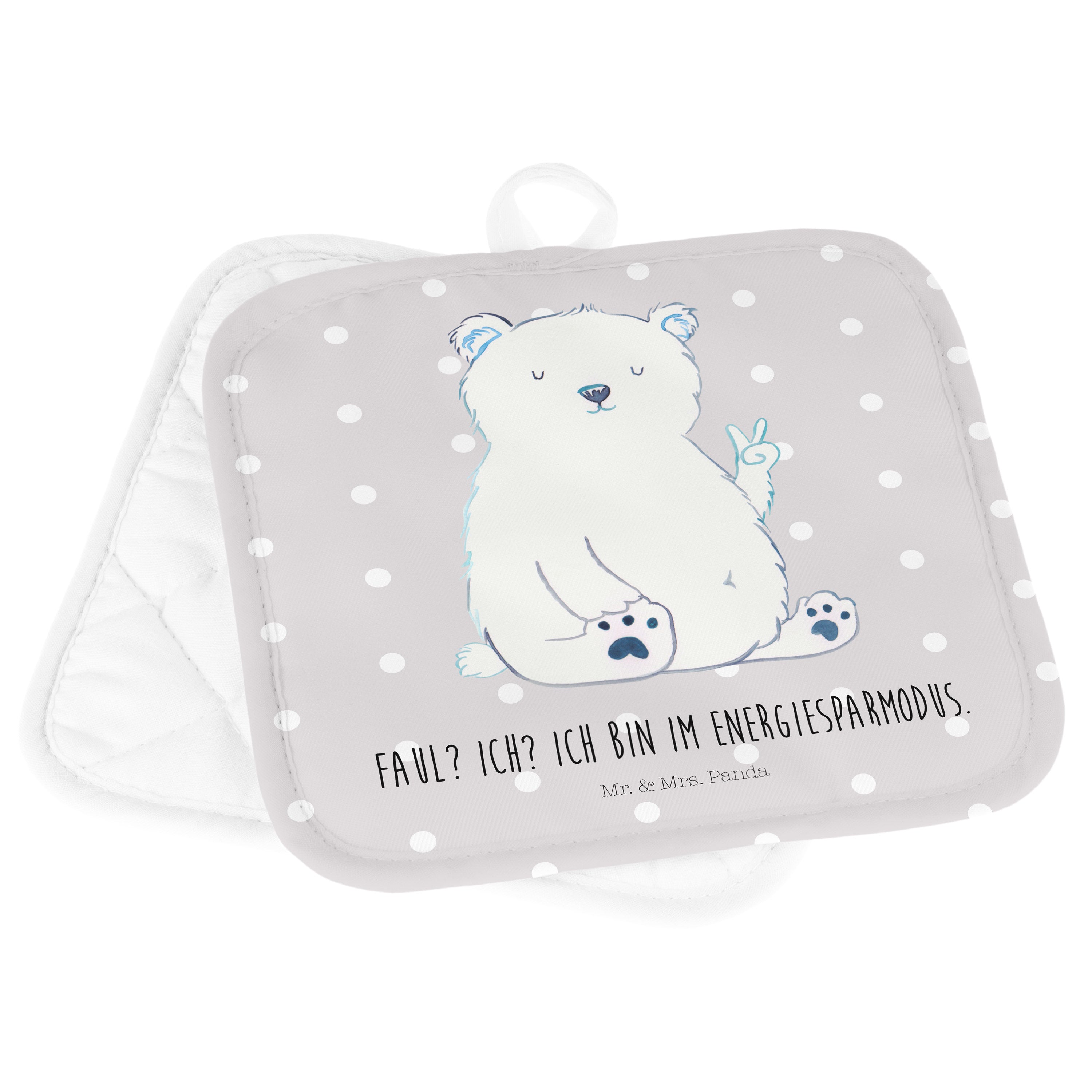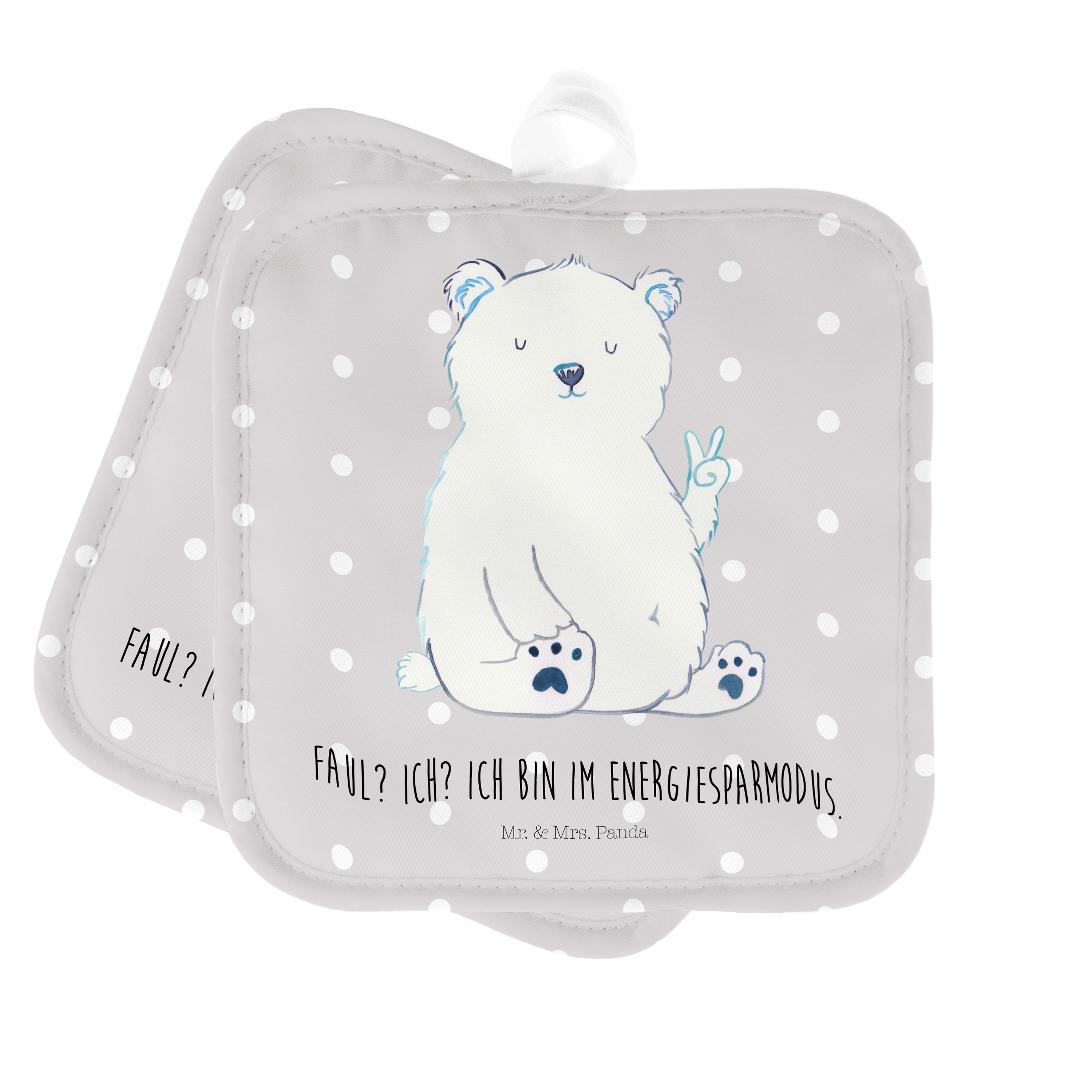 2er Set Topflappen Eisbär Faul - mit Spruch - Grau Pastell