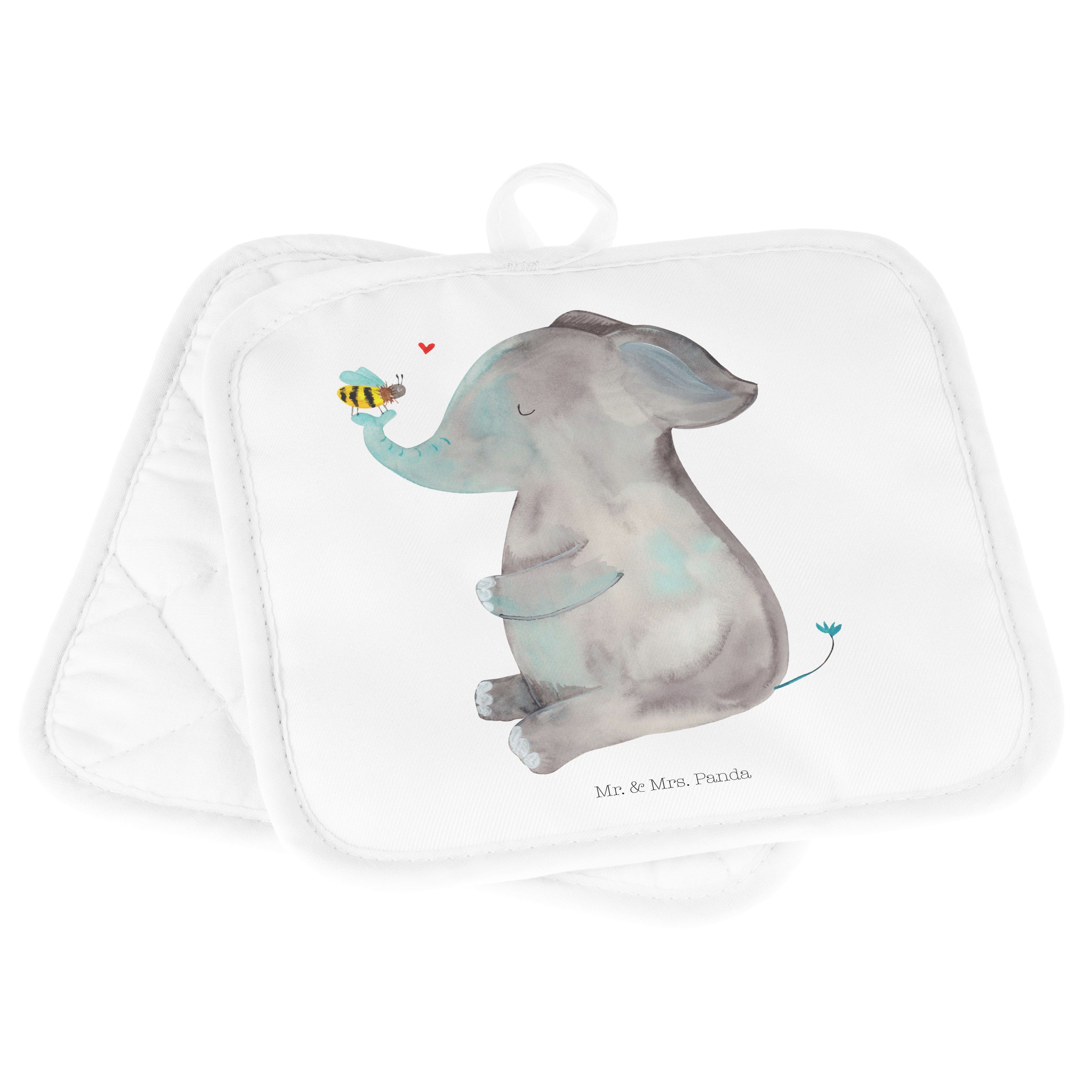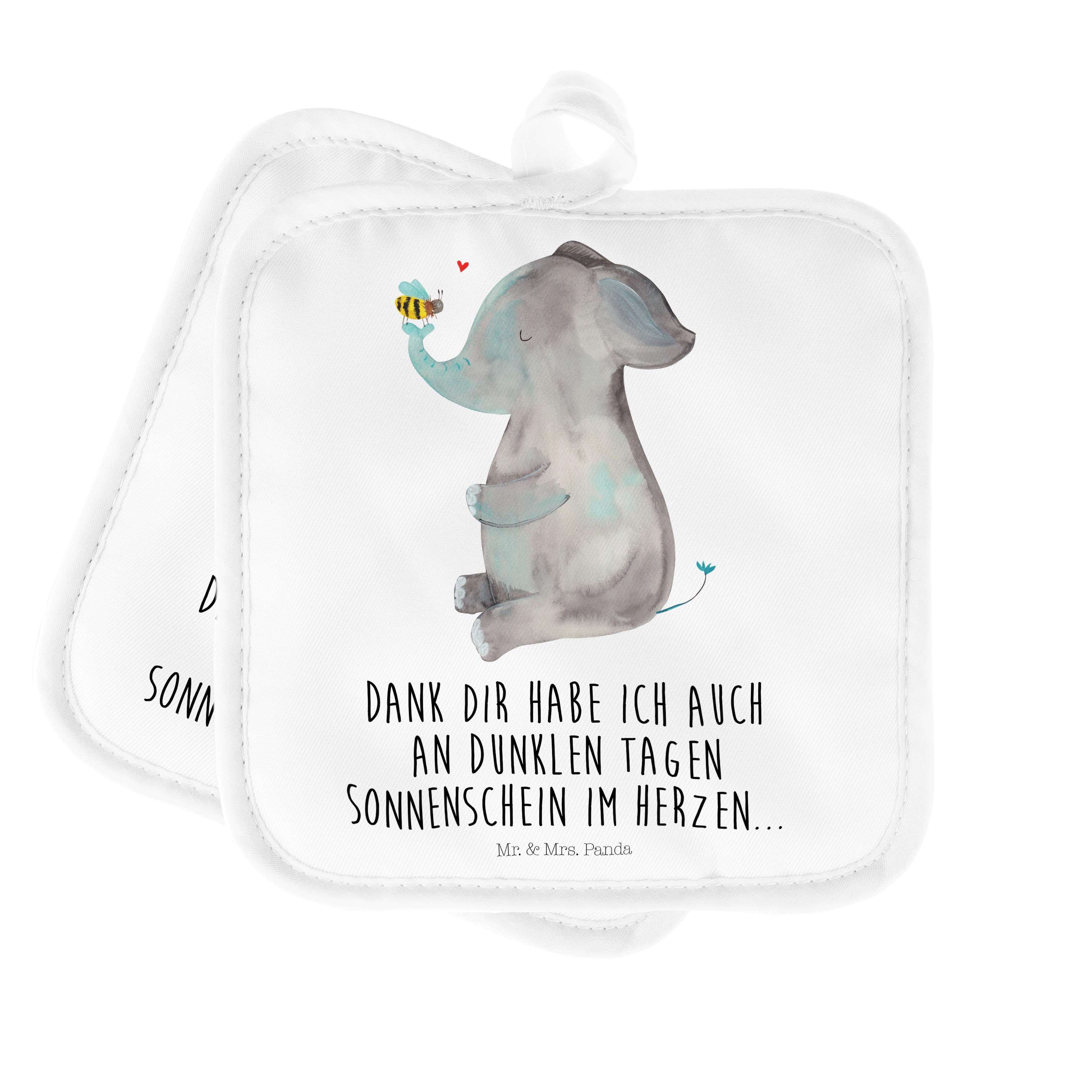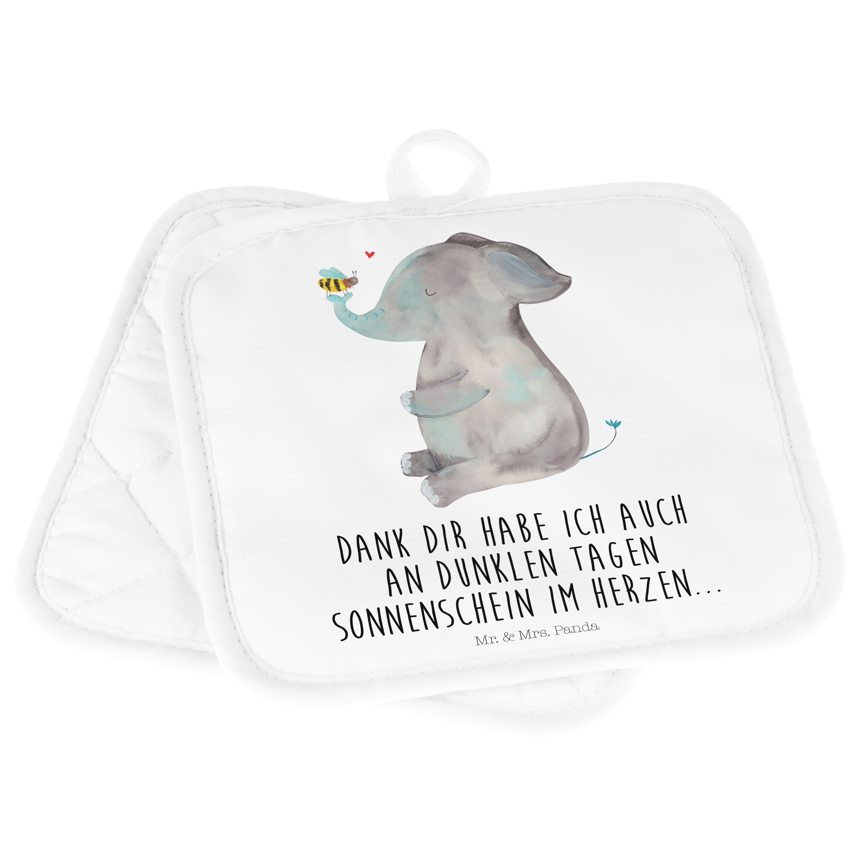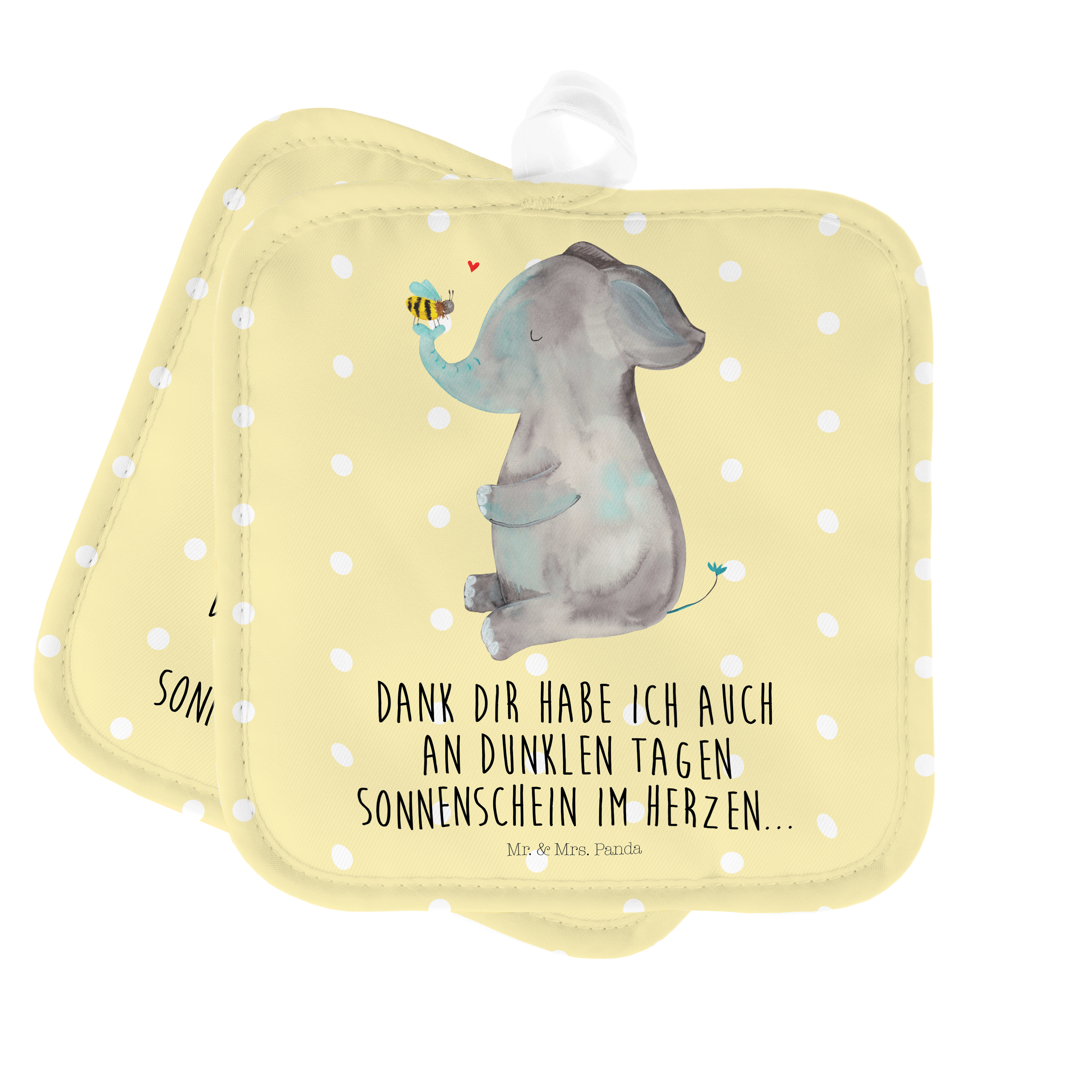 2er Set Topflappen Elefant & Biene - mit Spruch - Gelb Pastell