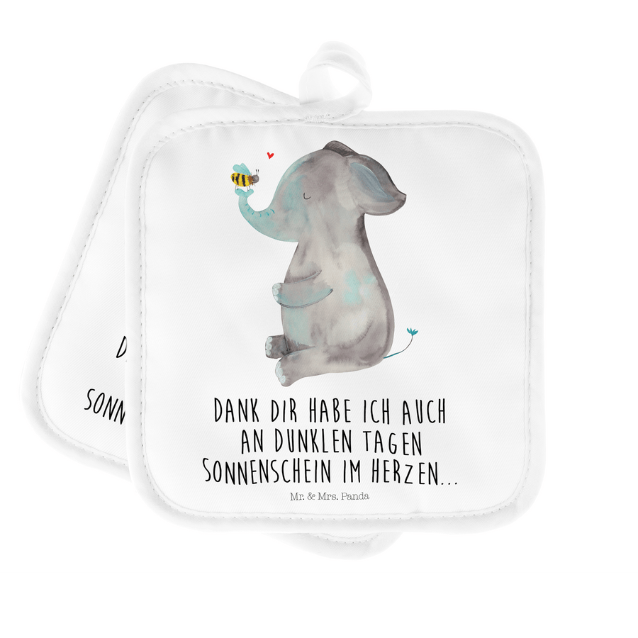 2er Set Topflappen Elefant & Biene - mit Spruch - Weiß