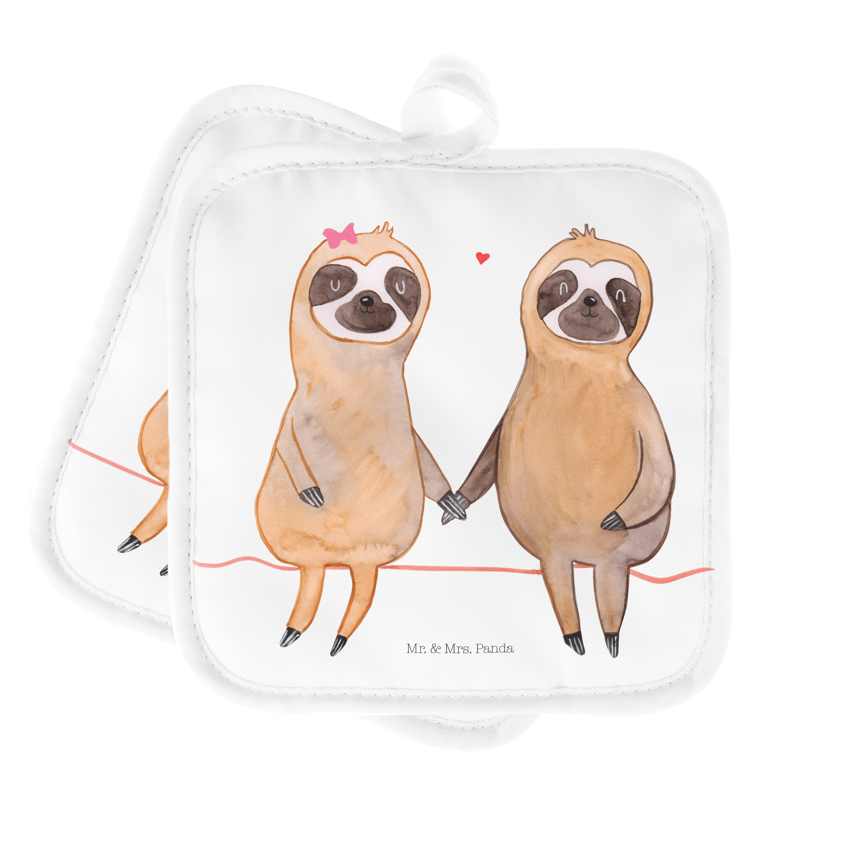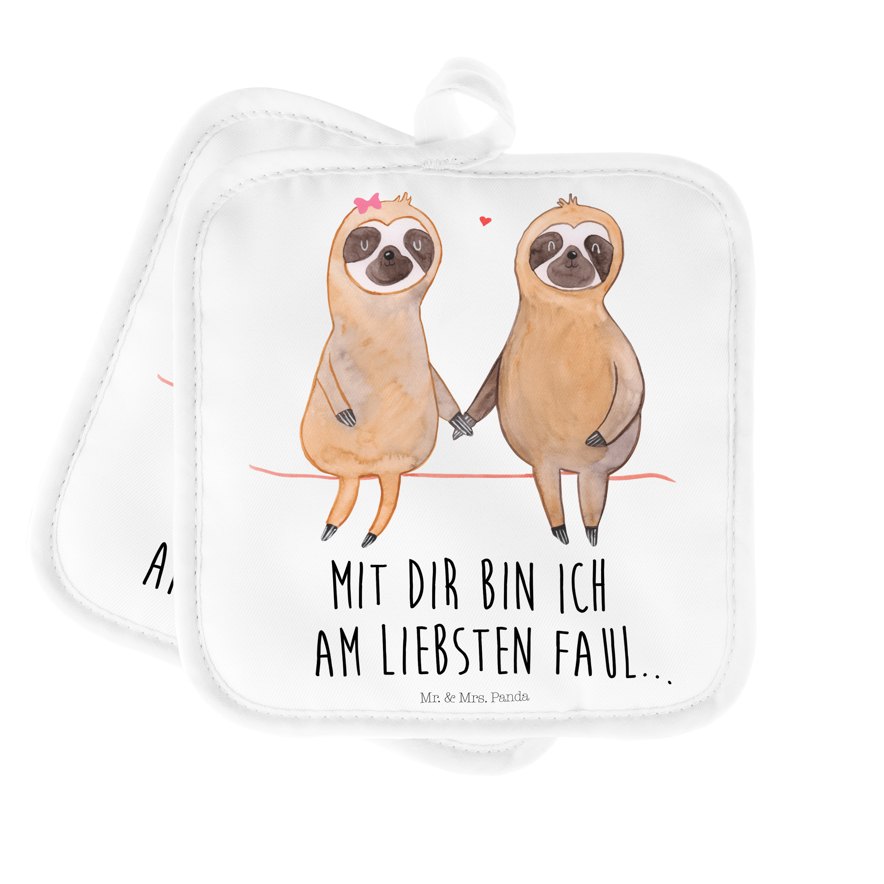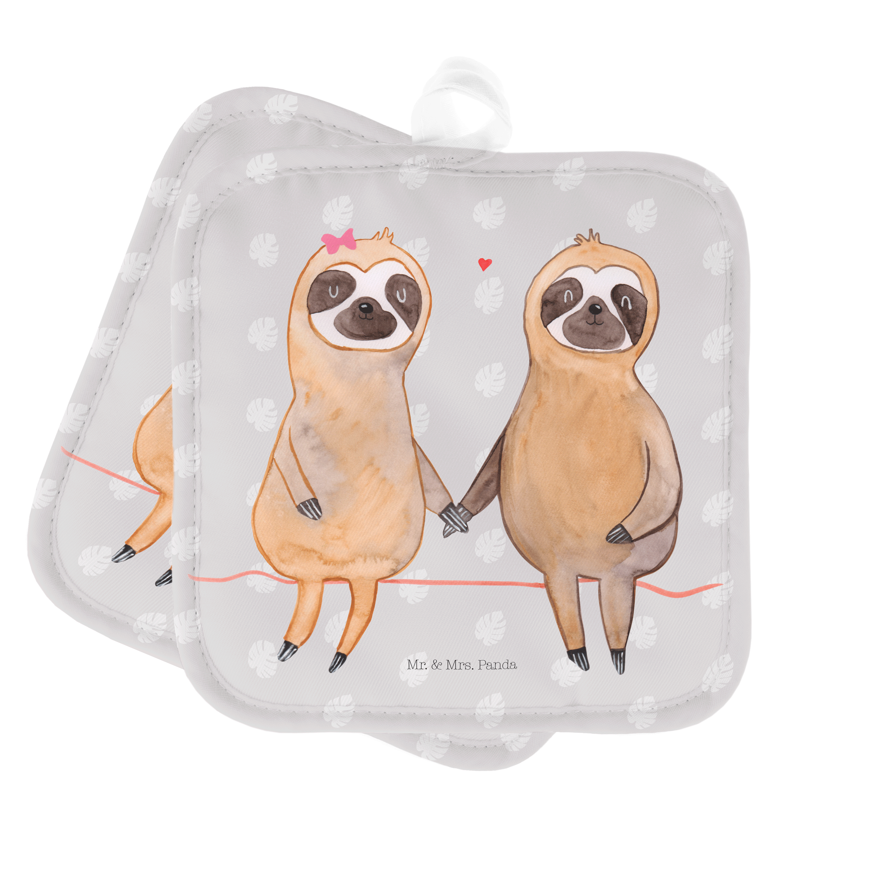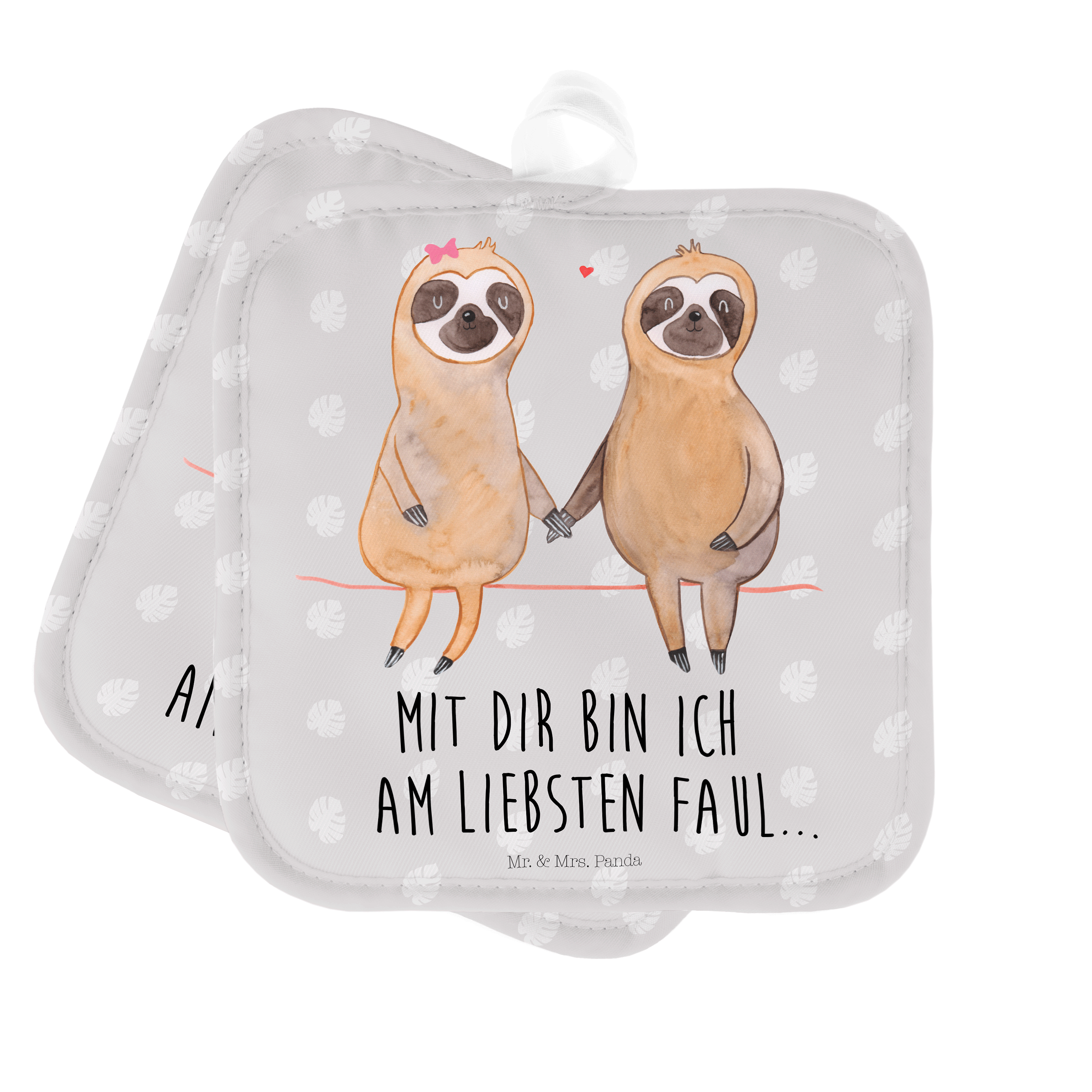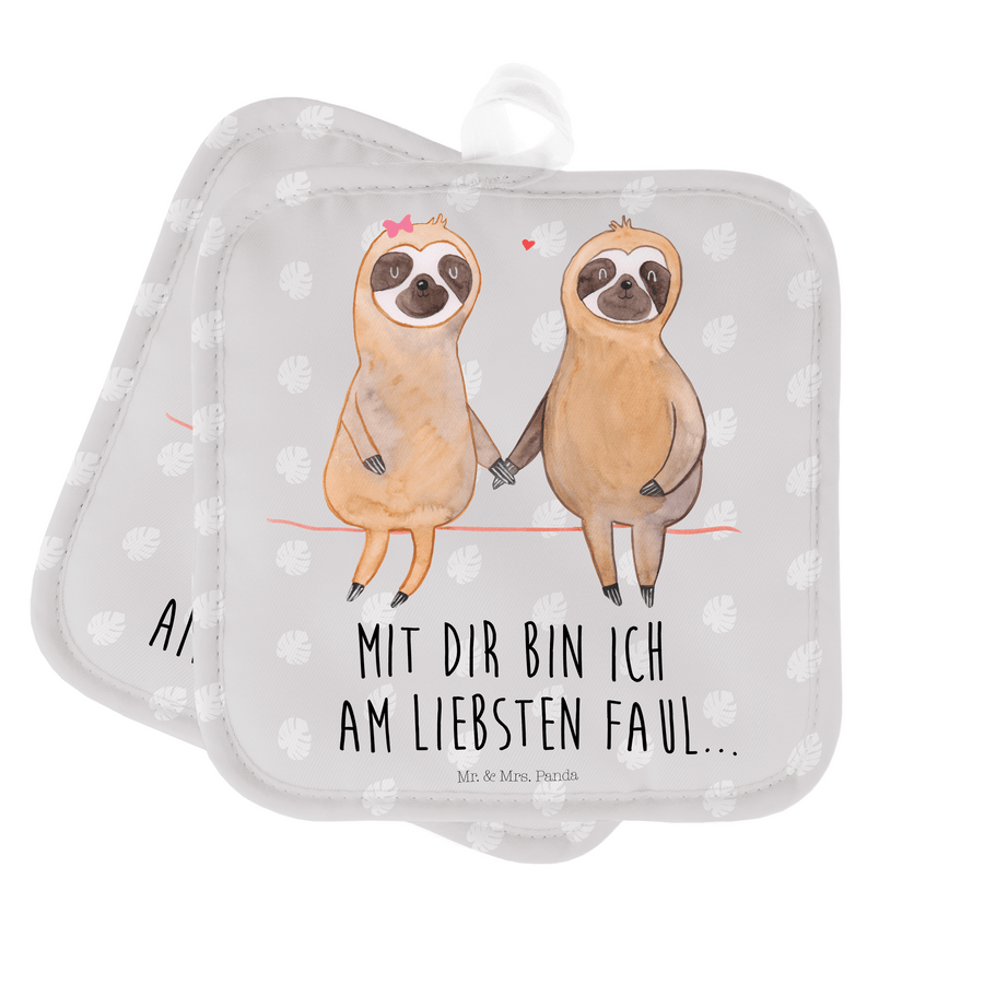 2er Set Topflappen Faultier Pärchen - mit Spruch - Grau Pastell