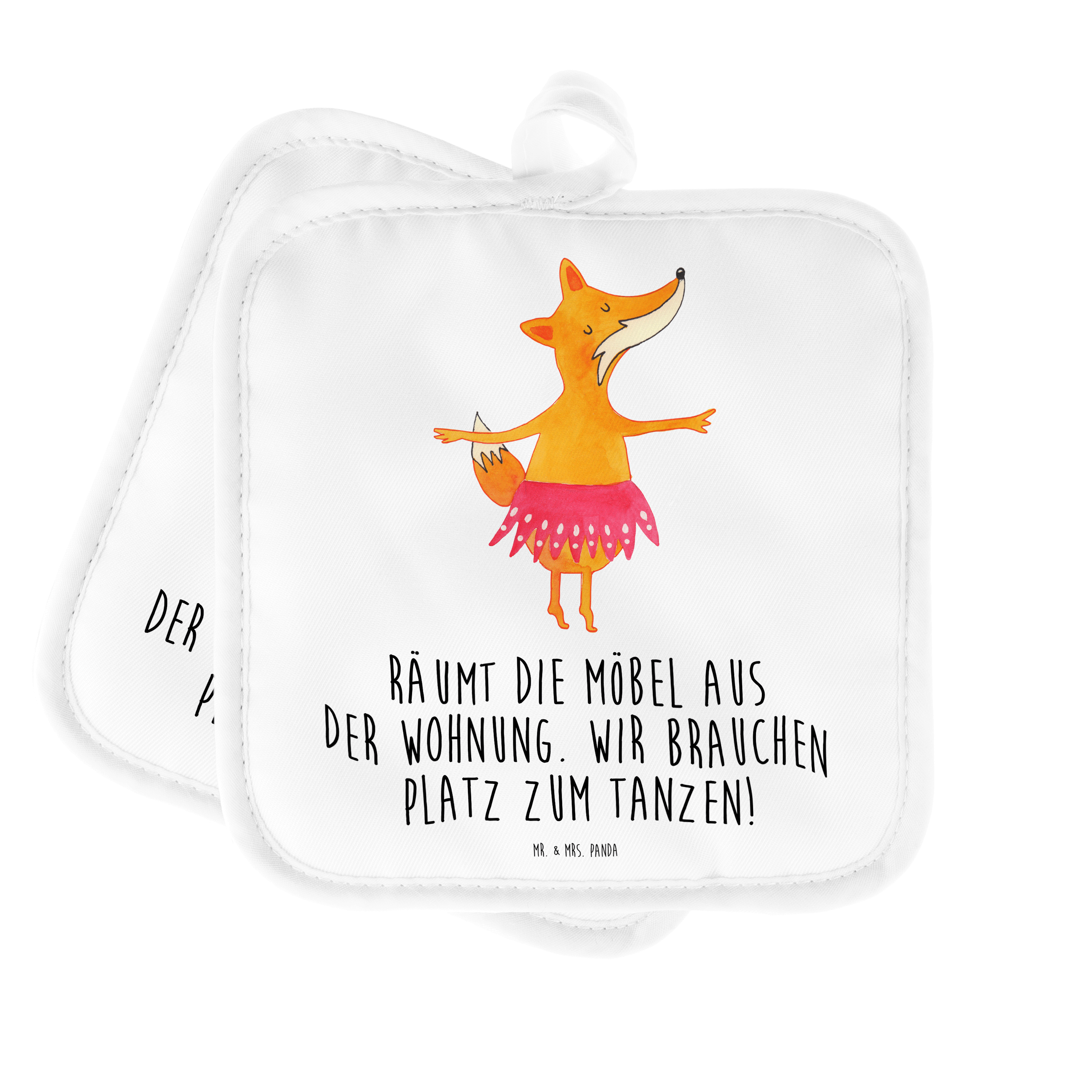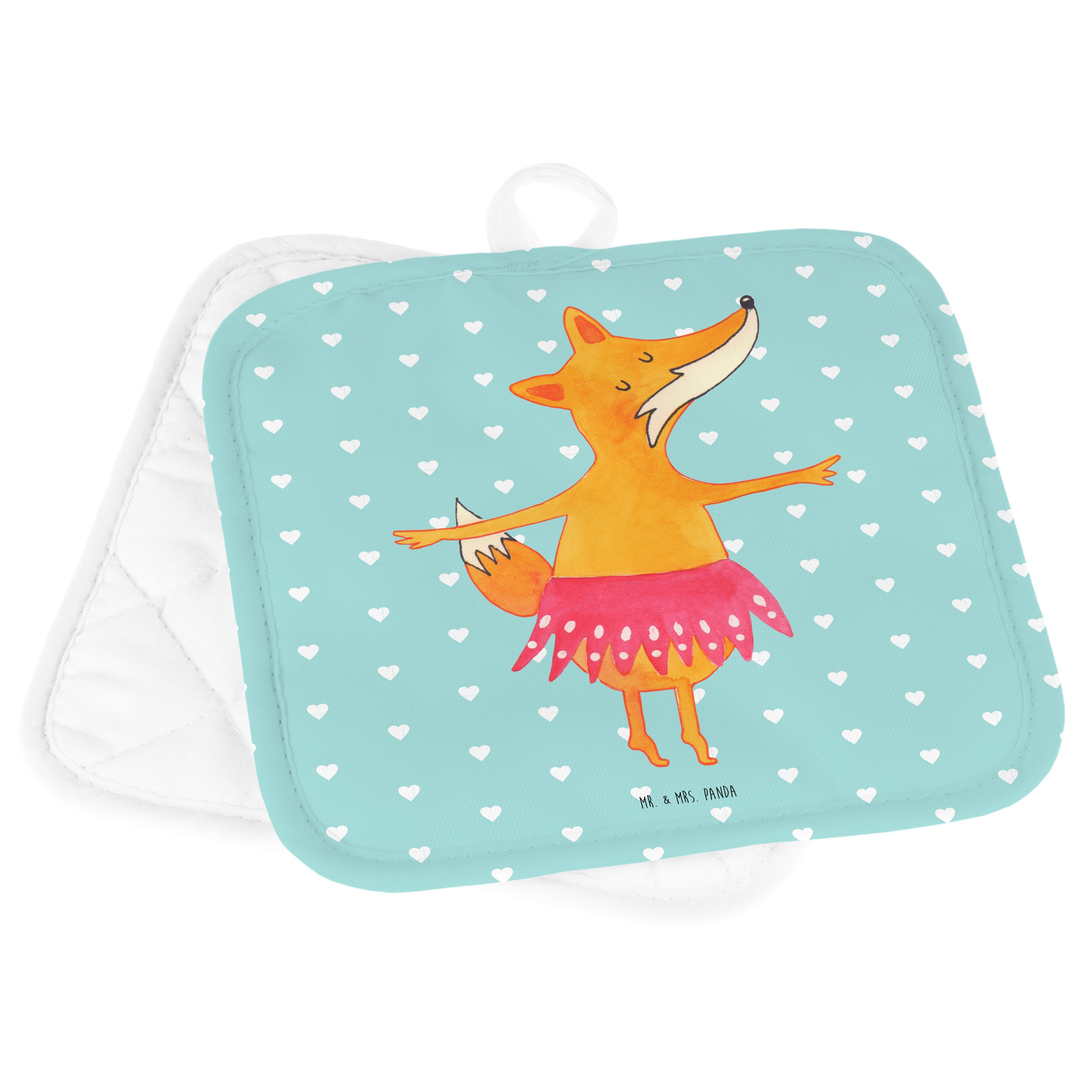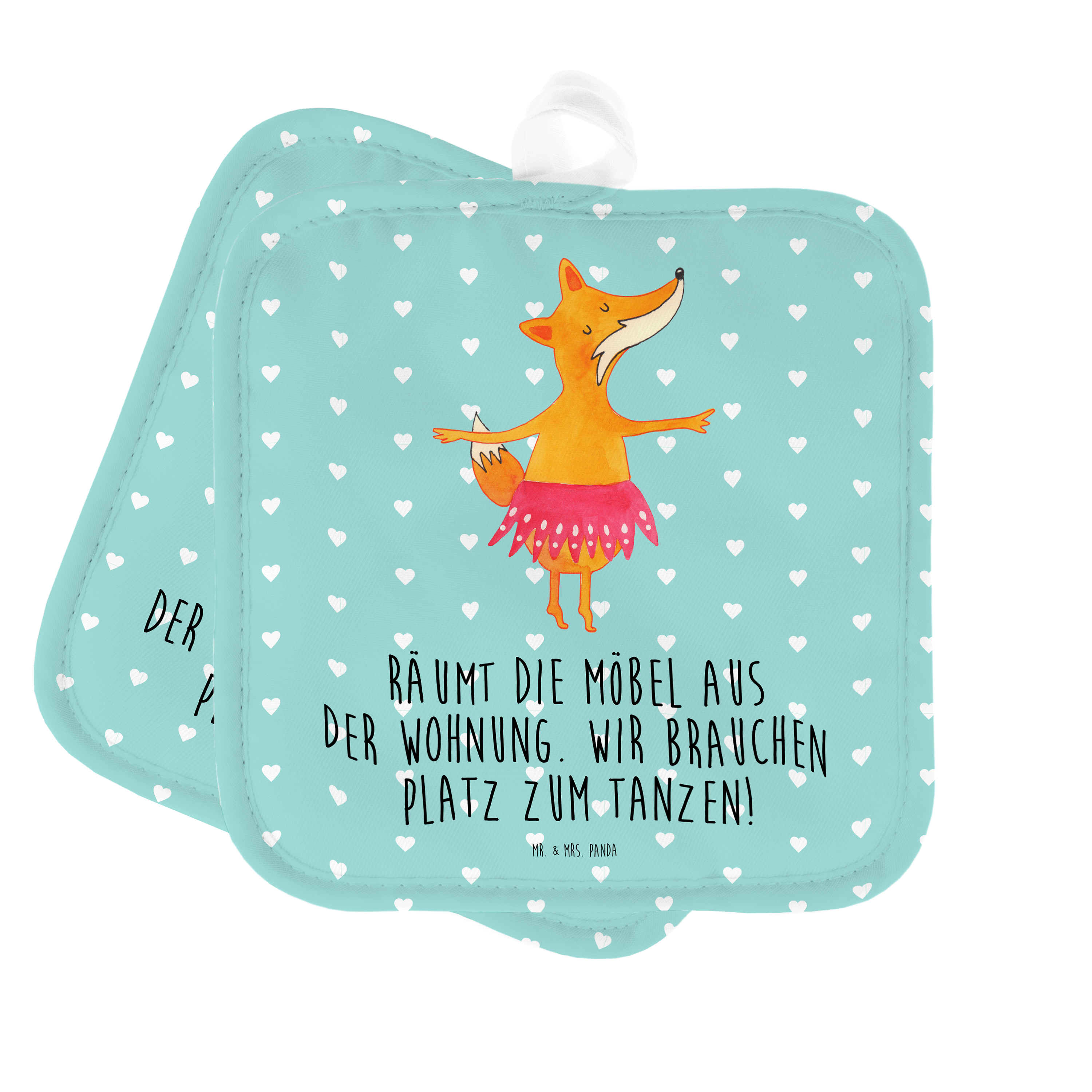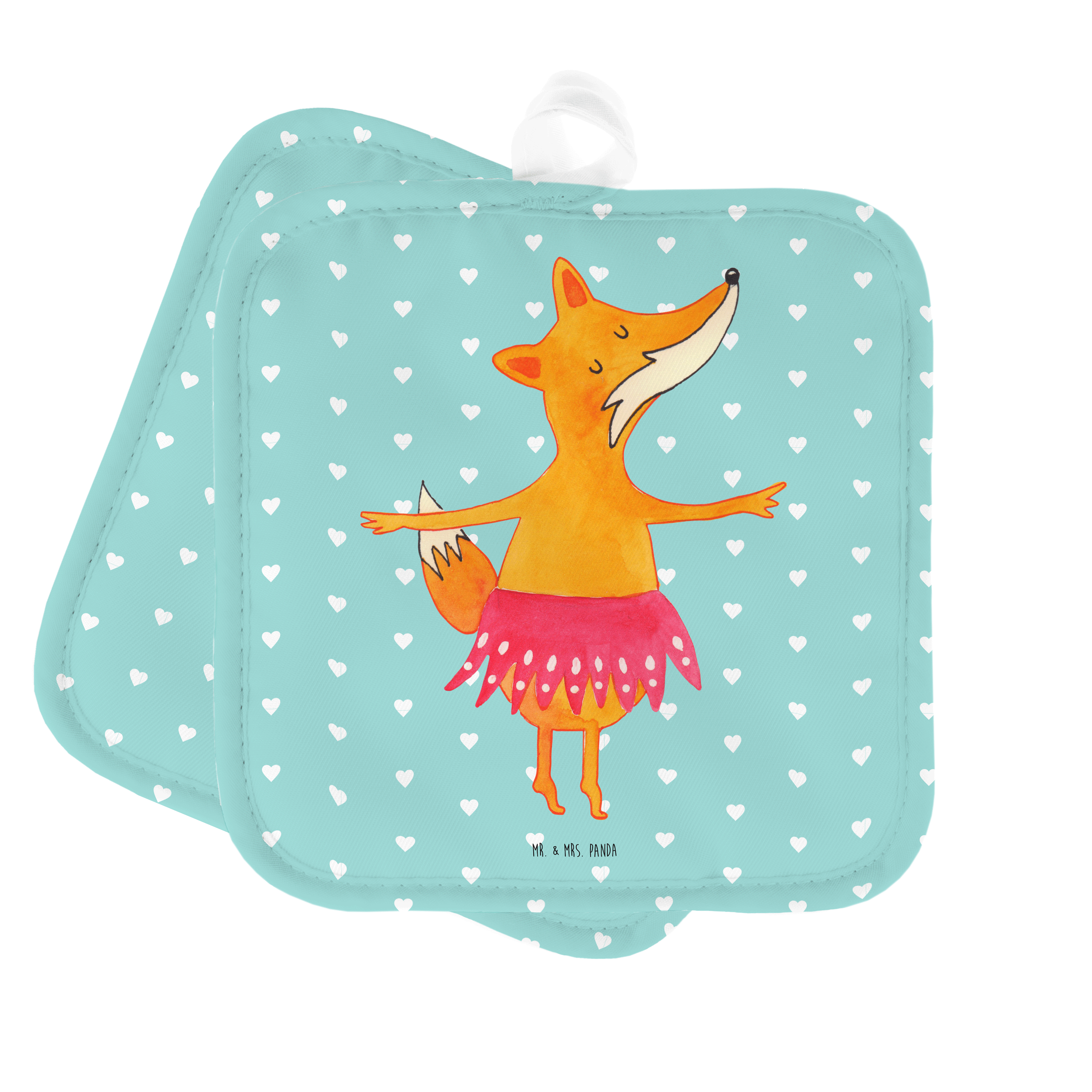 2er Set Topflappen Fuchs Ballerina - mit Spruch - Türkis Pastell