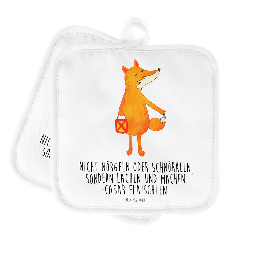 2er Set Topflappen Fuchs Laterne - mit Spruch - Weiß