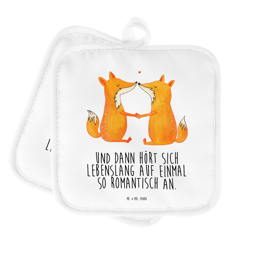 2er Set Topflappen Füchse Liebe - mit Spruch - Weiß