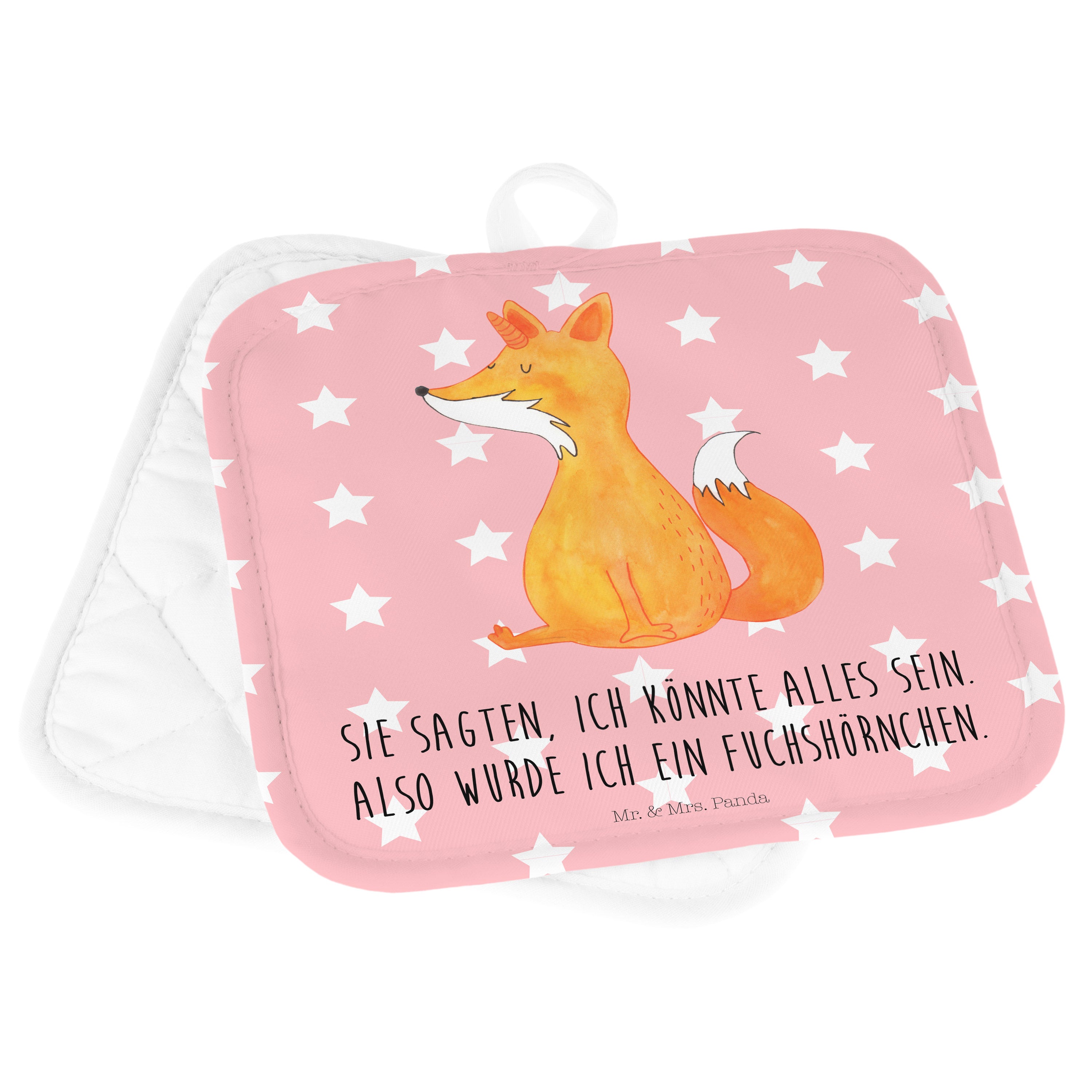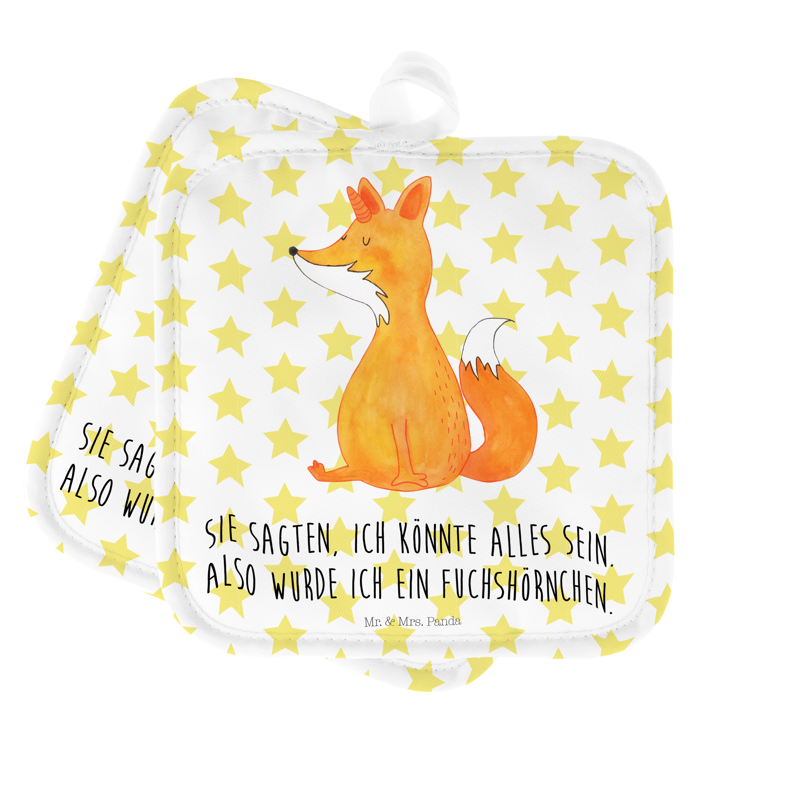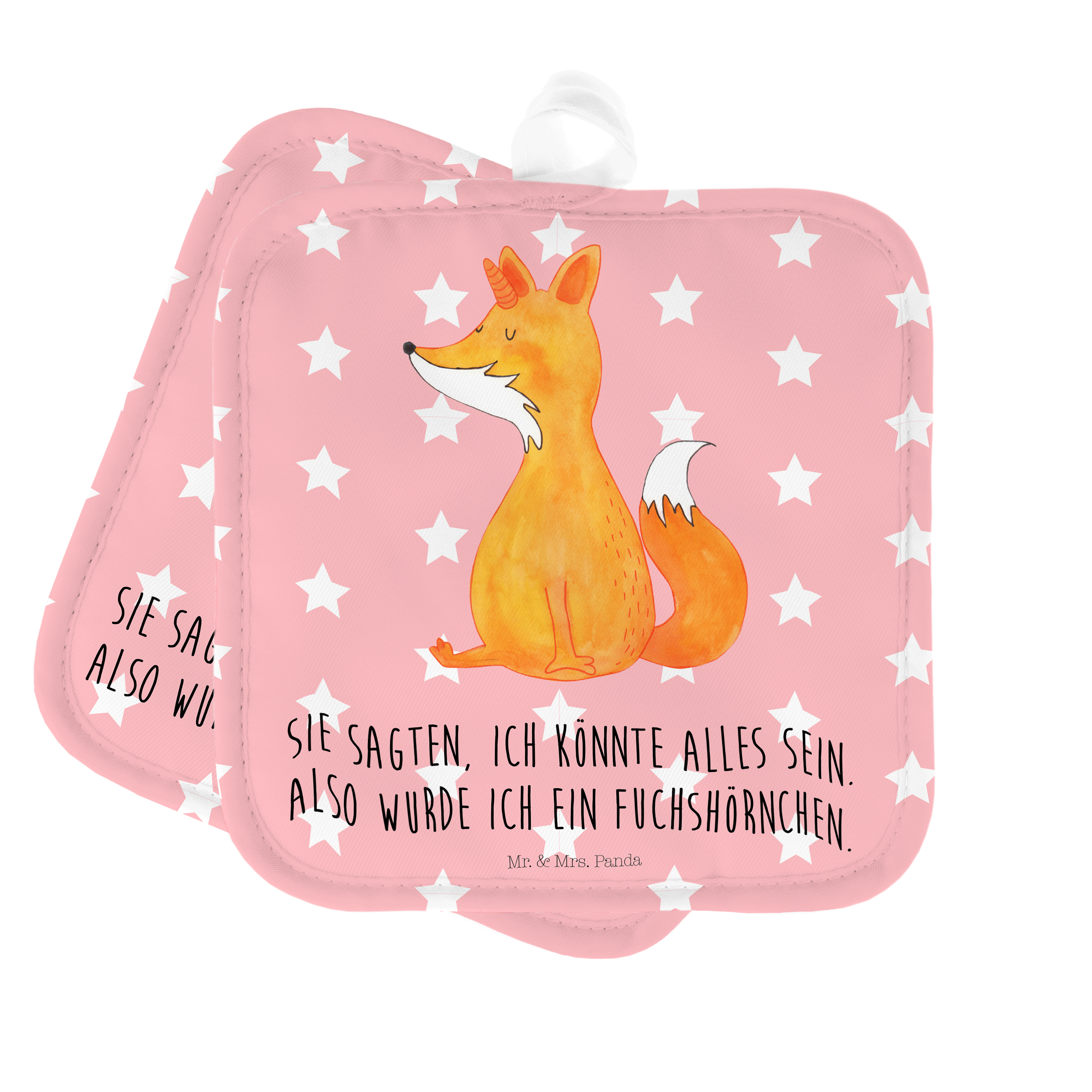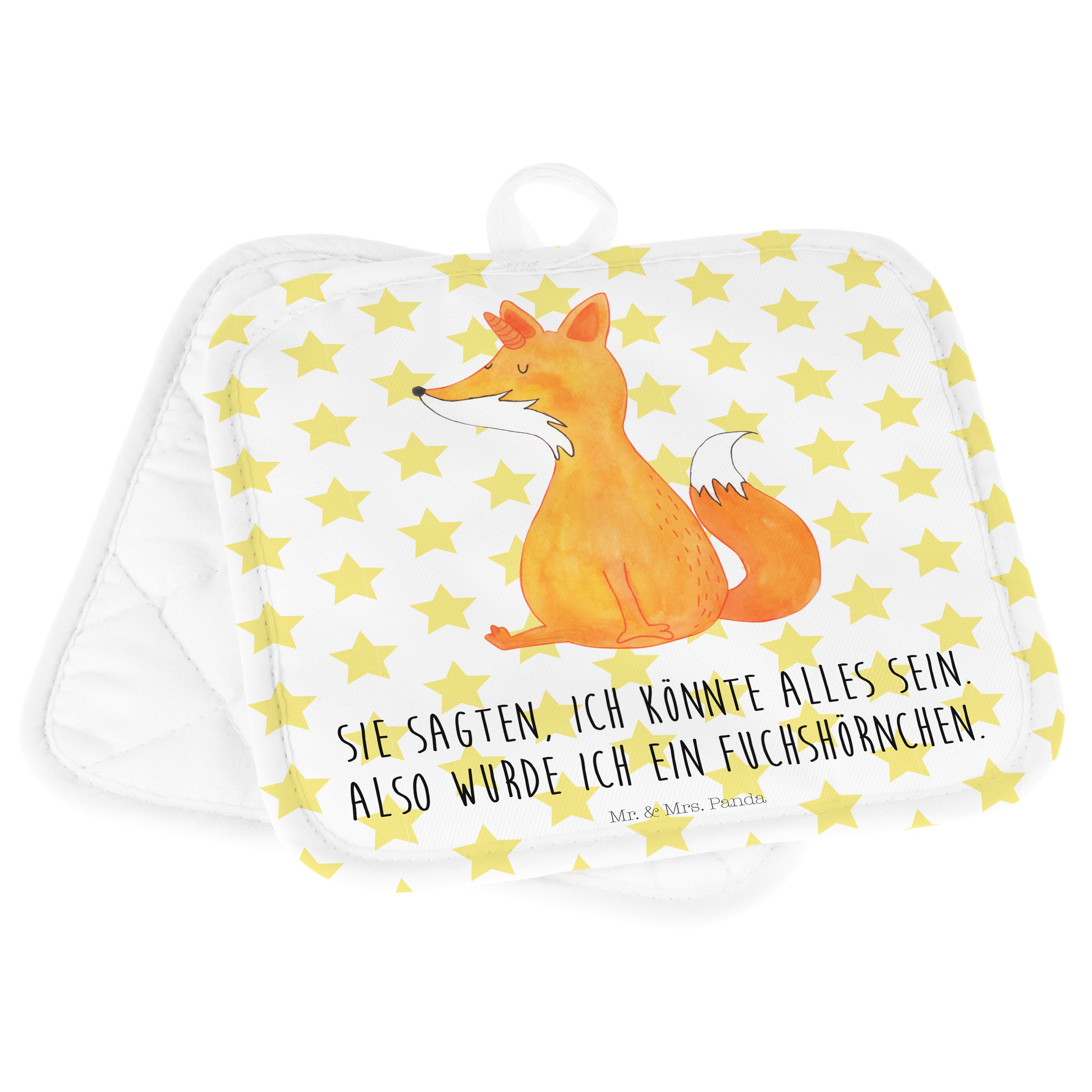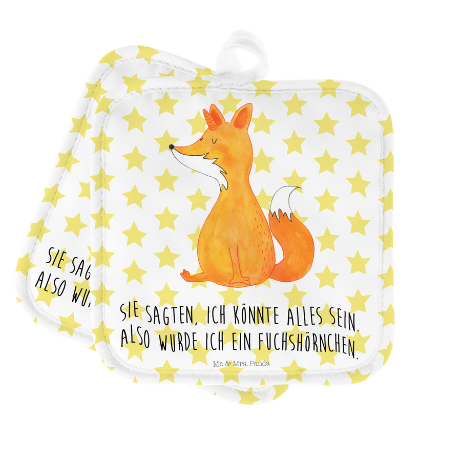 2er Set Topflappen Fuchshörnchen Wunsch - mit Spruch - Weiß