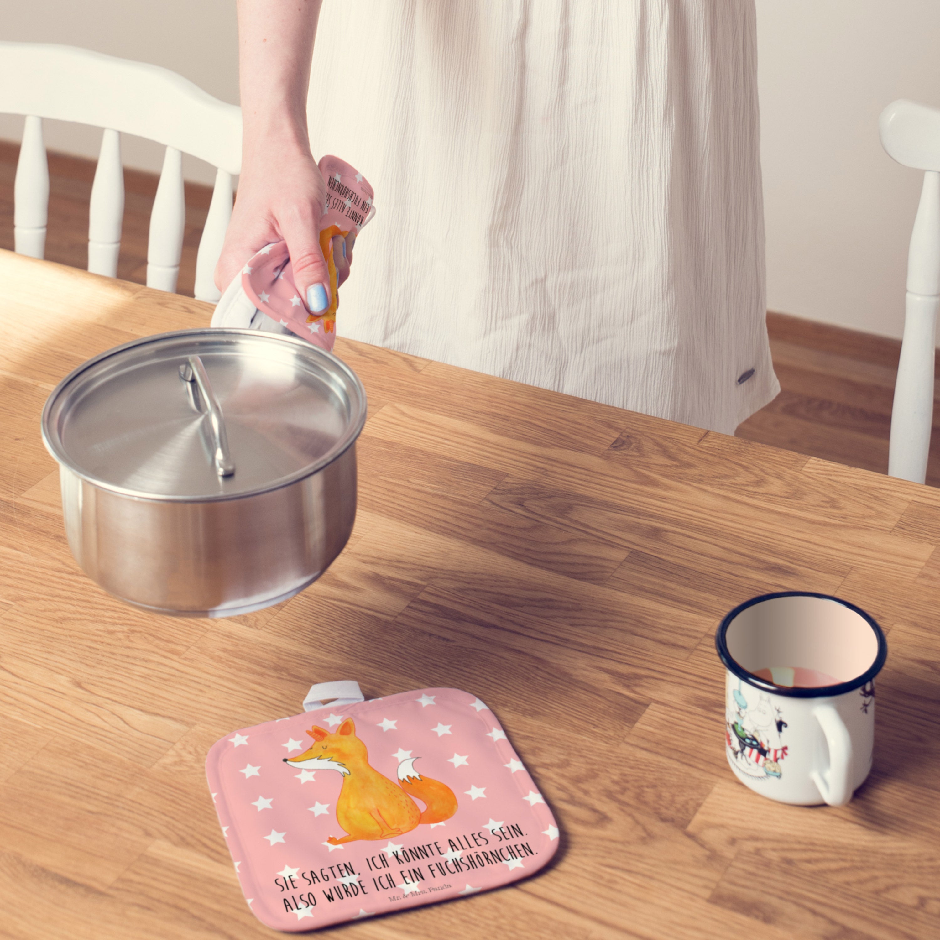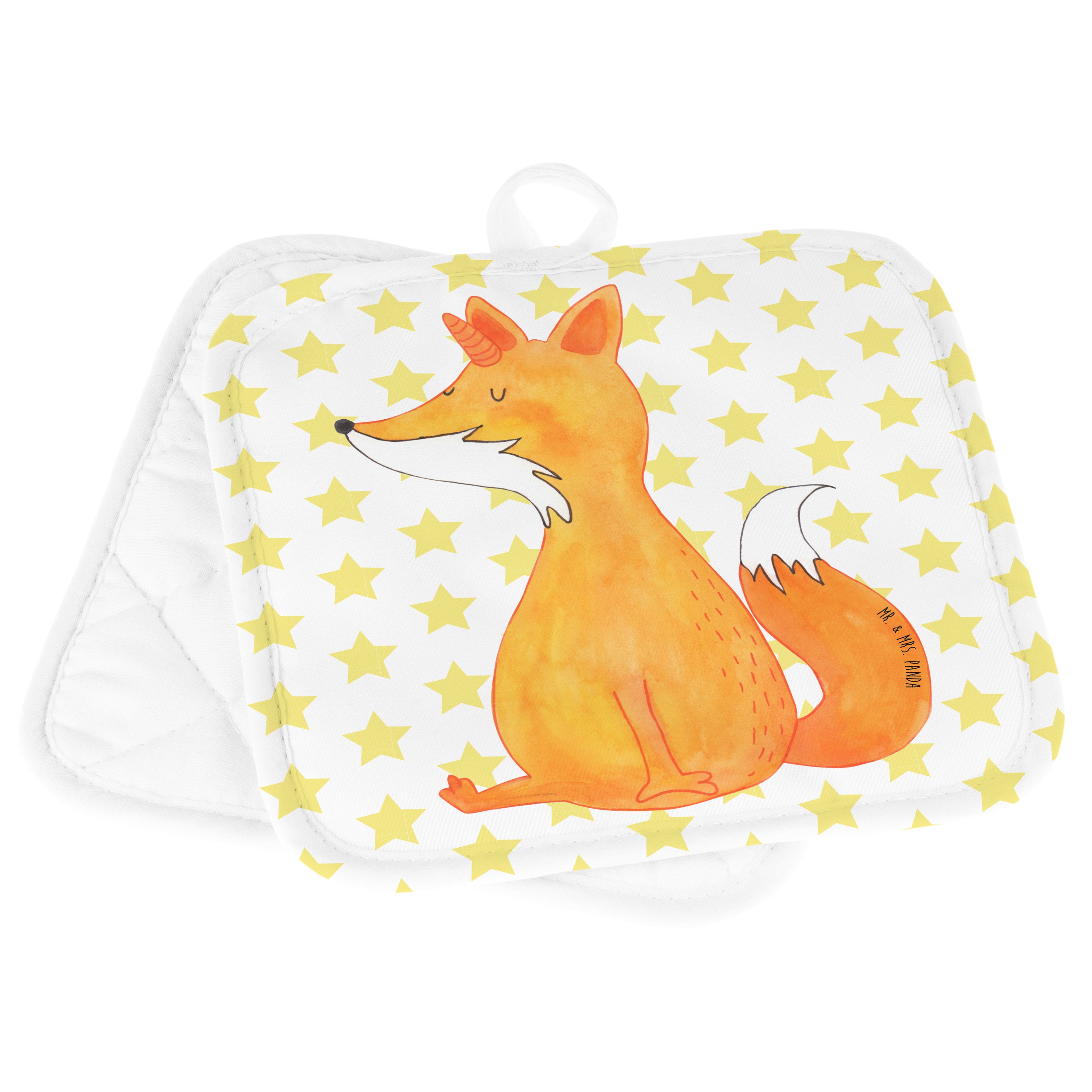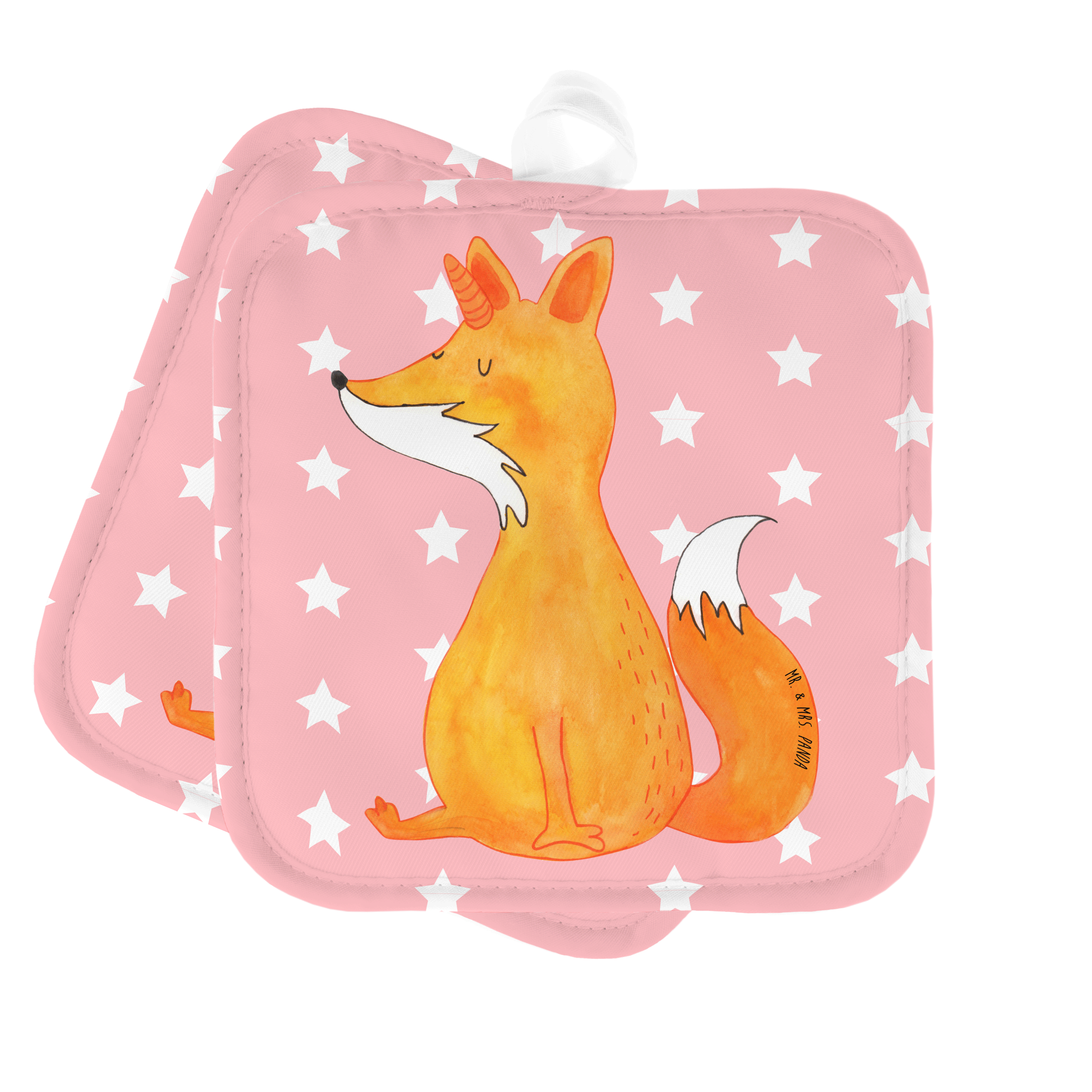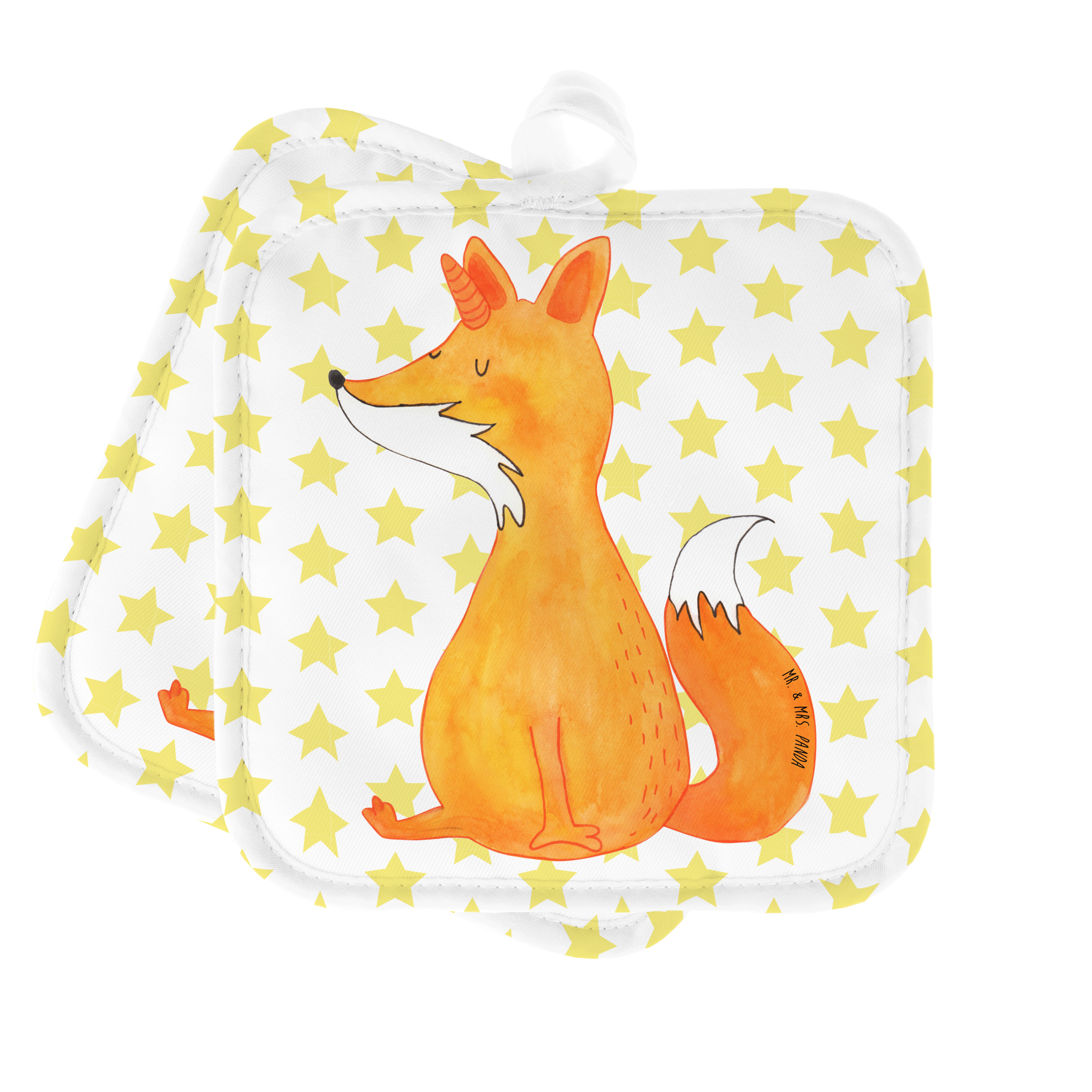 2er Set Topflappen Fuchshörnchen Wunsch - mit Spruch - Weiß