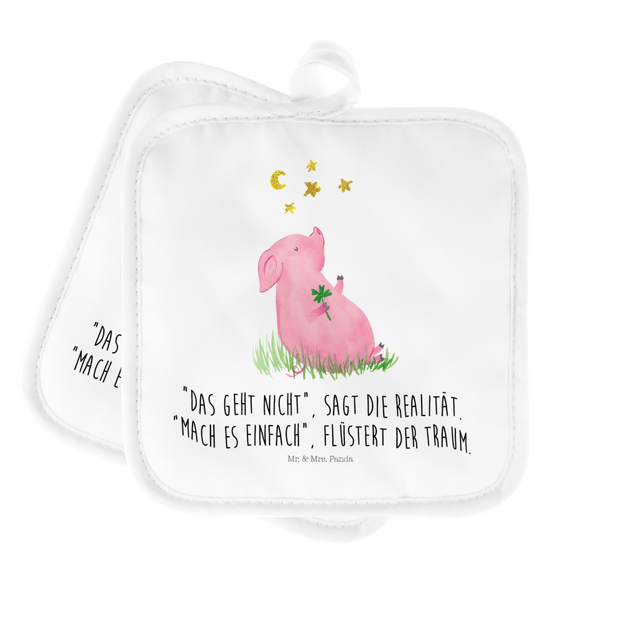 2er Set Topflappen Glücksschwein - mit Spruch - Weiß